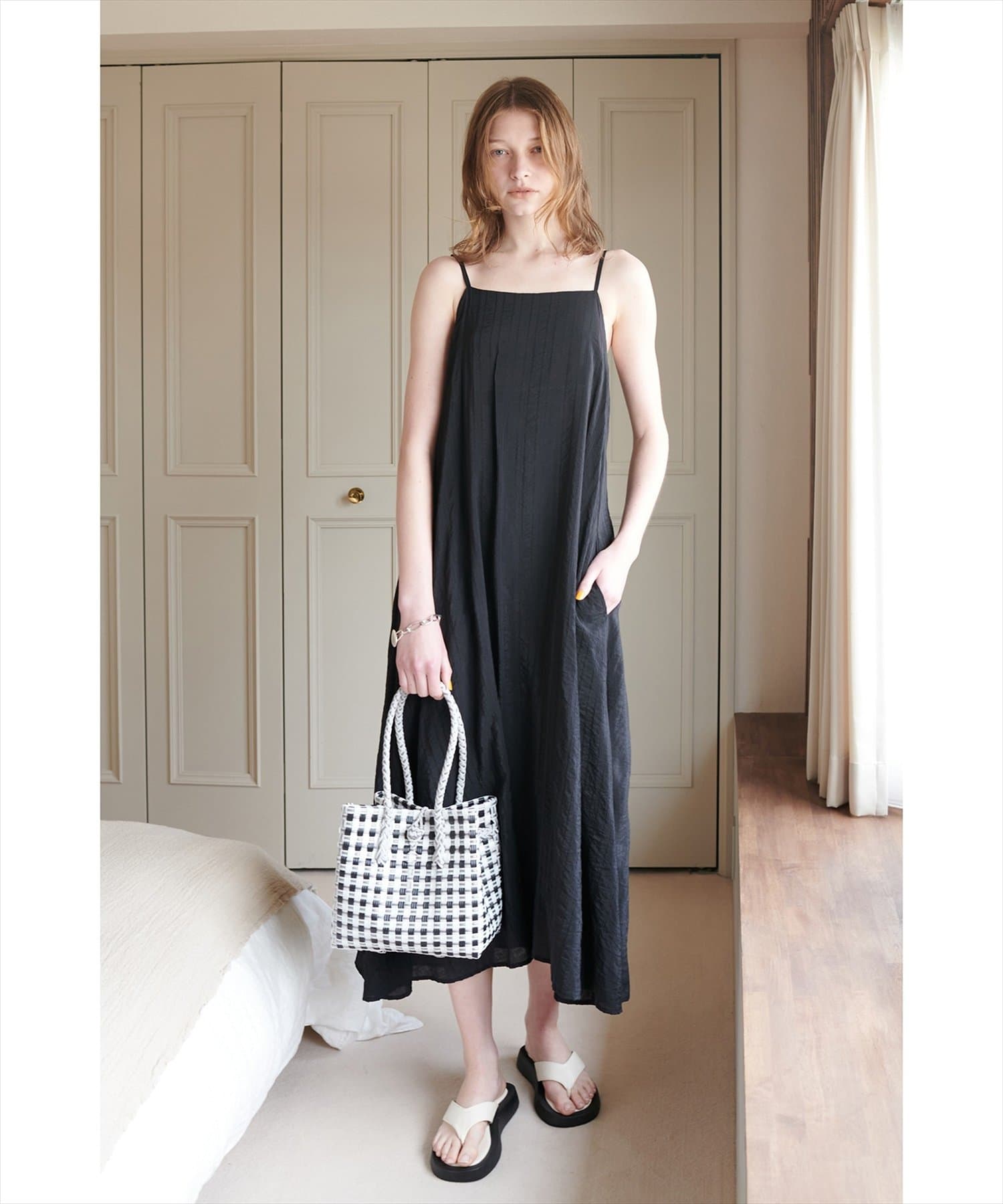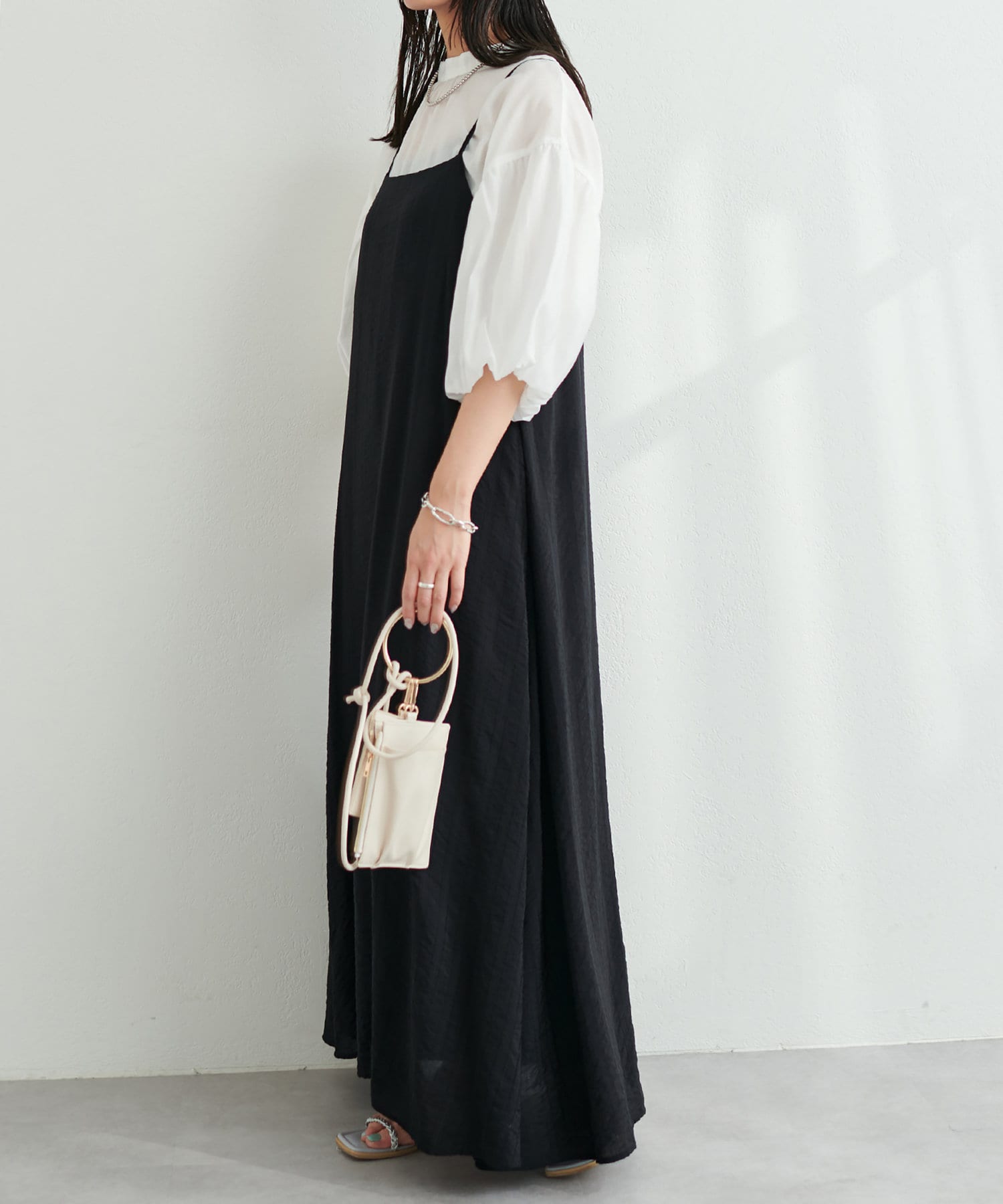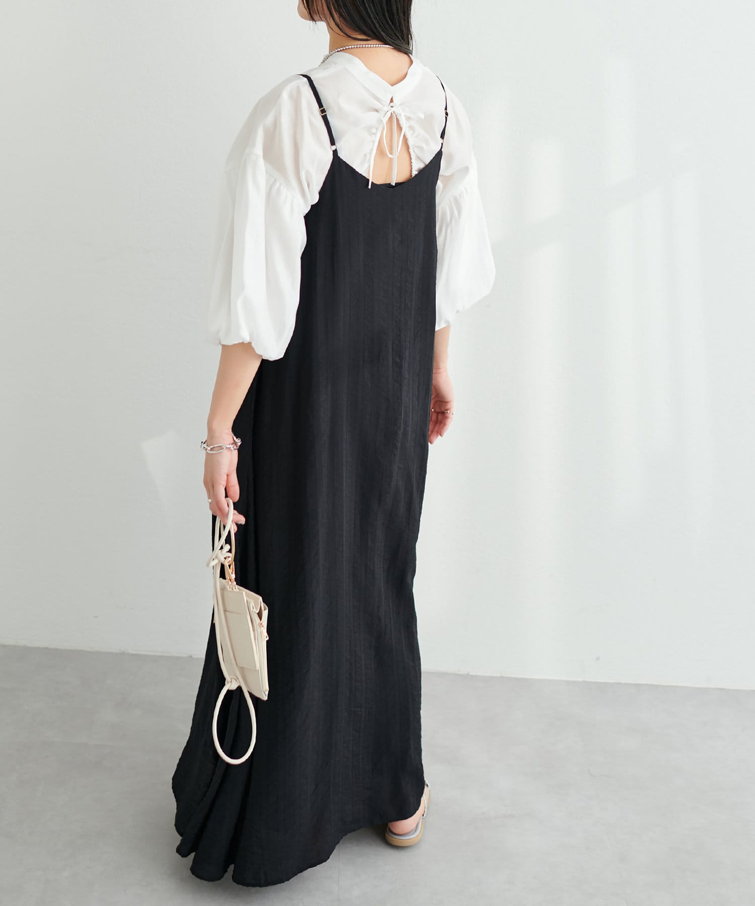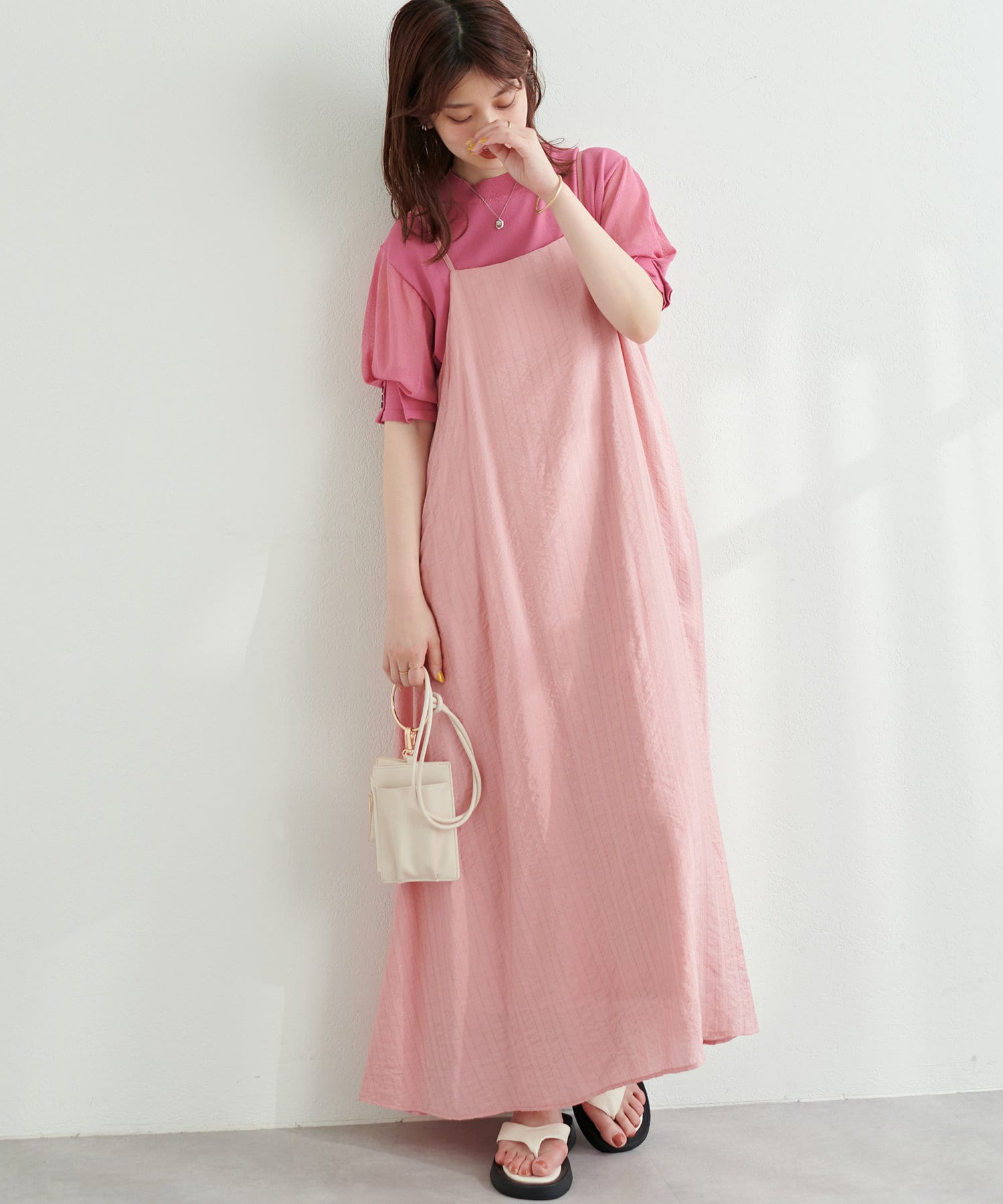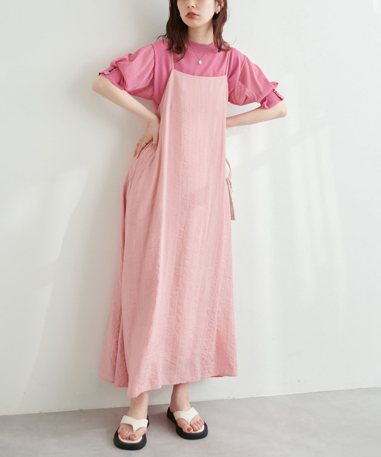 シンプルなキャミソールやタンクトップをインナーにして、シンプルに1枚でさらっとお召し頂き、