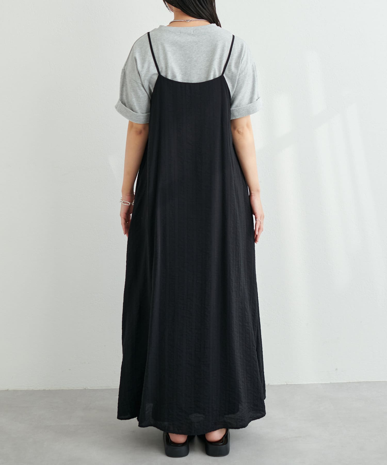 シアーストライプ前後2WAYキャミワンピース