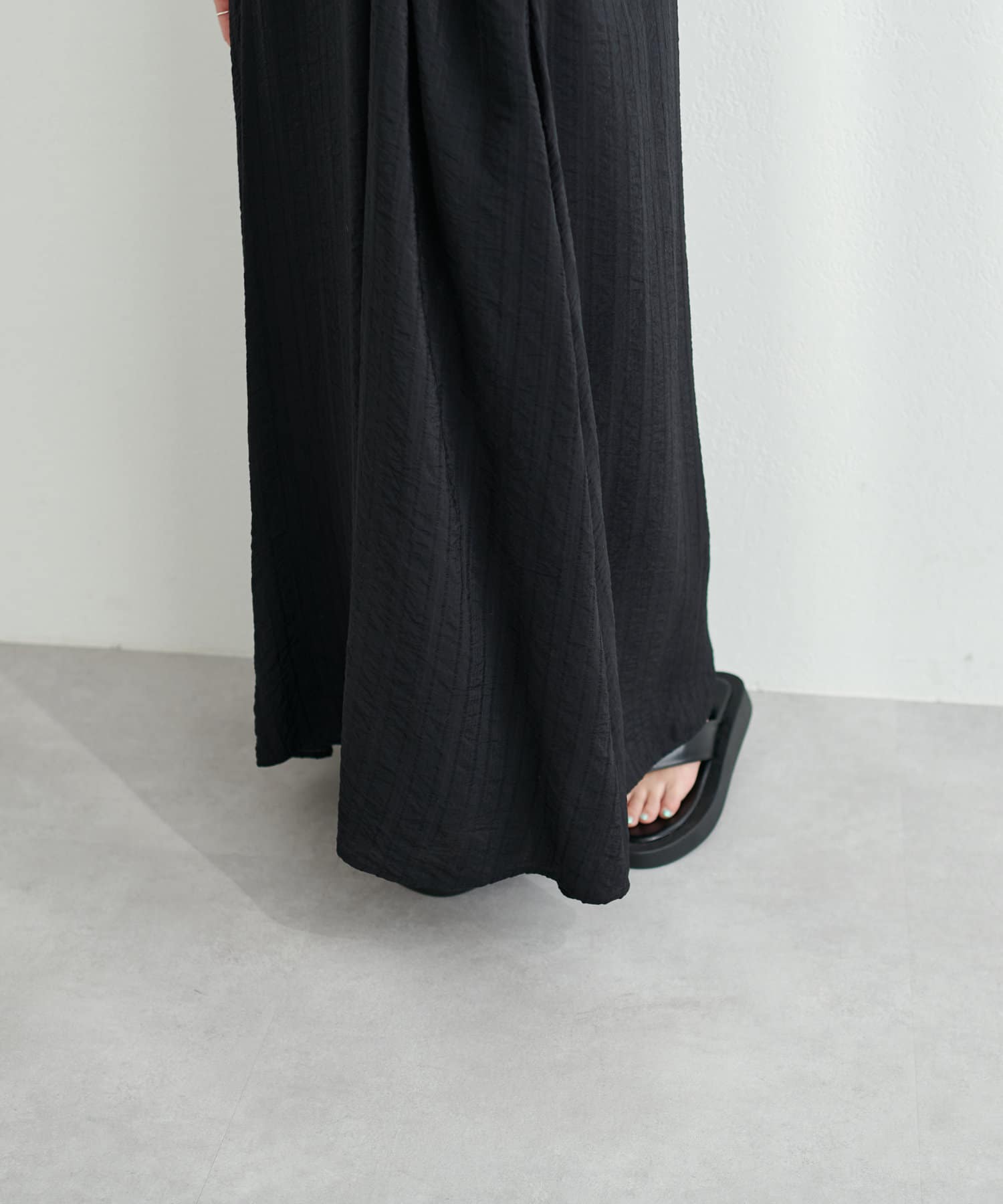 贅沢な布帛使いで、裾にかけて切り替え作らず美しいシルエットを意識した、