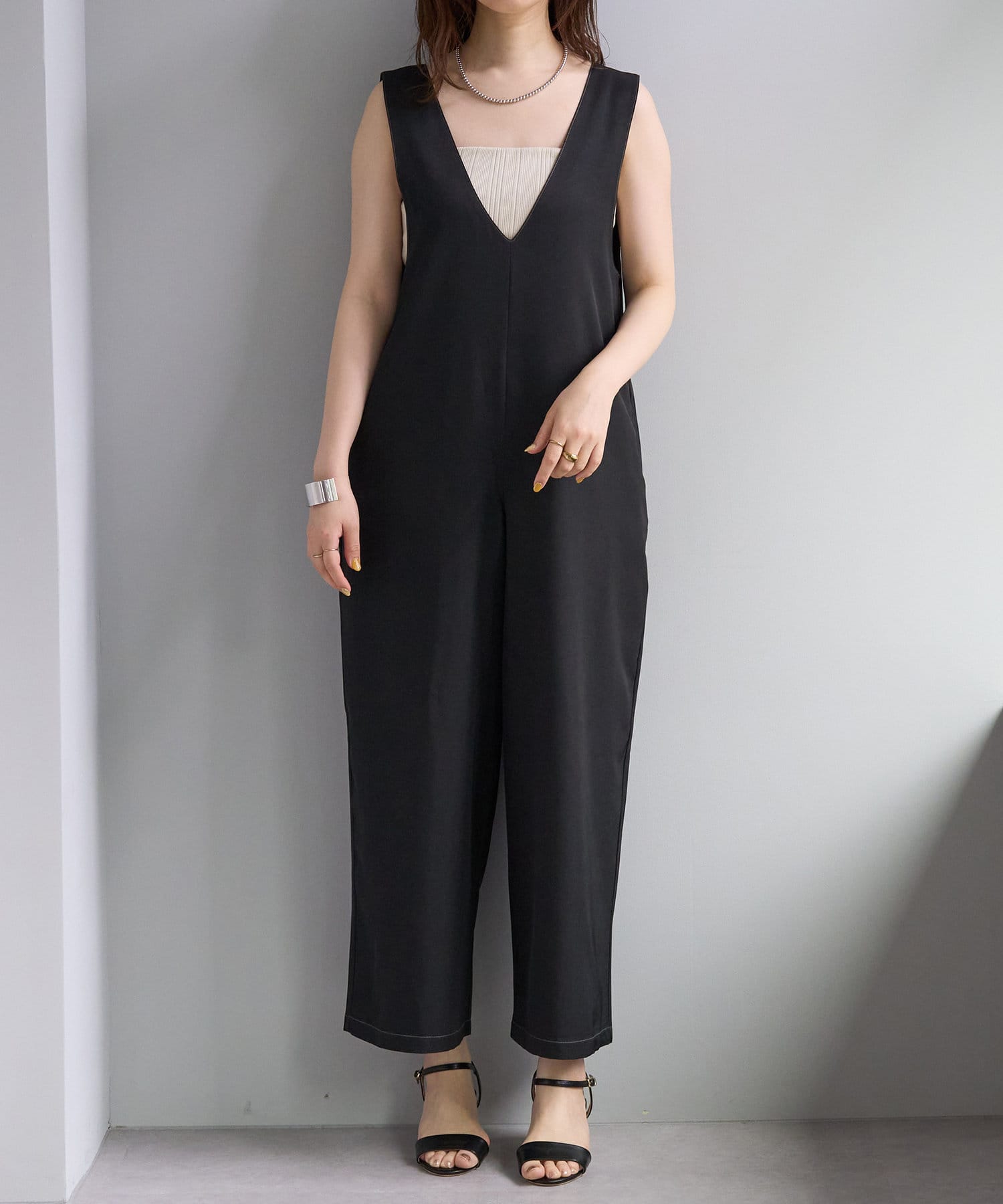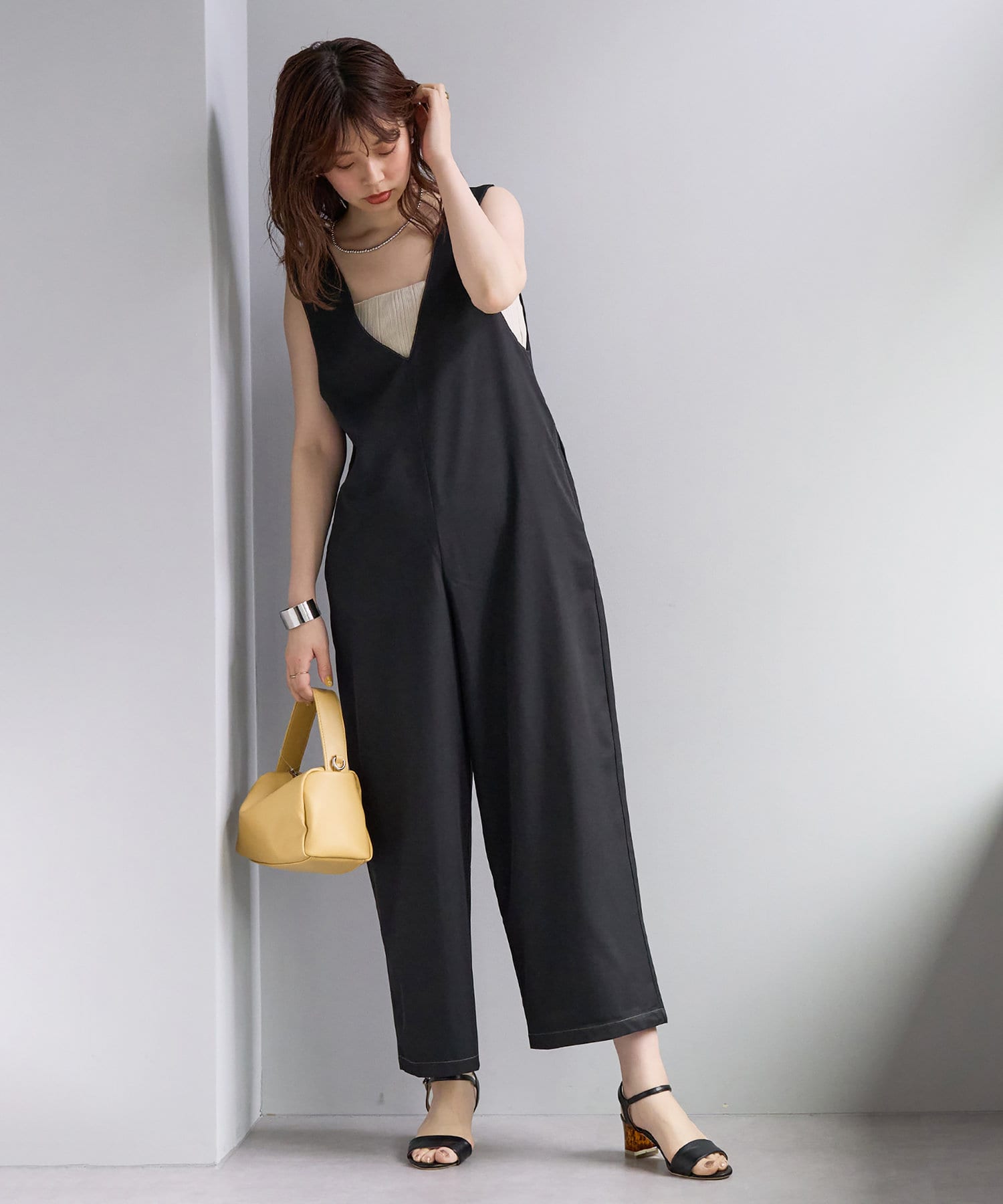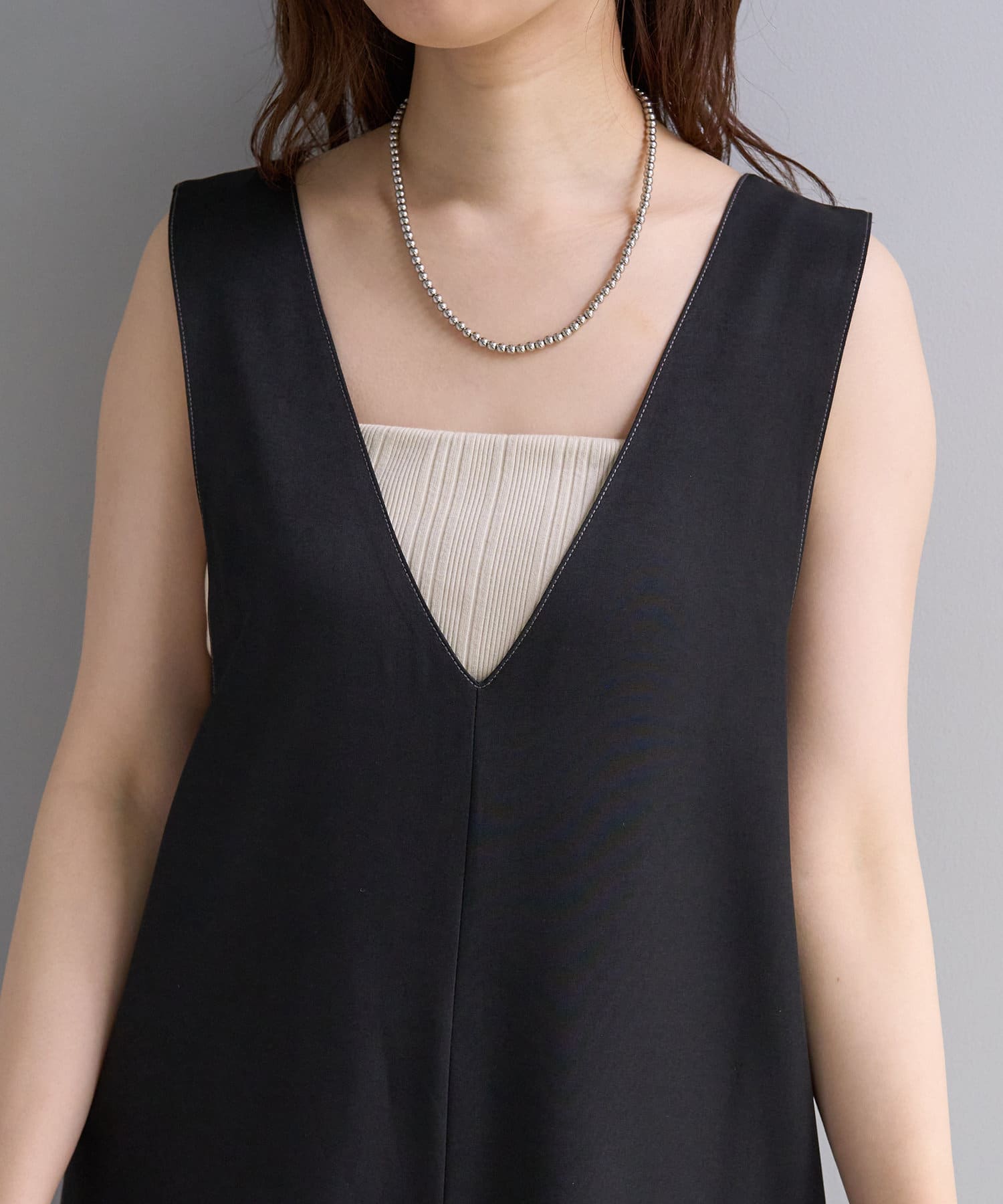 深Vデザインで、合わせるトップスのテイストを問わずスタイリングして頂けます。