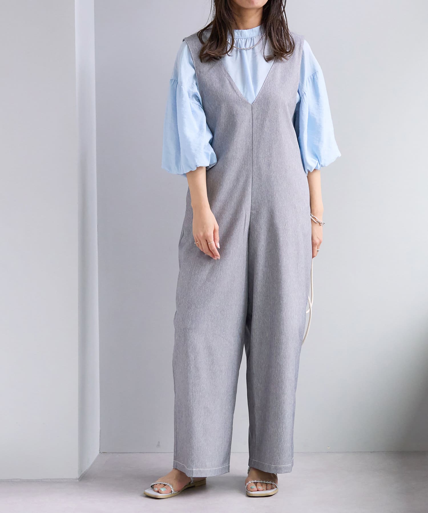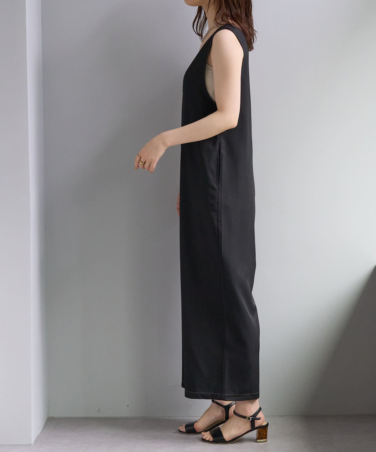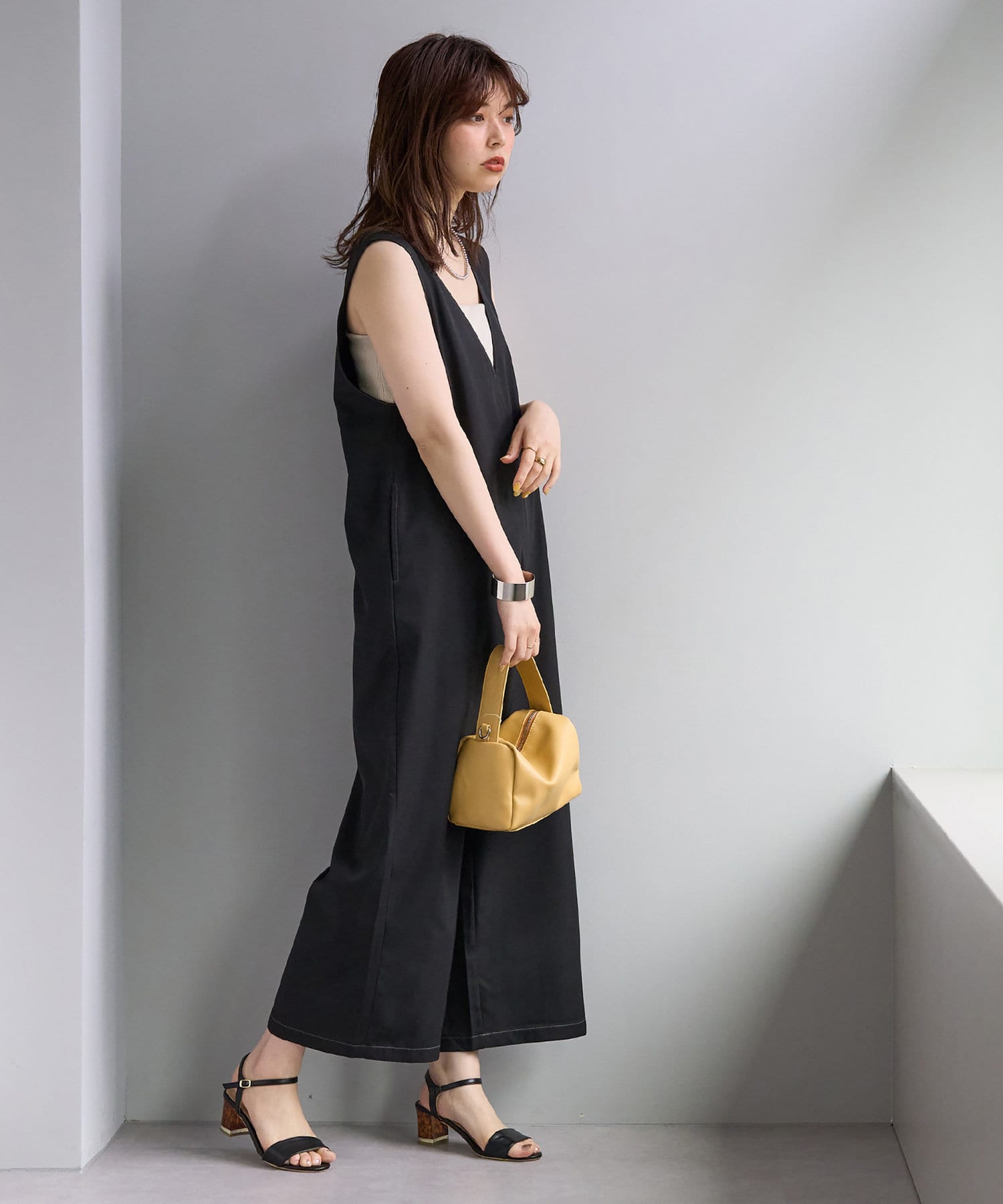 深Vデザインで、合わせるトップスのテイストを問わずスタイリングして頂けます。