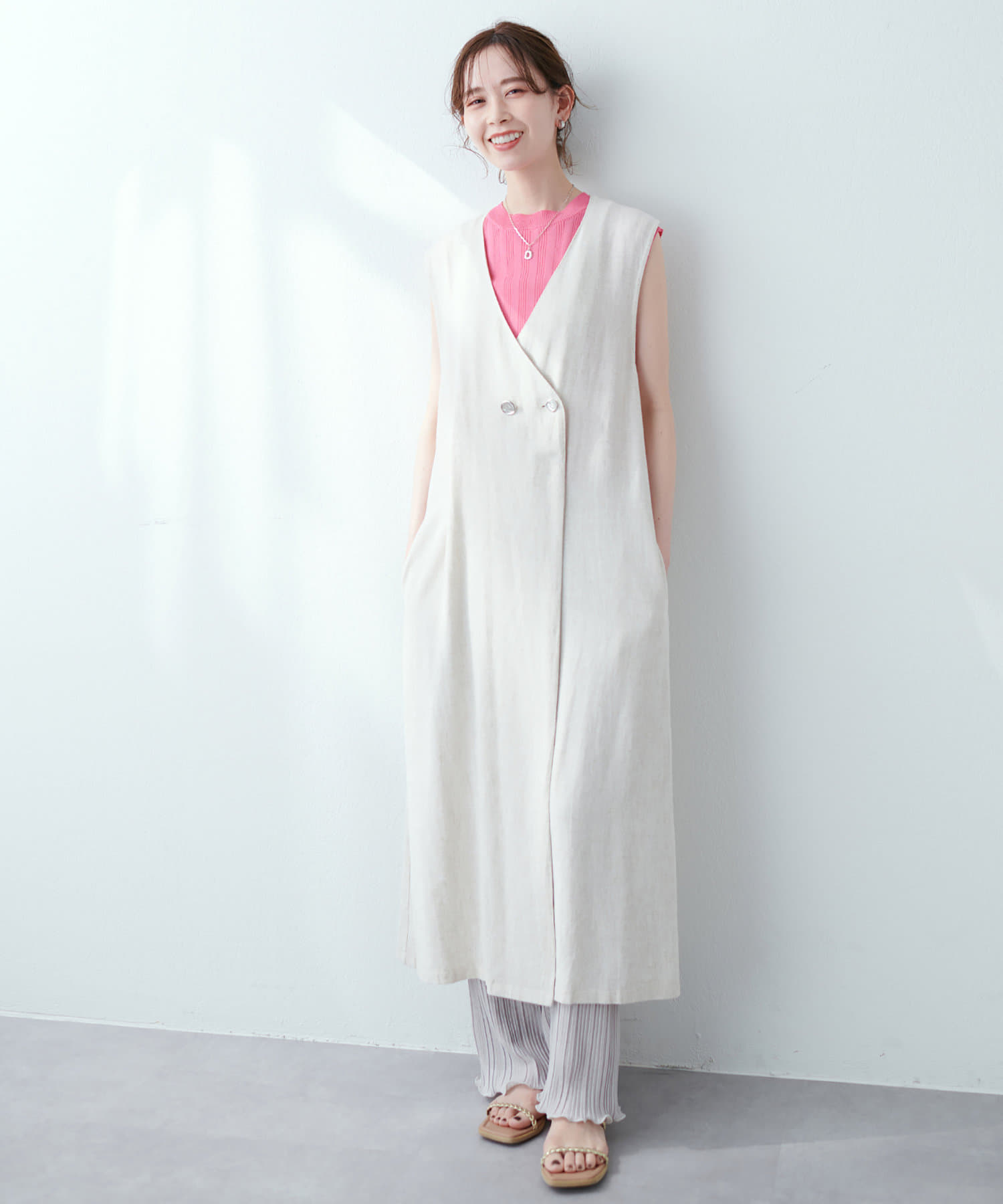 • natural couture(ナチュラルクチュール) 麻混着流しジレワンピース麻混着流しジレワンピース