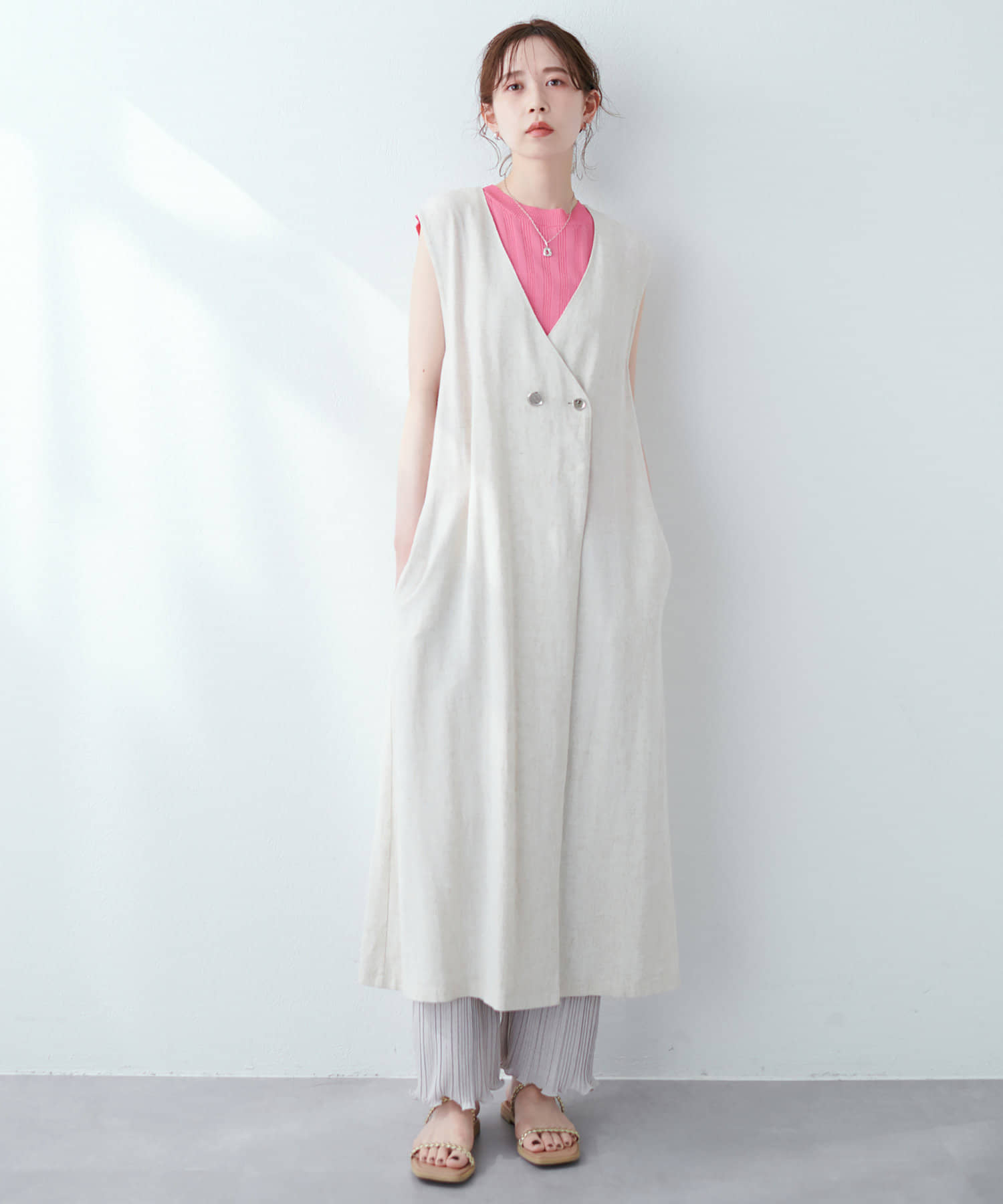 麻混着流しジレワンピース麻混着流しジレワンピース