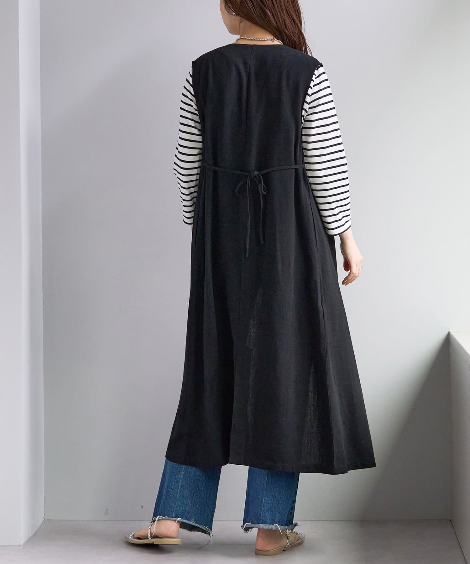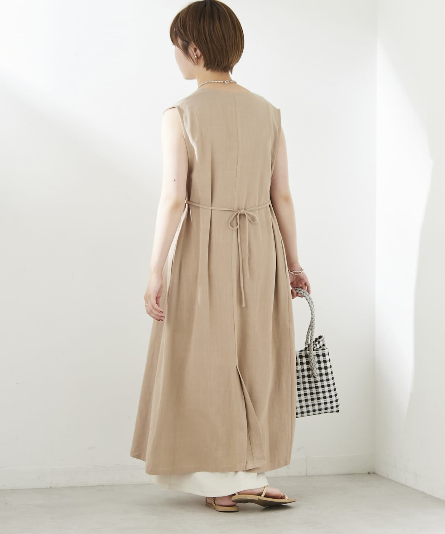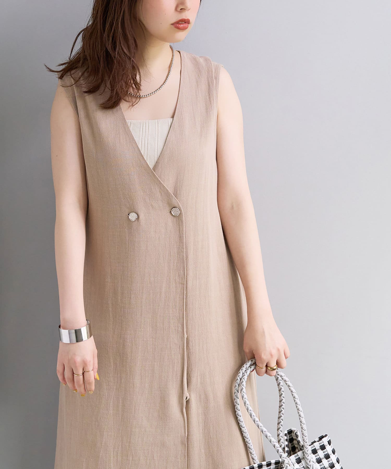 麻混着流しジレワンピース