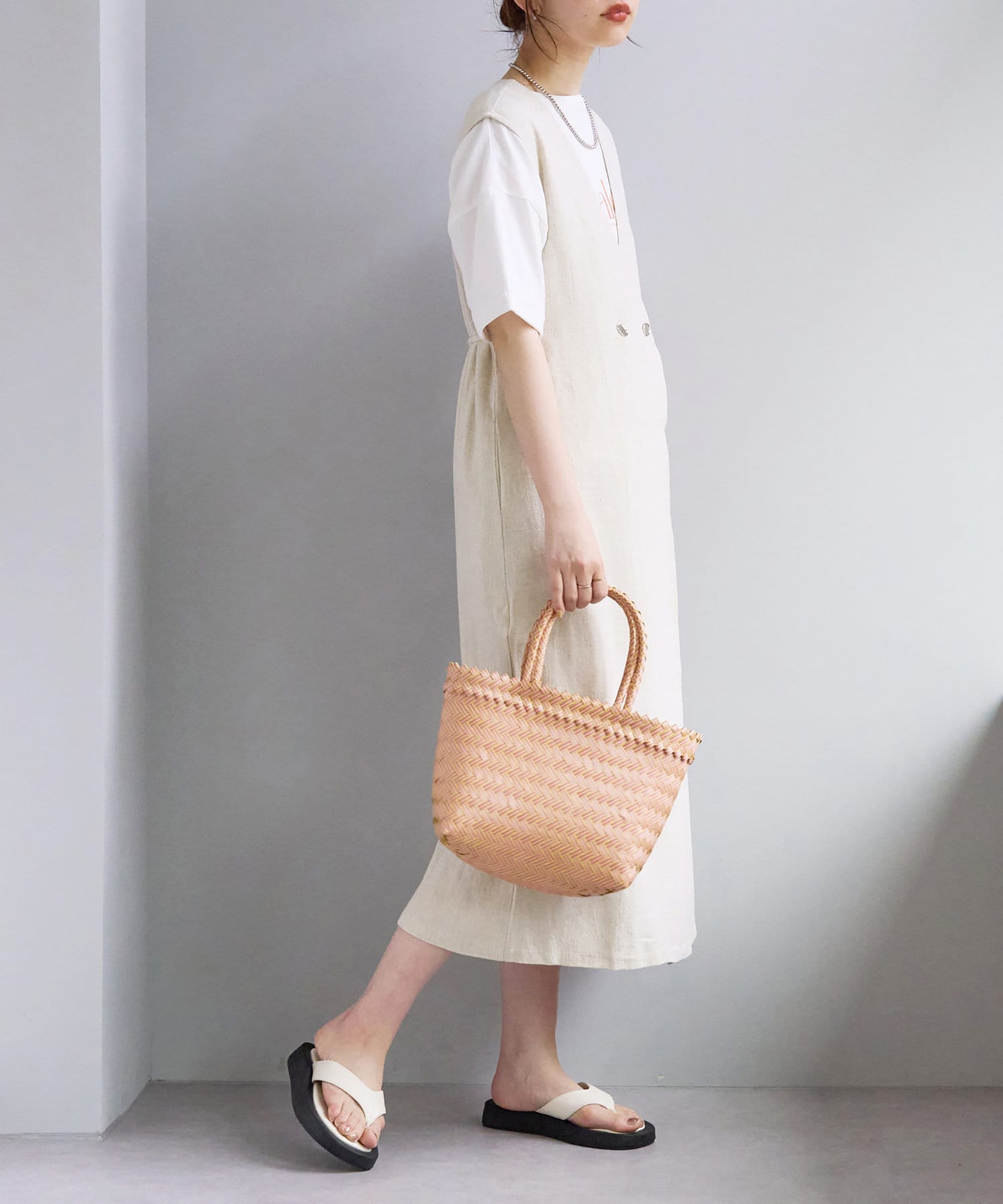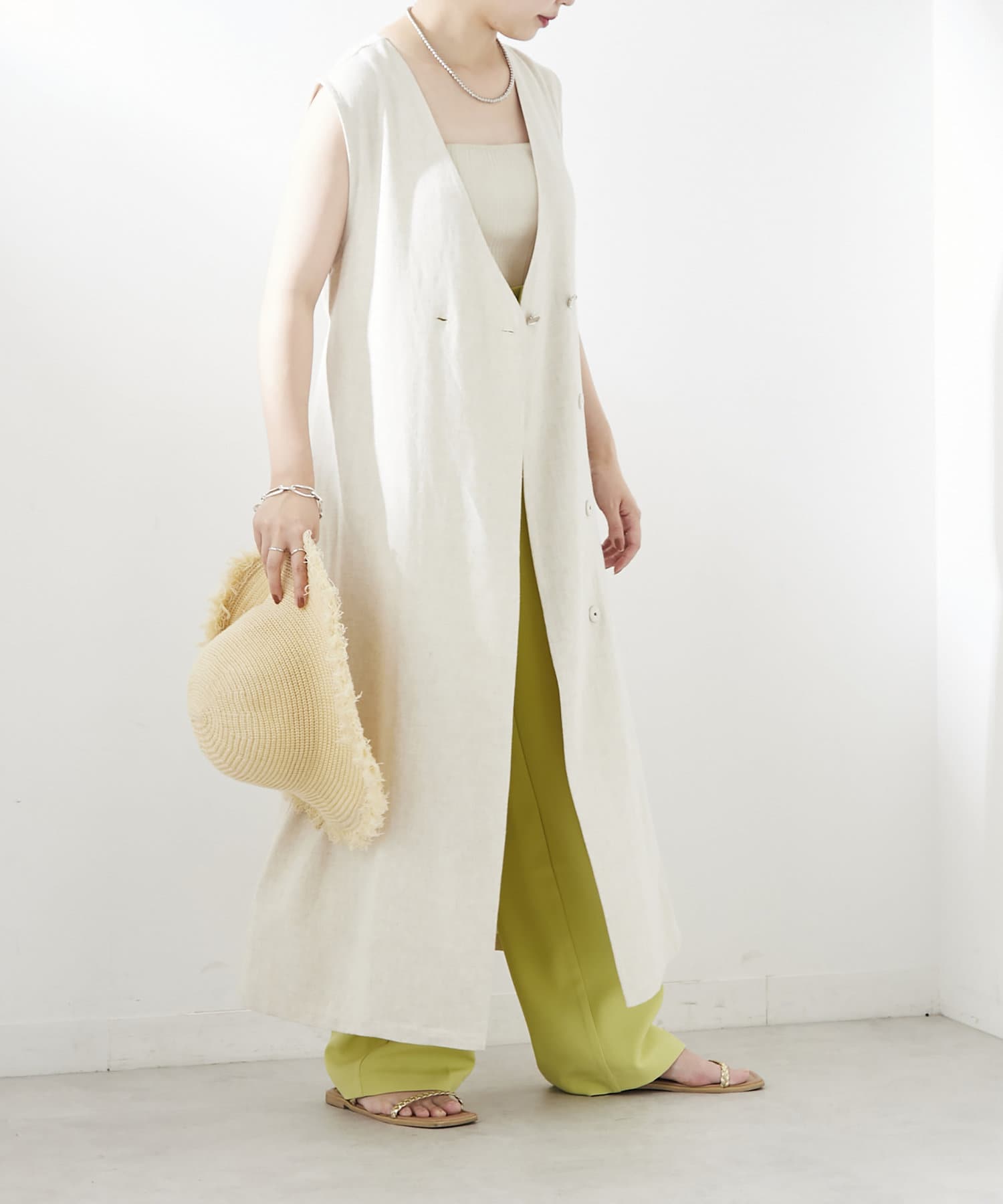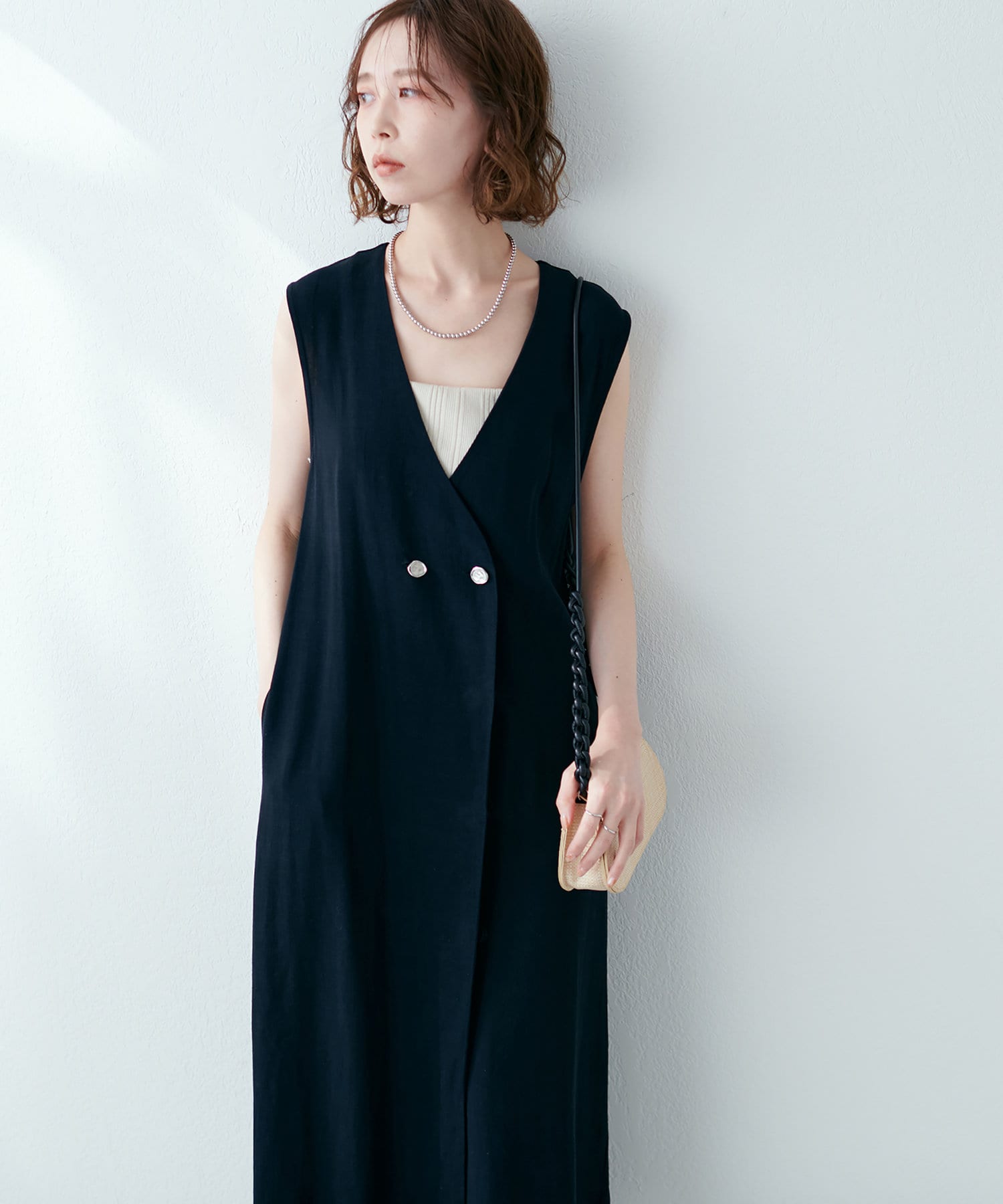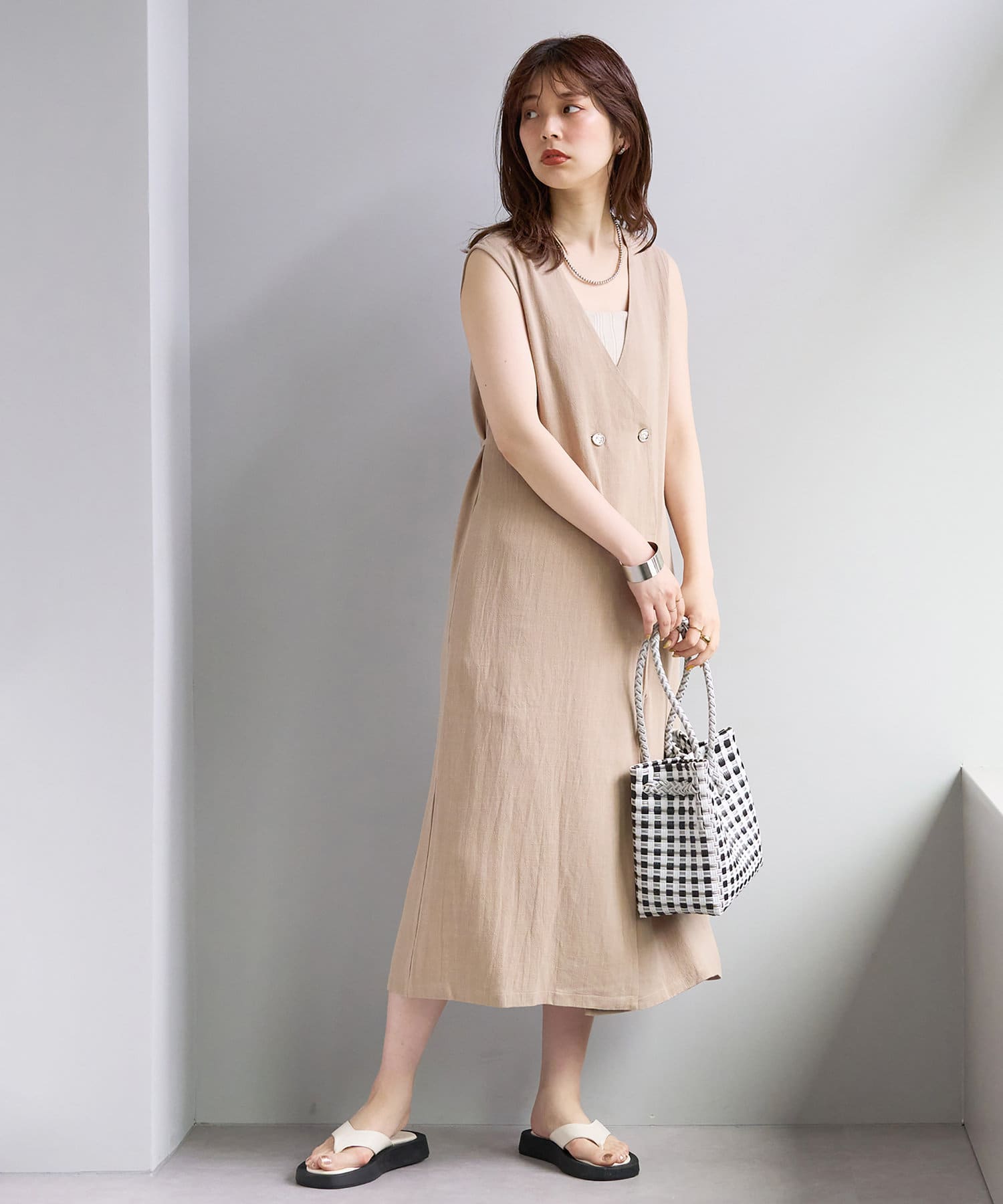 麻混着流しジレワンピース