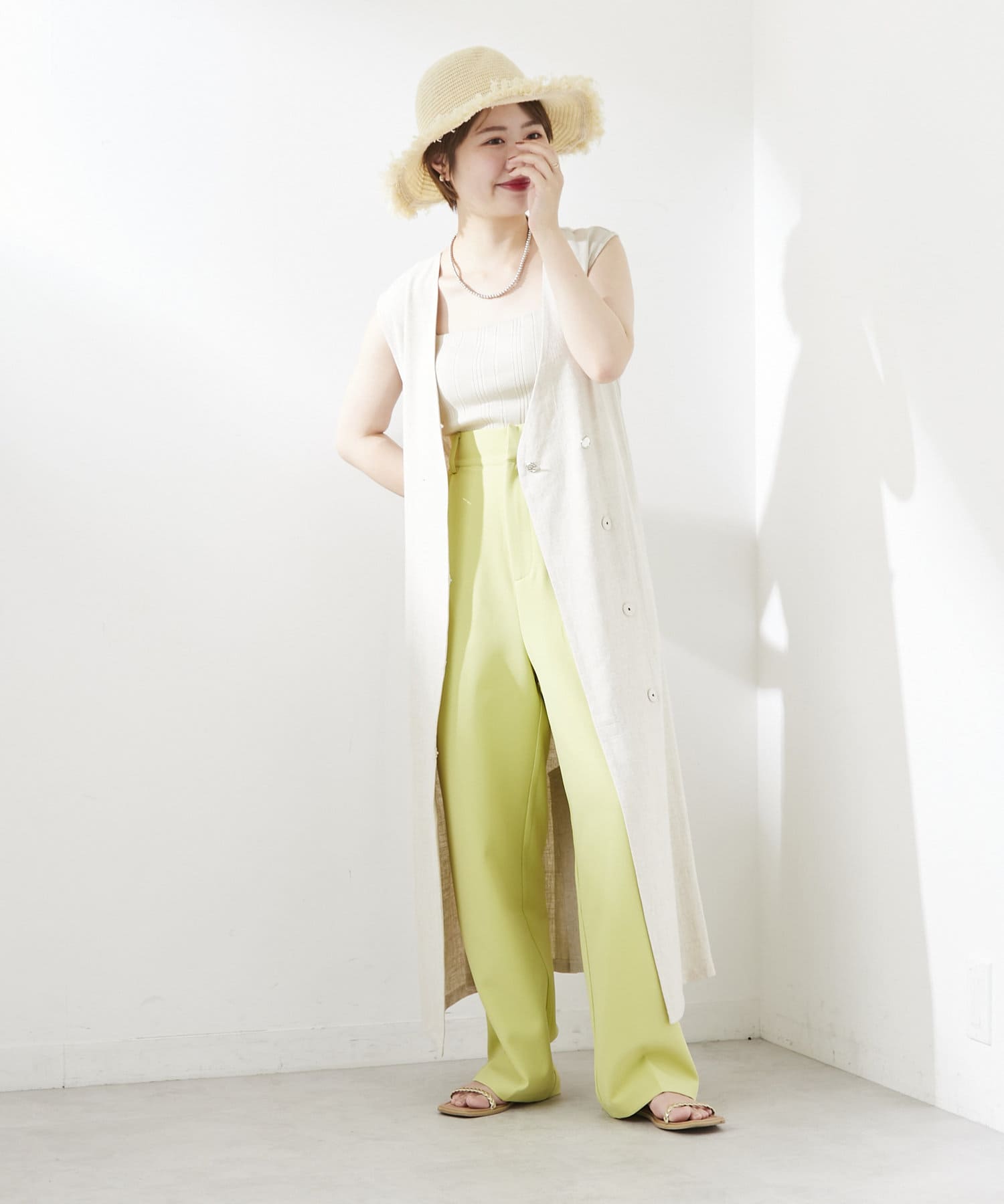 夏はタンクトップやキャミソールをインナーにして1枚でシンプルにお召し頂いても◎