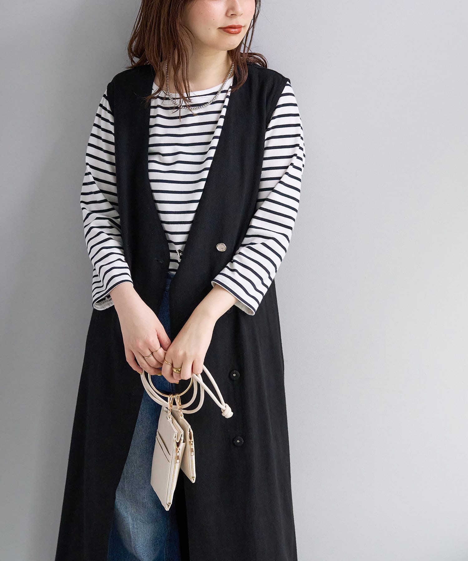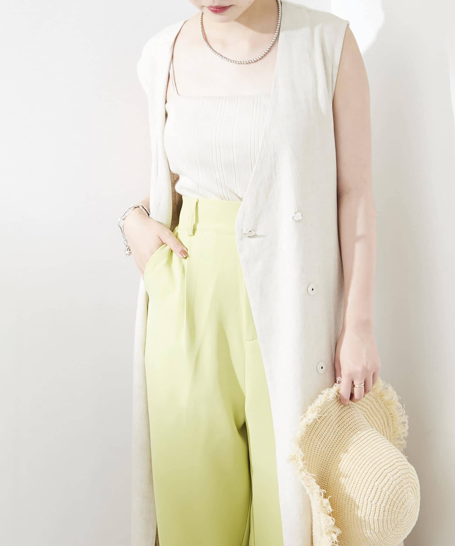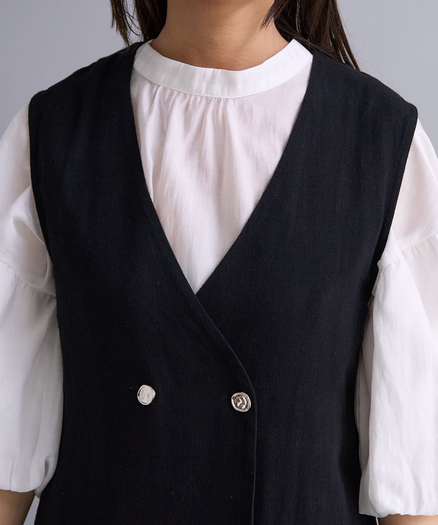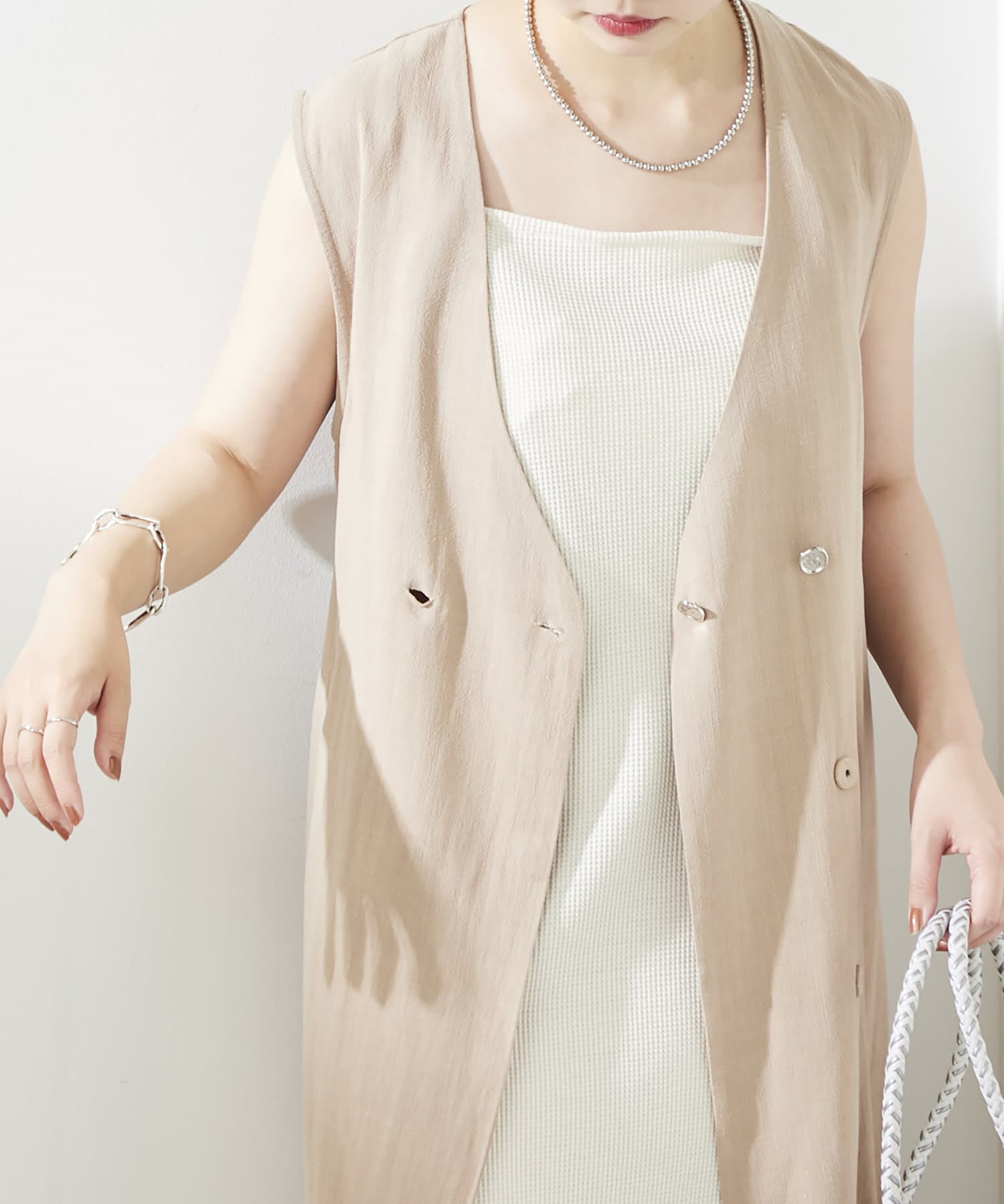 ワンピースやボトムス合わせにジレとして合わせて頂くのはもちろん、