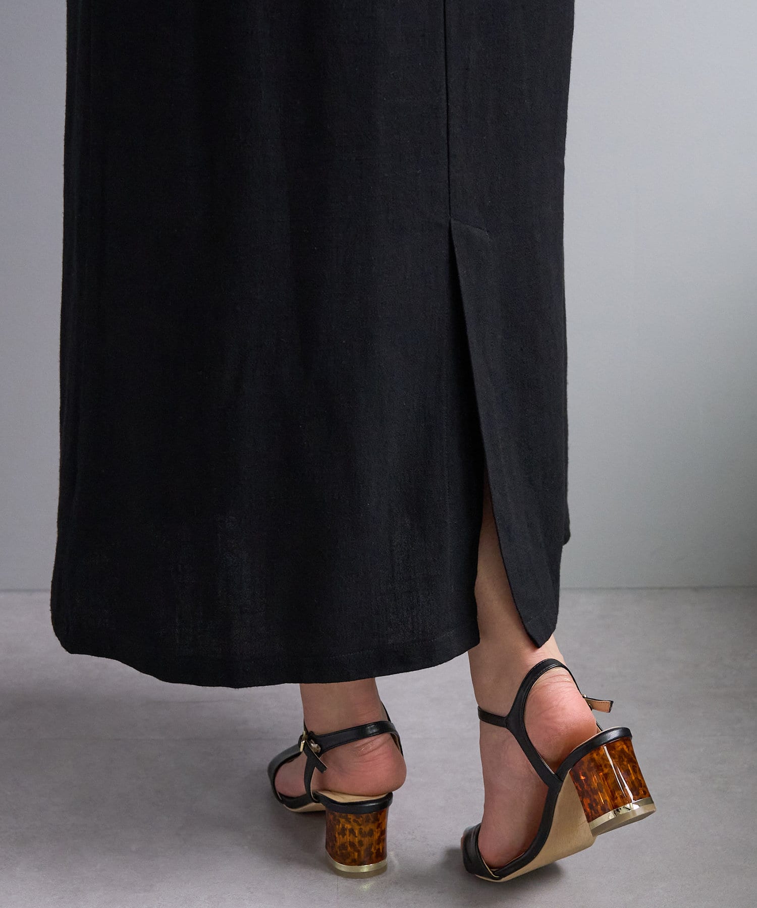 落ち感のある柔らかなレーヨン素材と麻素材の混合地を採用。