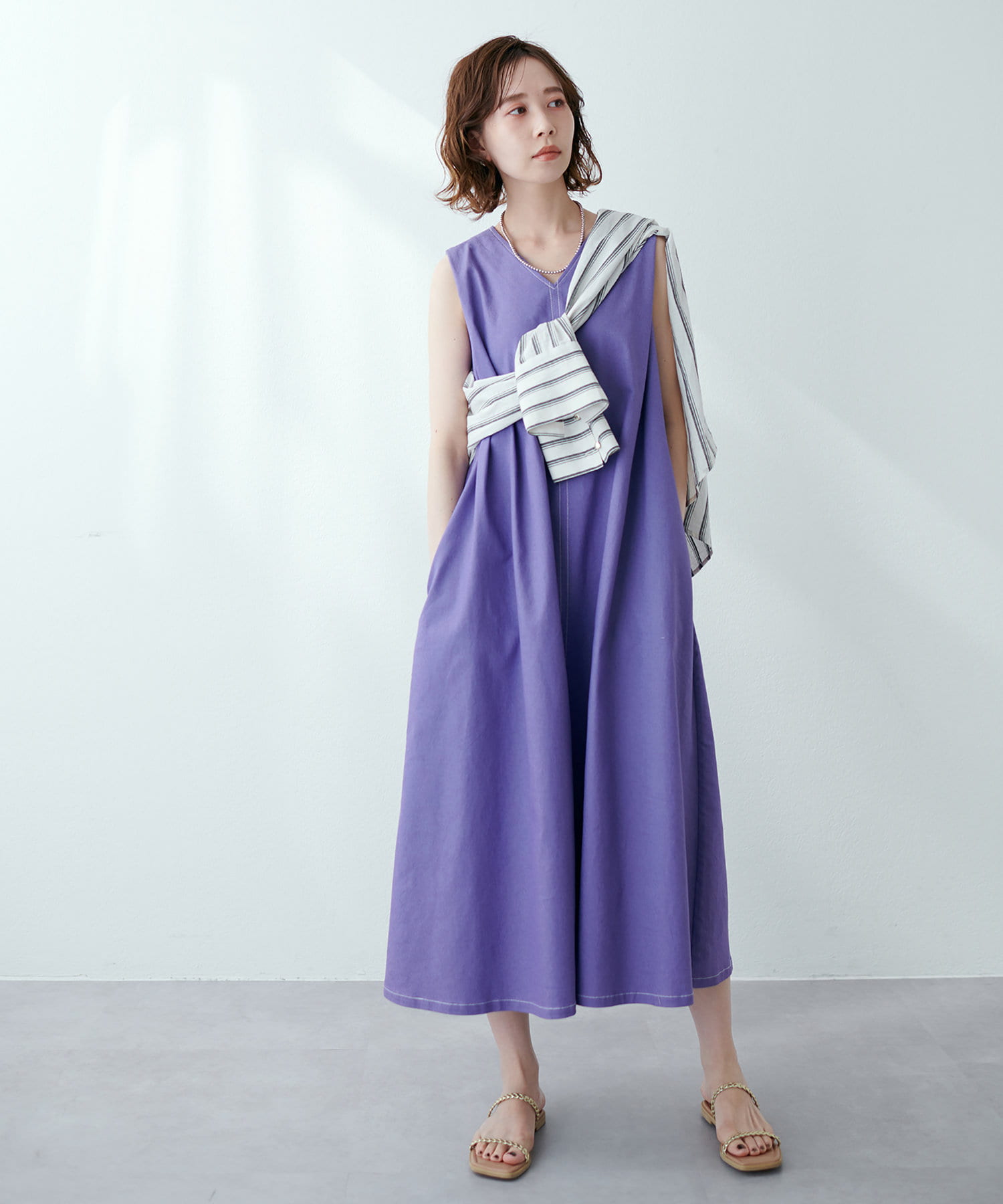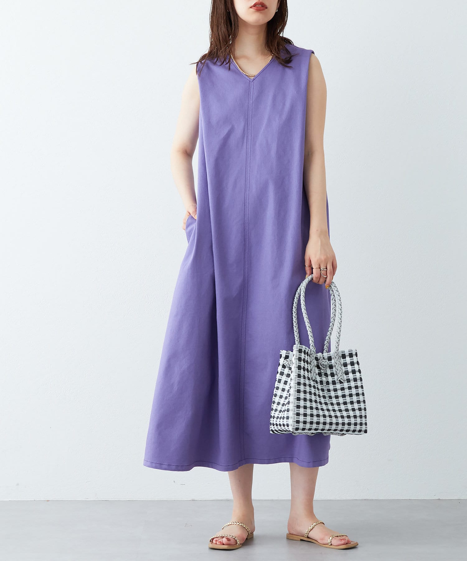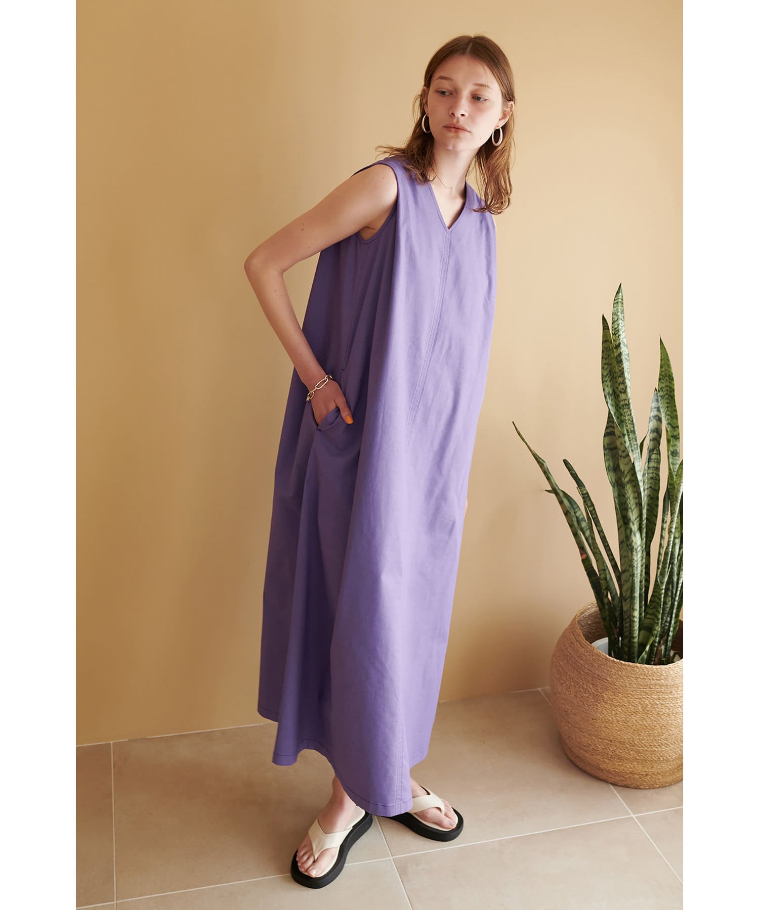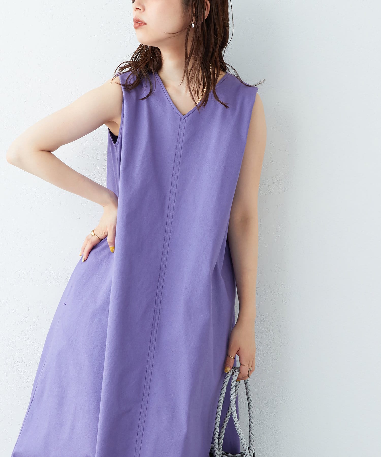WEB限定カラー有り/配色ステッチVネックテントワンピース