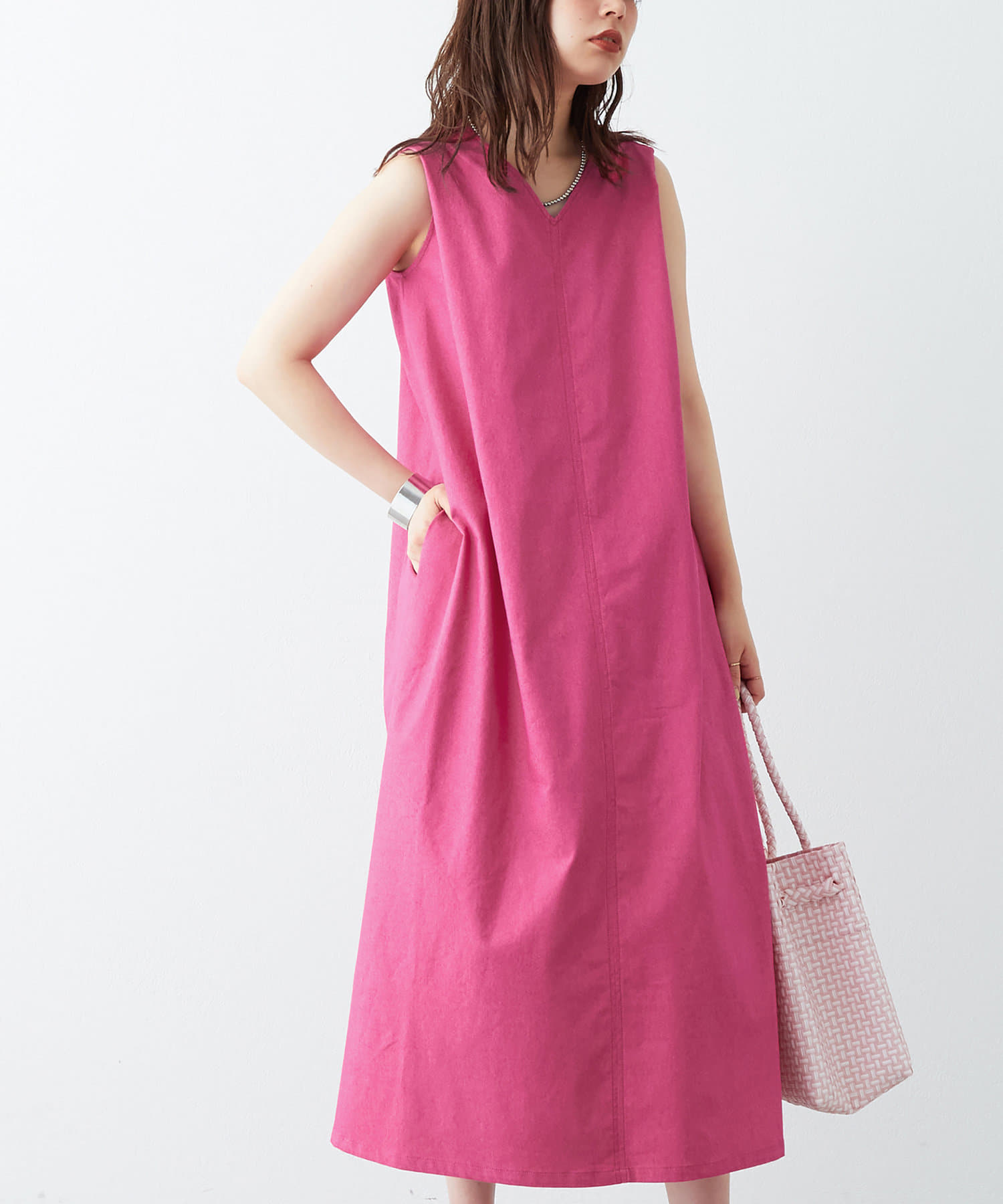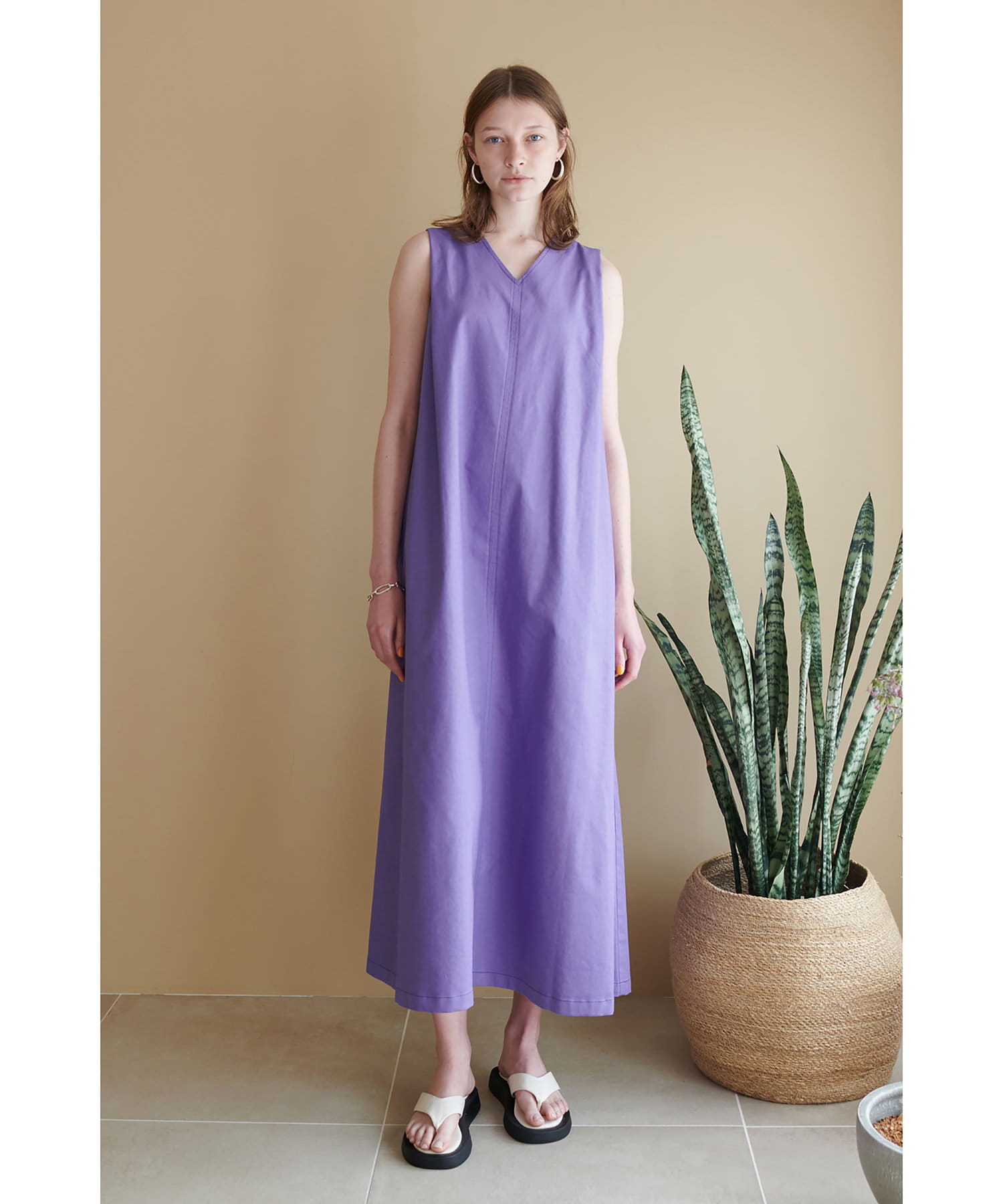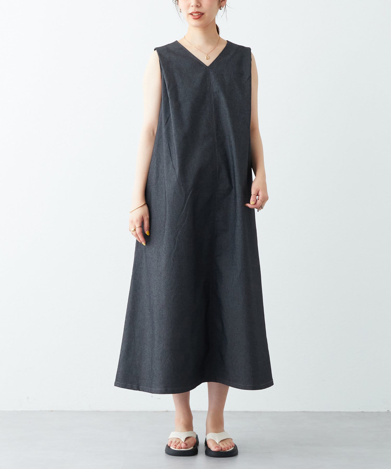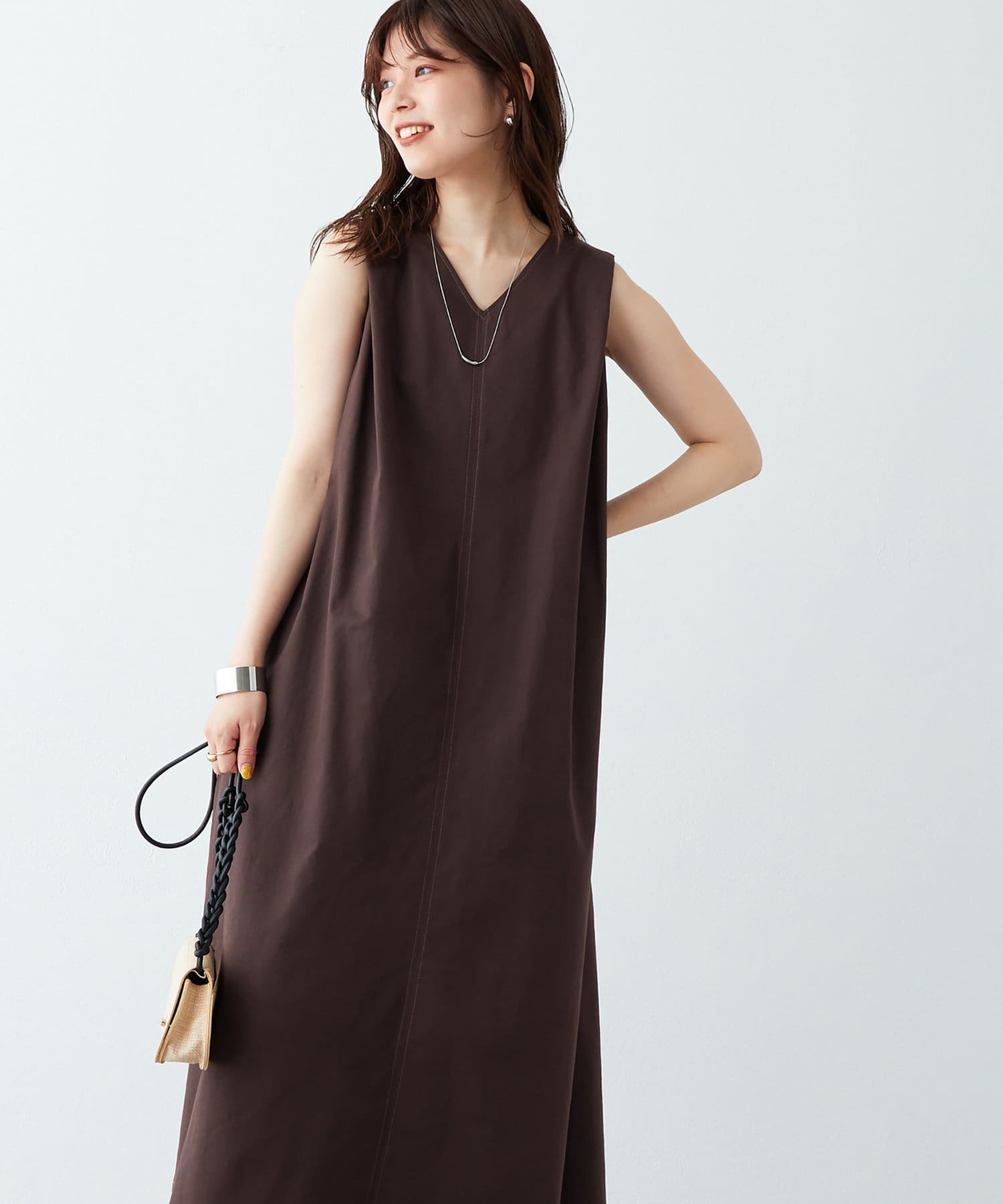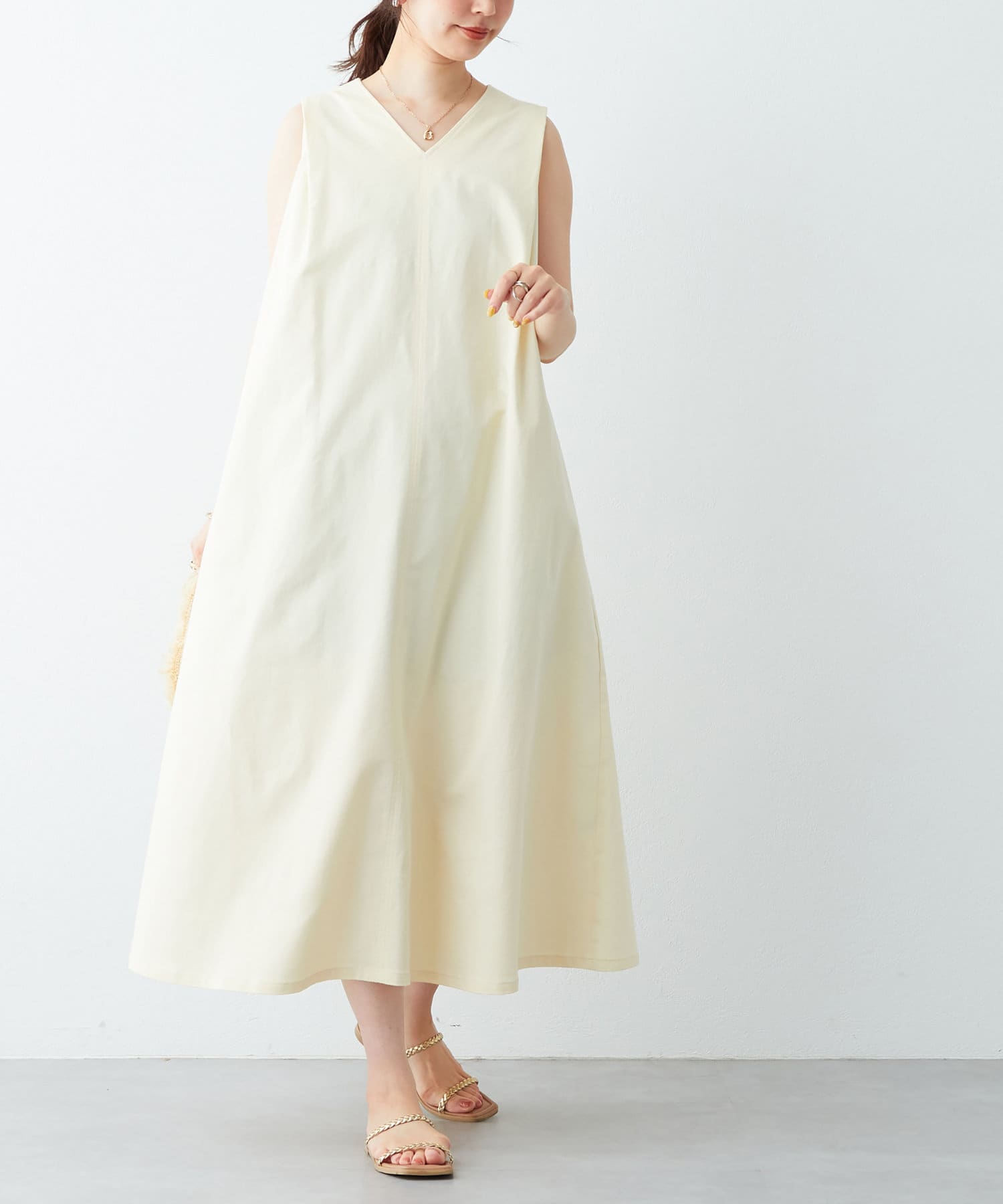 WEB限定カラー有り/配色ステッチVネックテントワンピース