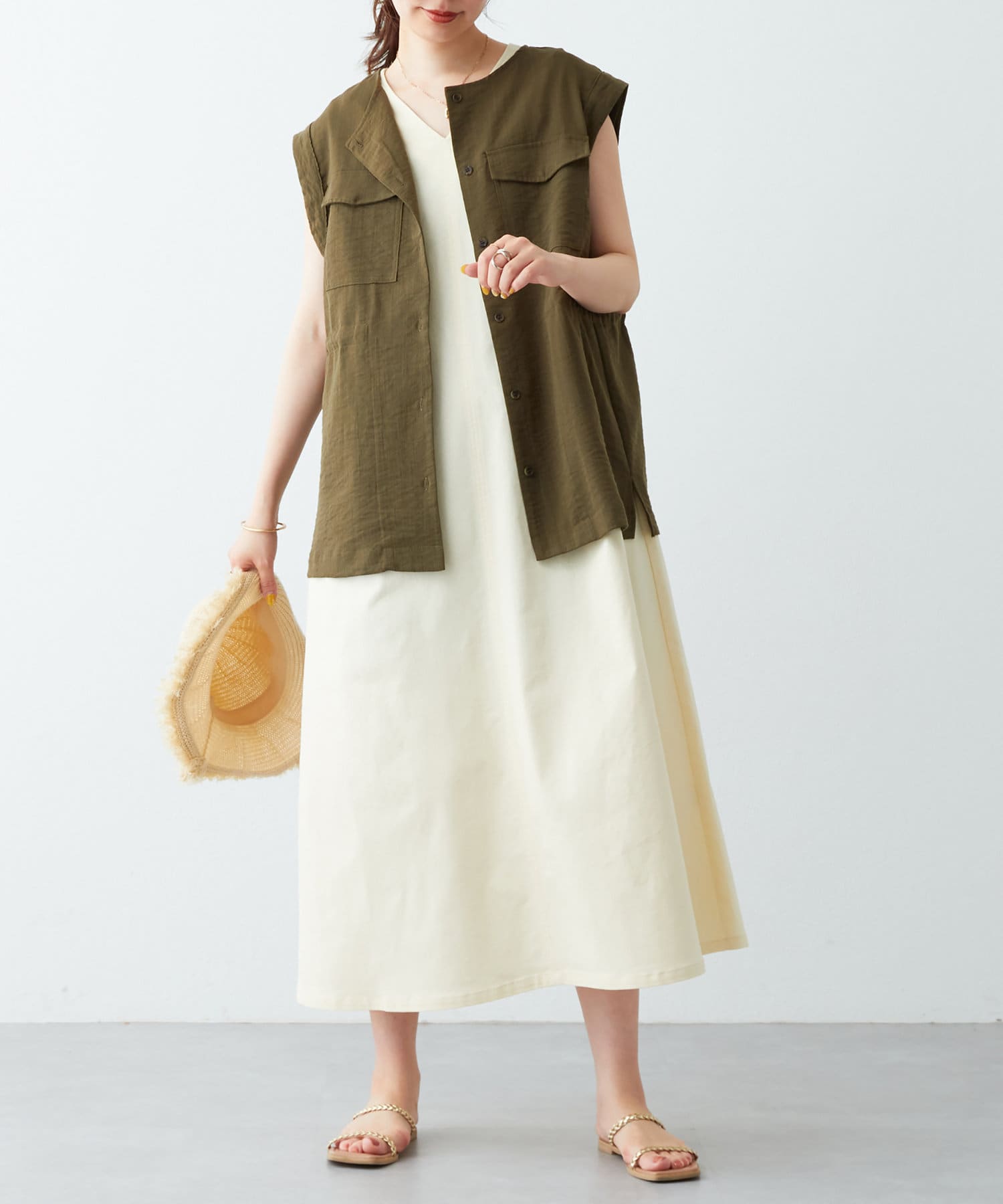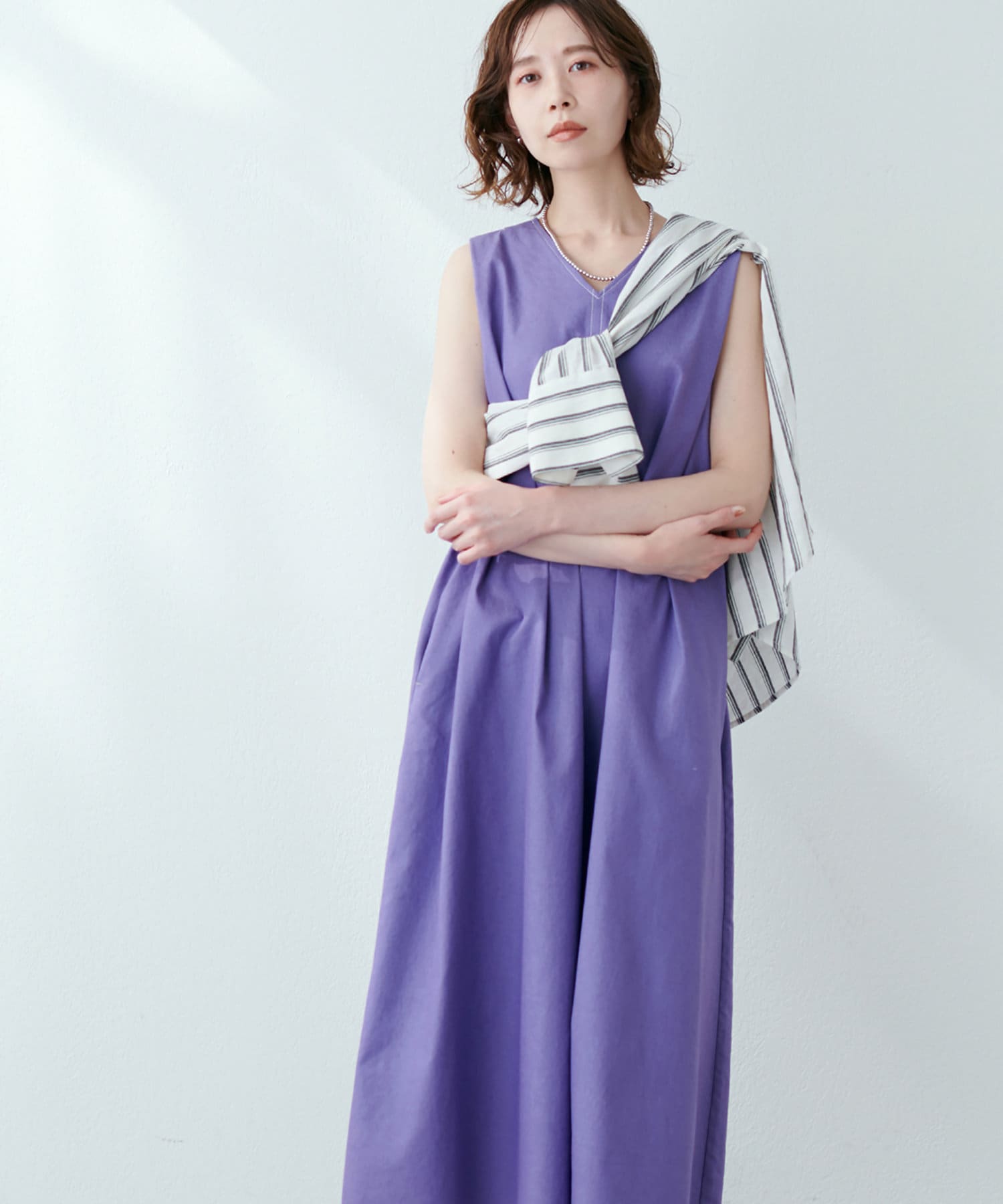 気になる身体のラインを拾いすぎず、リラックス感もありながら上品な印象でお召し頂けます。