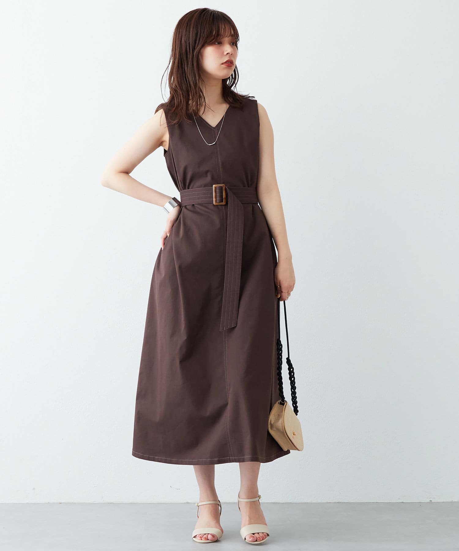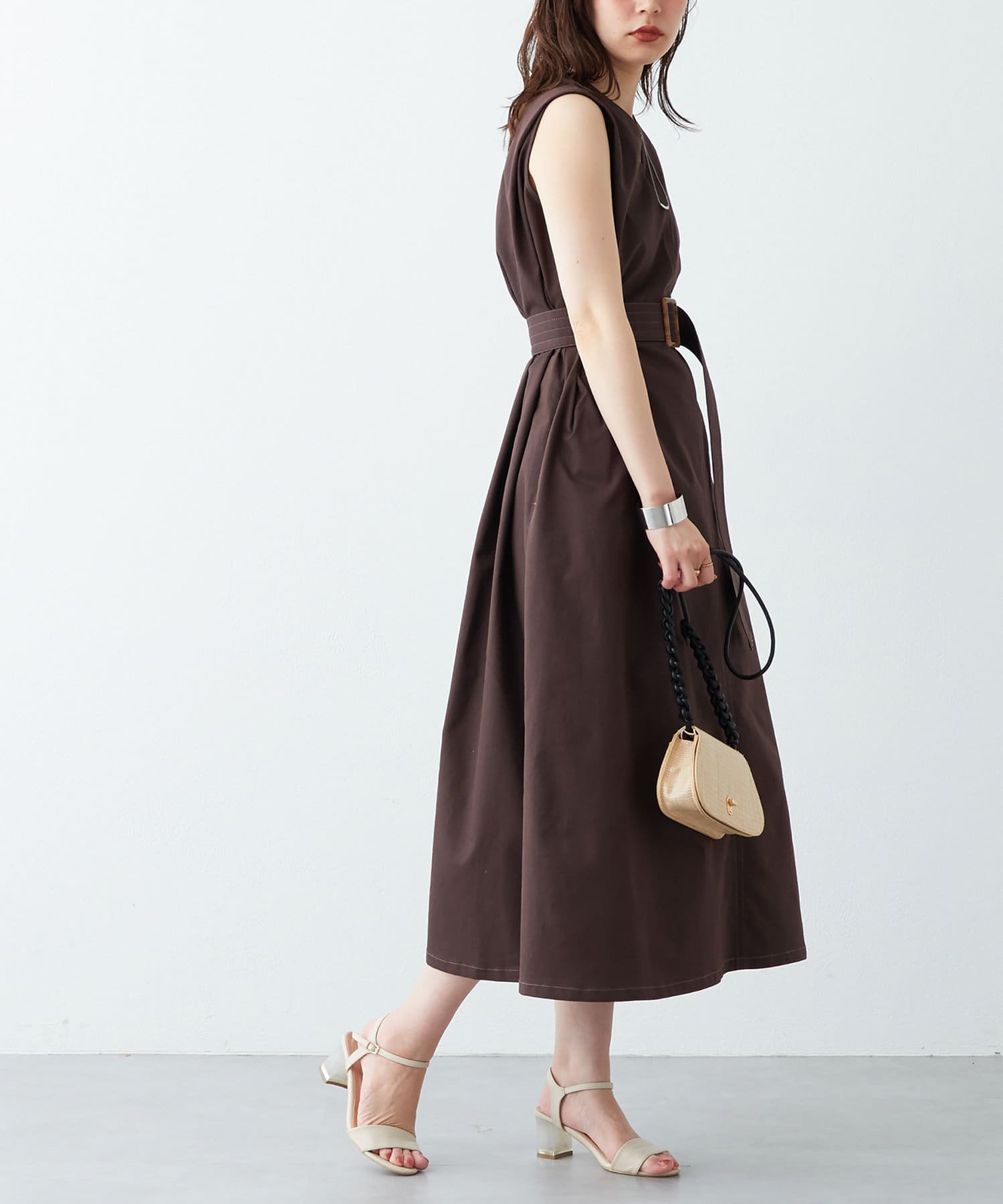 お好みで、付属のベルトでウエストマークして頂くとメリハリのあるスッキリとした印象に◎