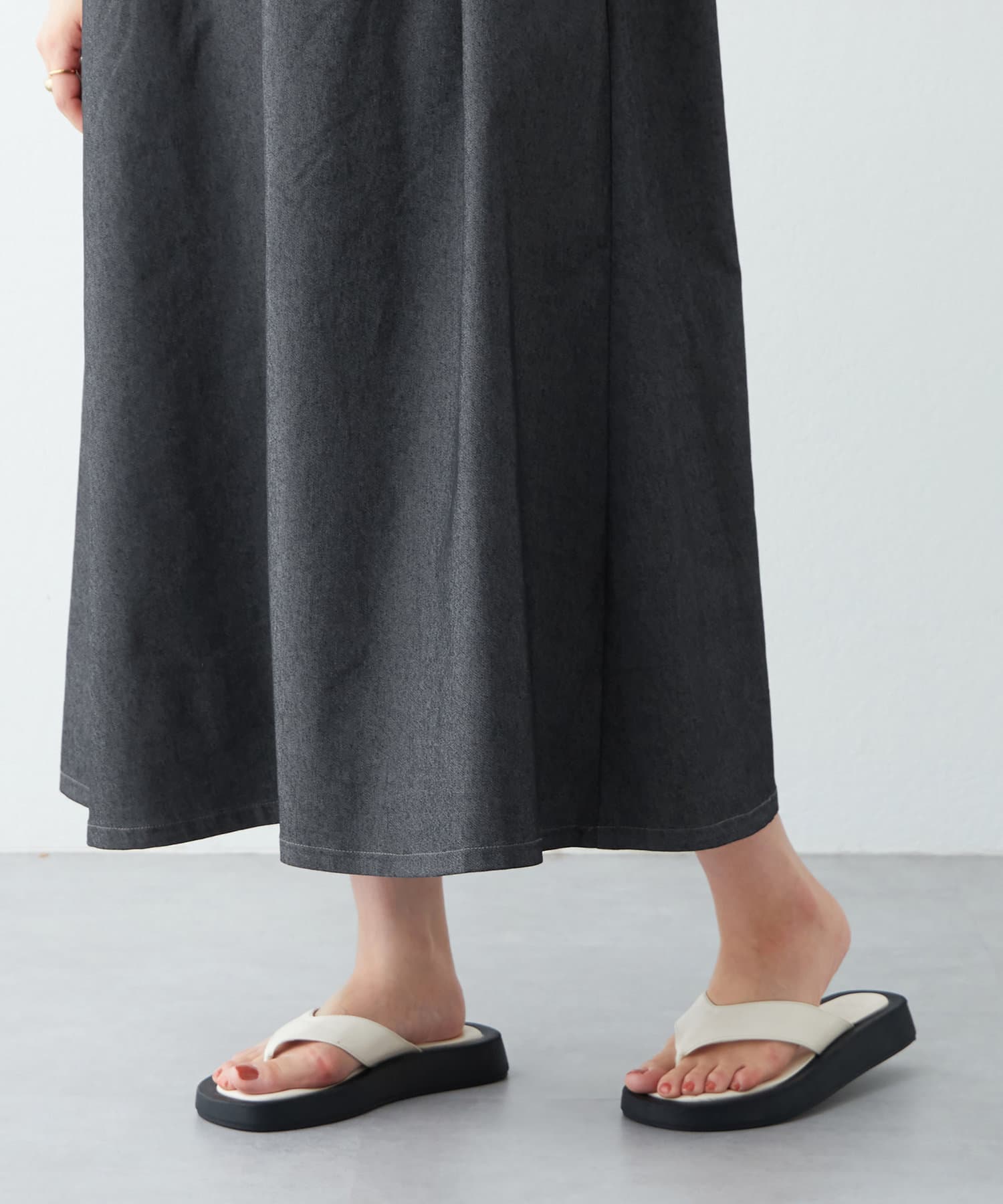 裾にかけて柔らかなラインが、動くたびに上品な揺れ感を生み、