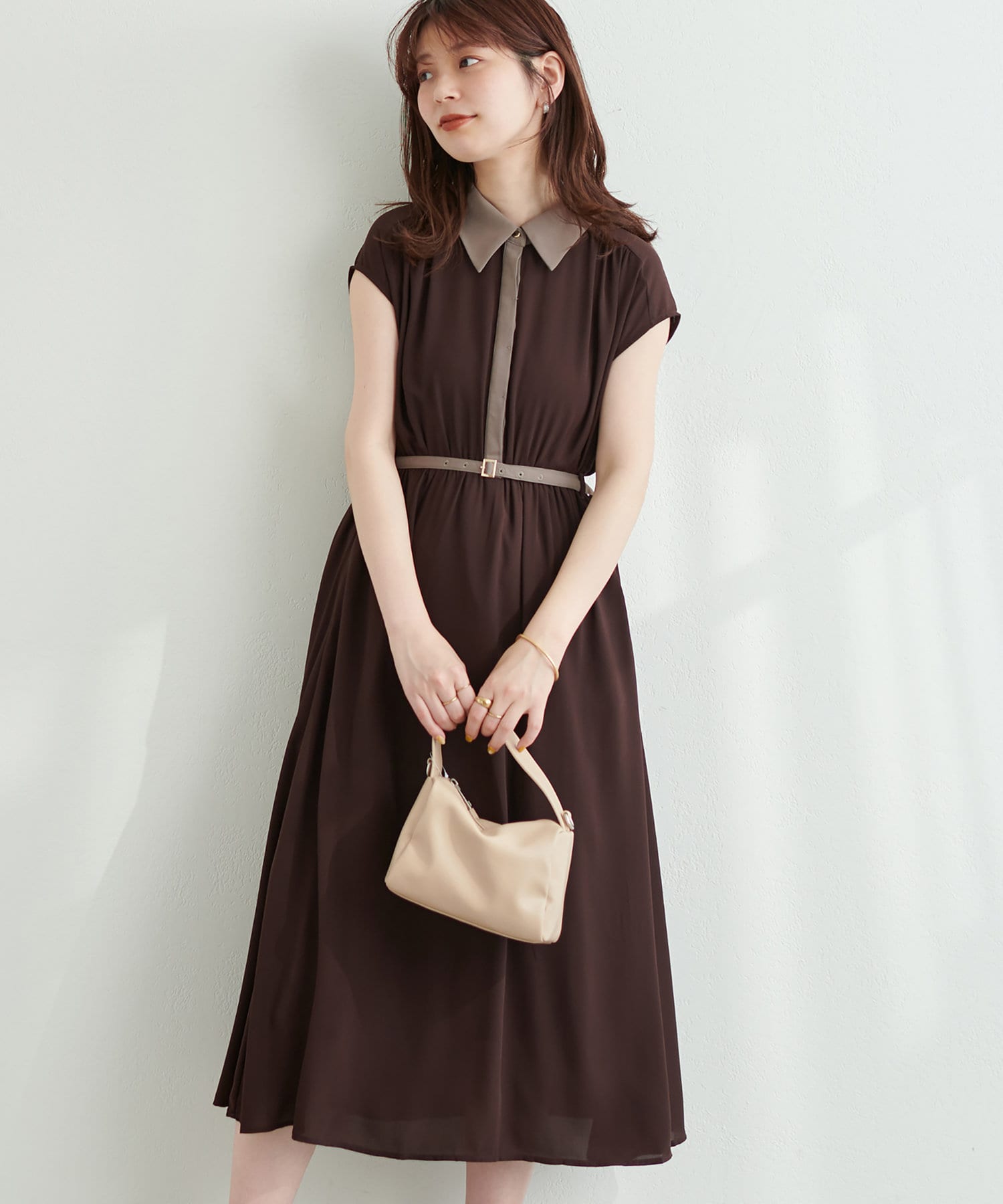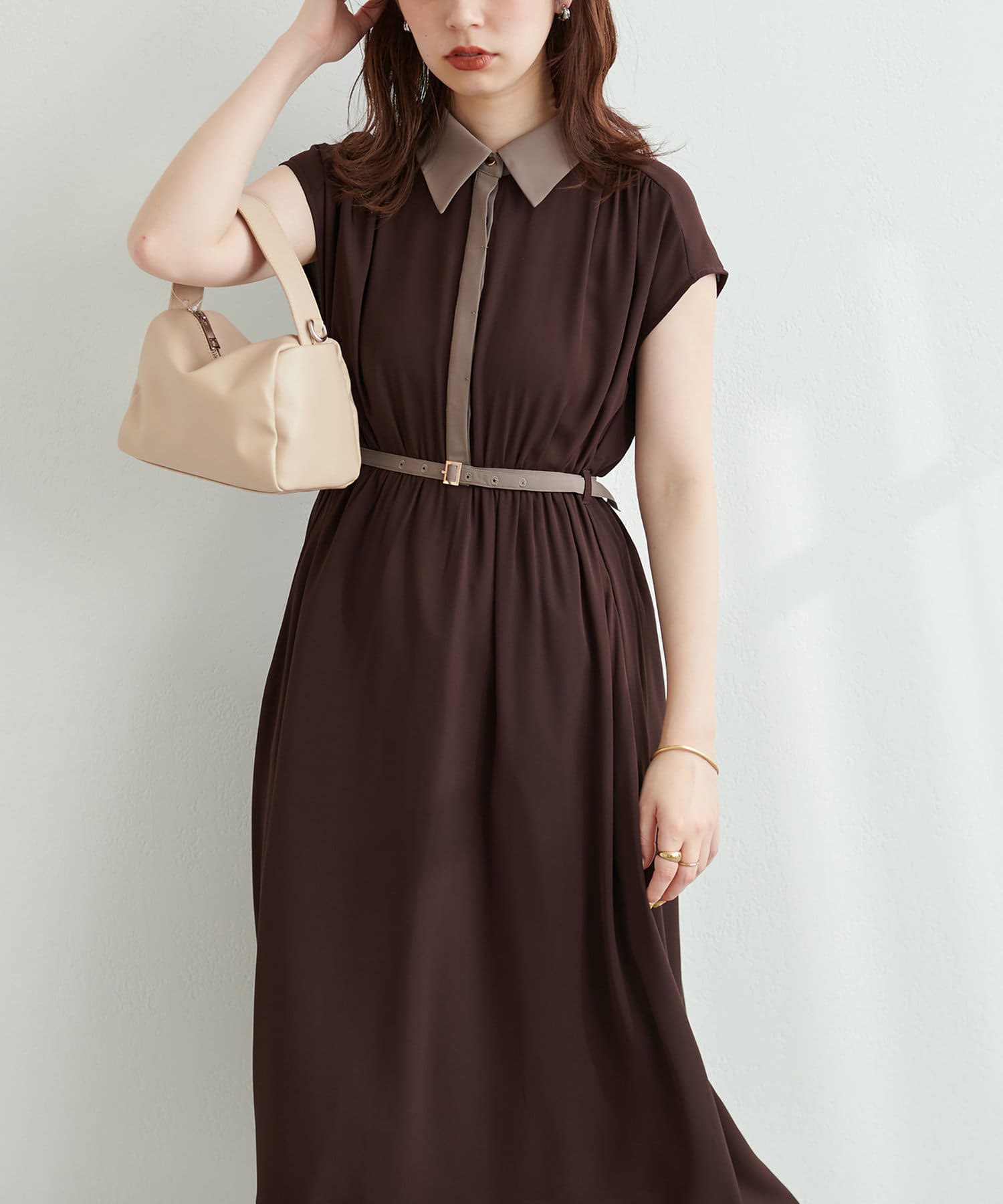 付属のベルトでウエストマークして頂くと、程良くきちんと感のある印象と、スタイルアップ効果が期待できます。
