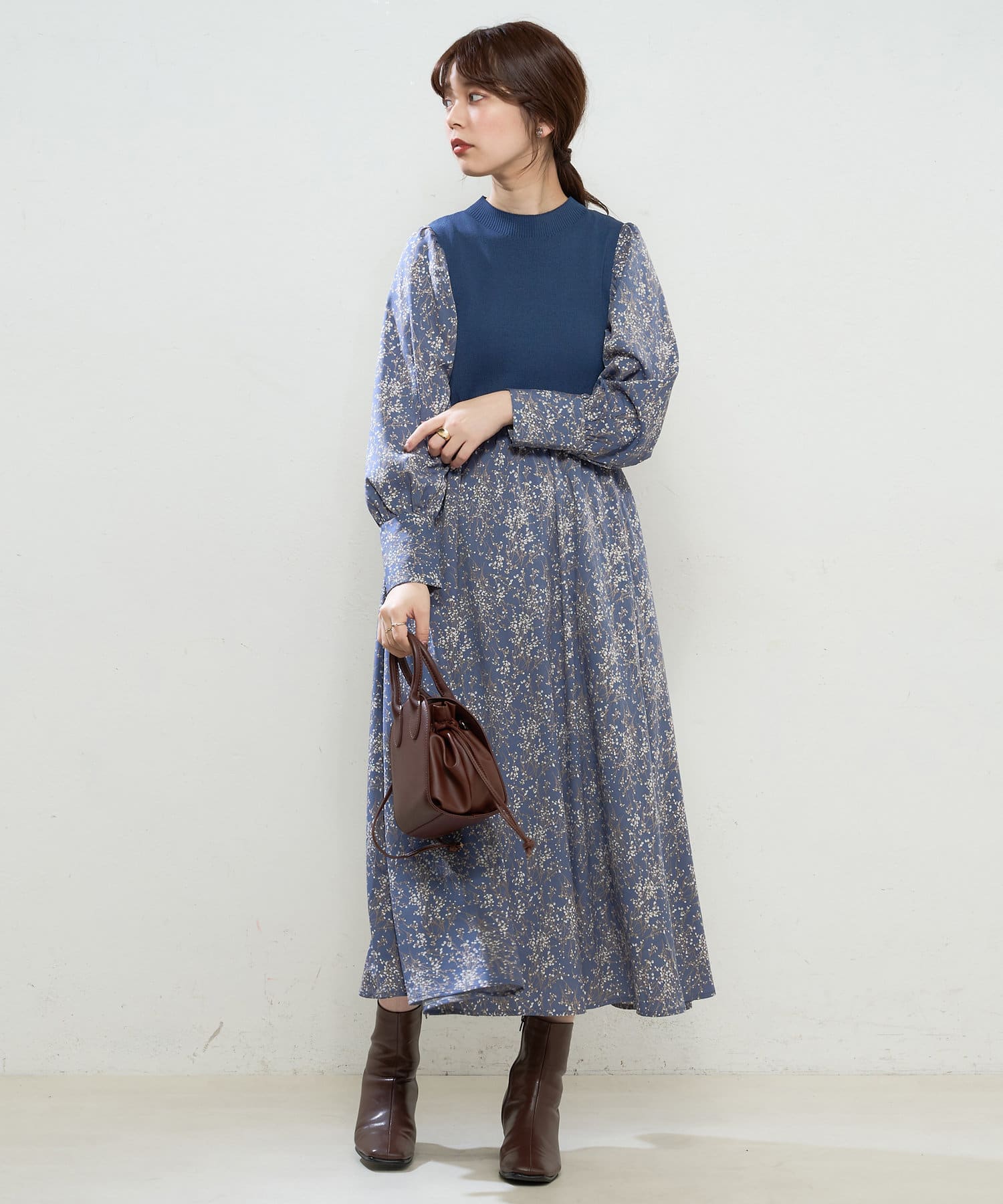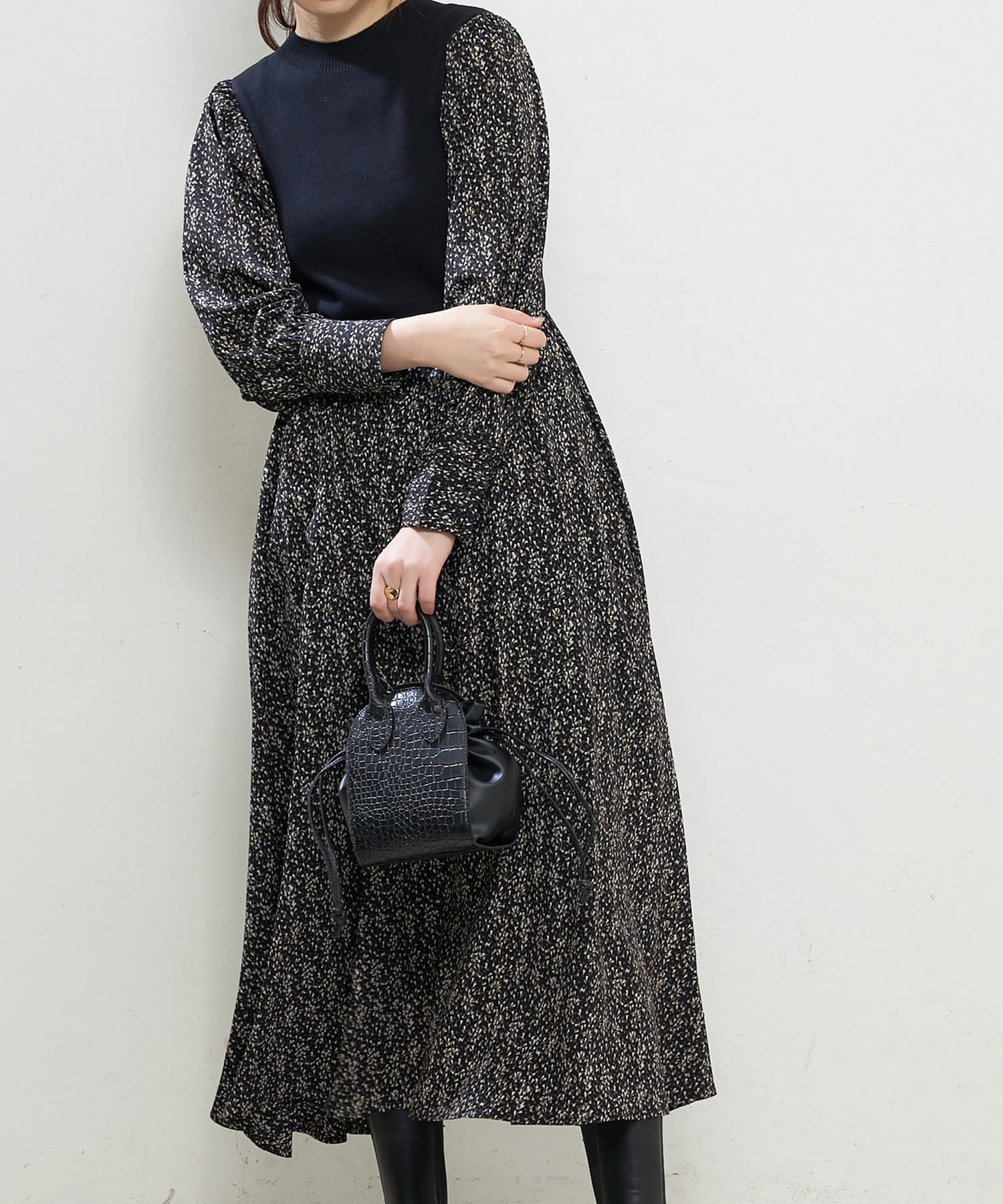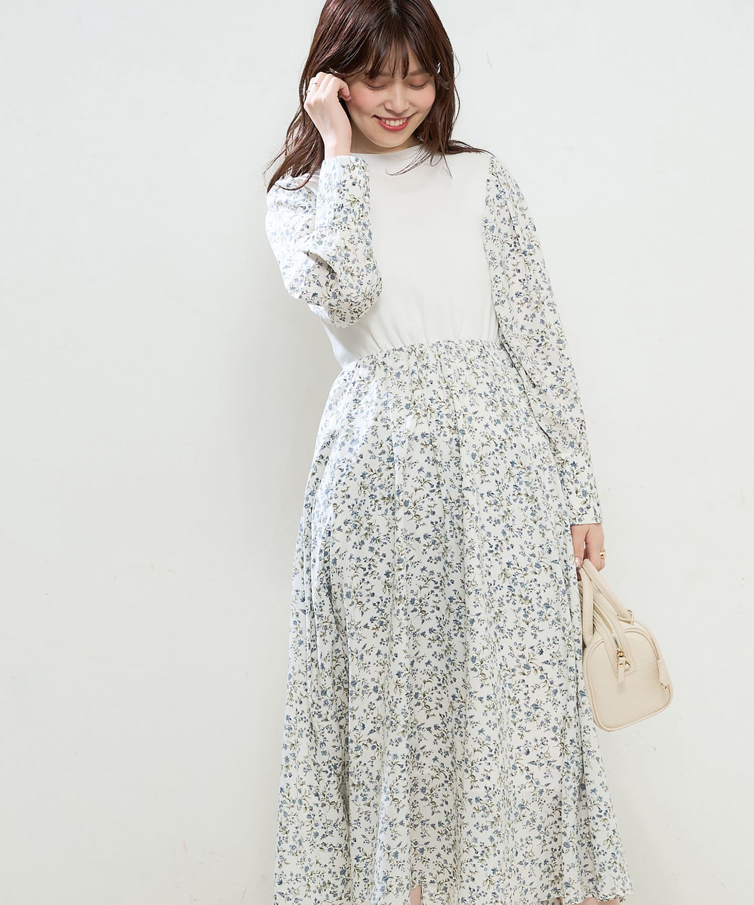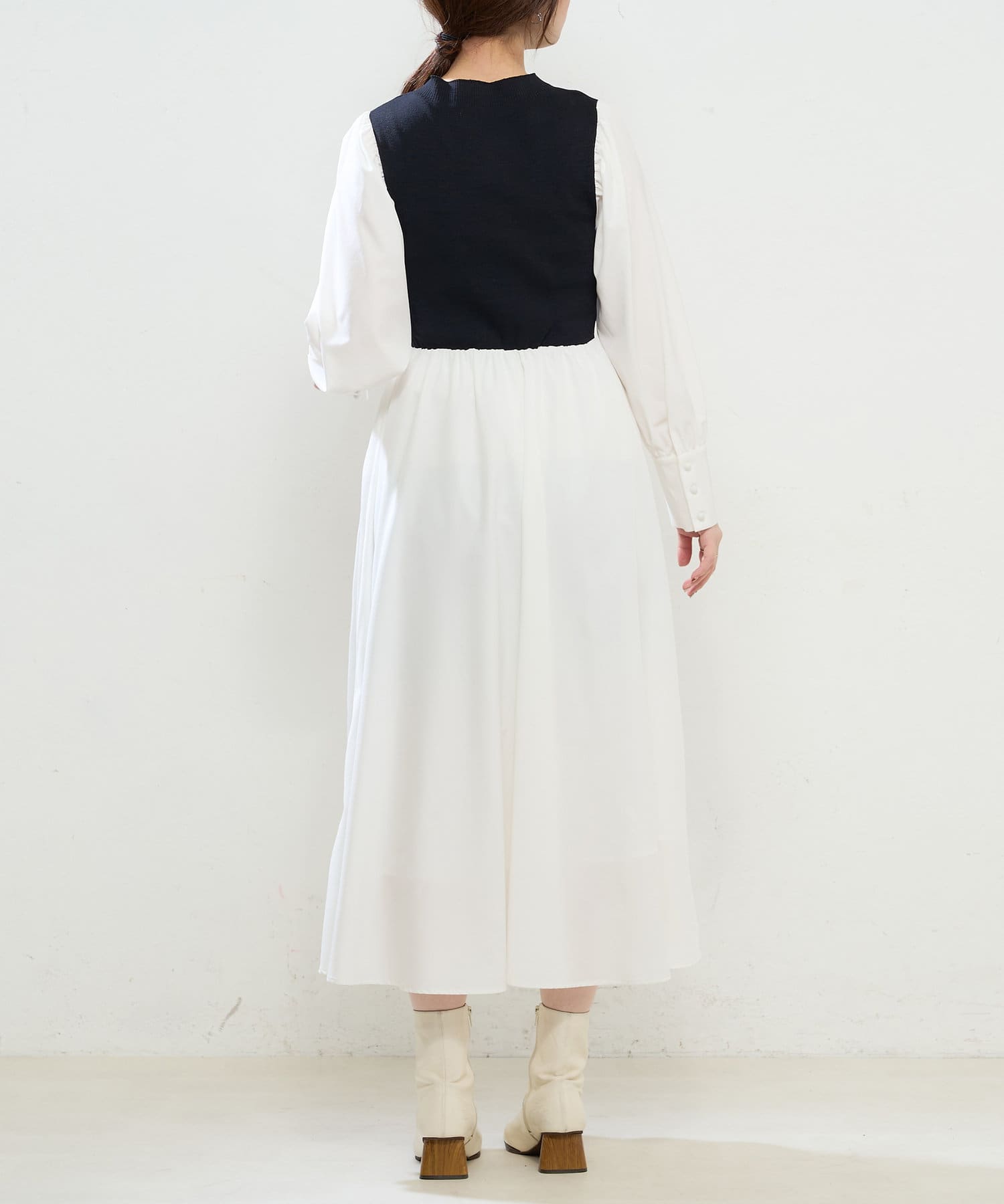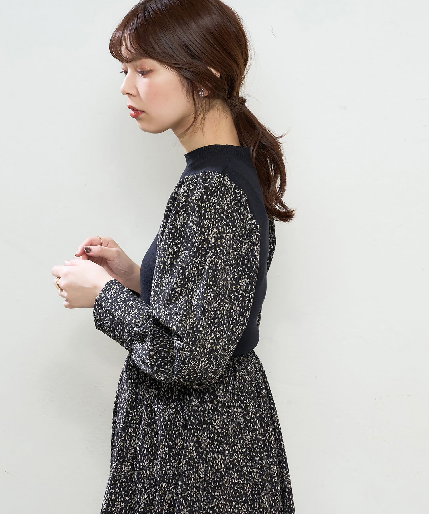 華奢見えが叶うニット×布帛のふんわりワンピ