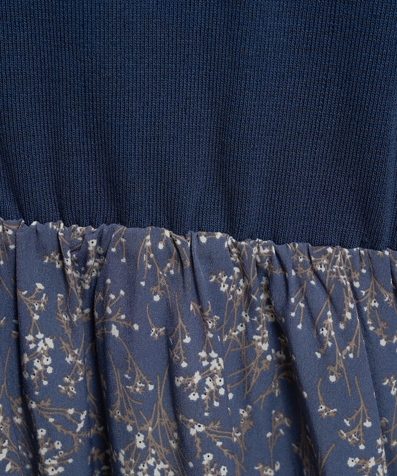 スカート部分とお袖はふんわりと柔らかい質感の布帛で、