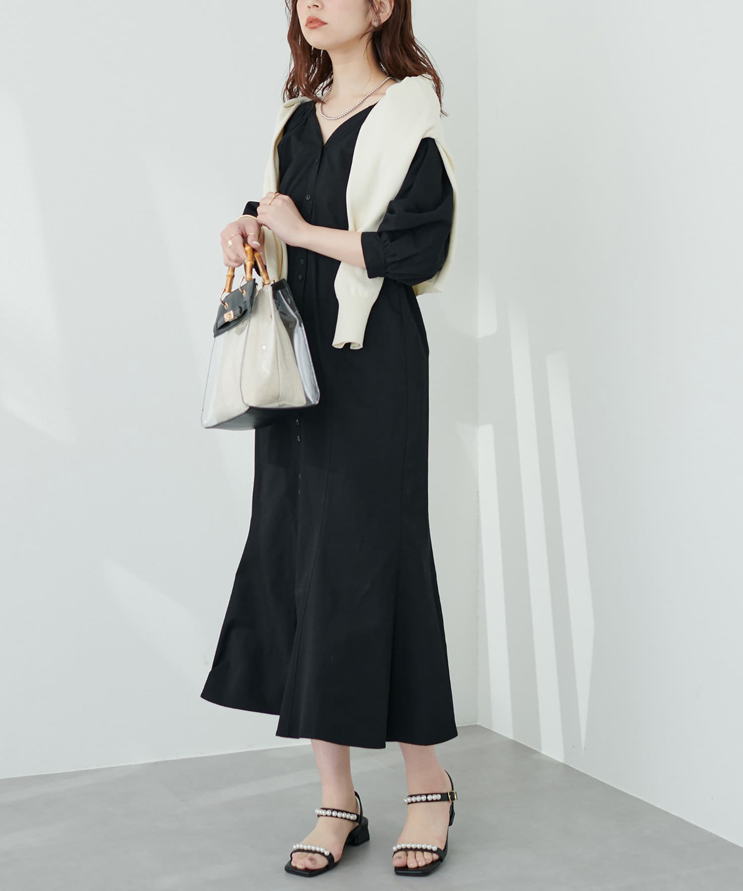 トレンドのマーメイドシルエットがレディ感あふれるアイテム。