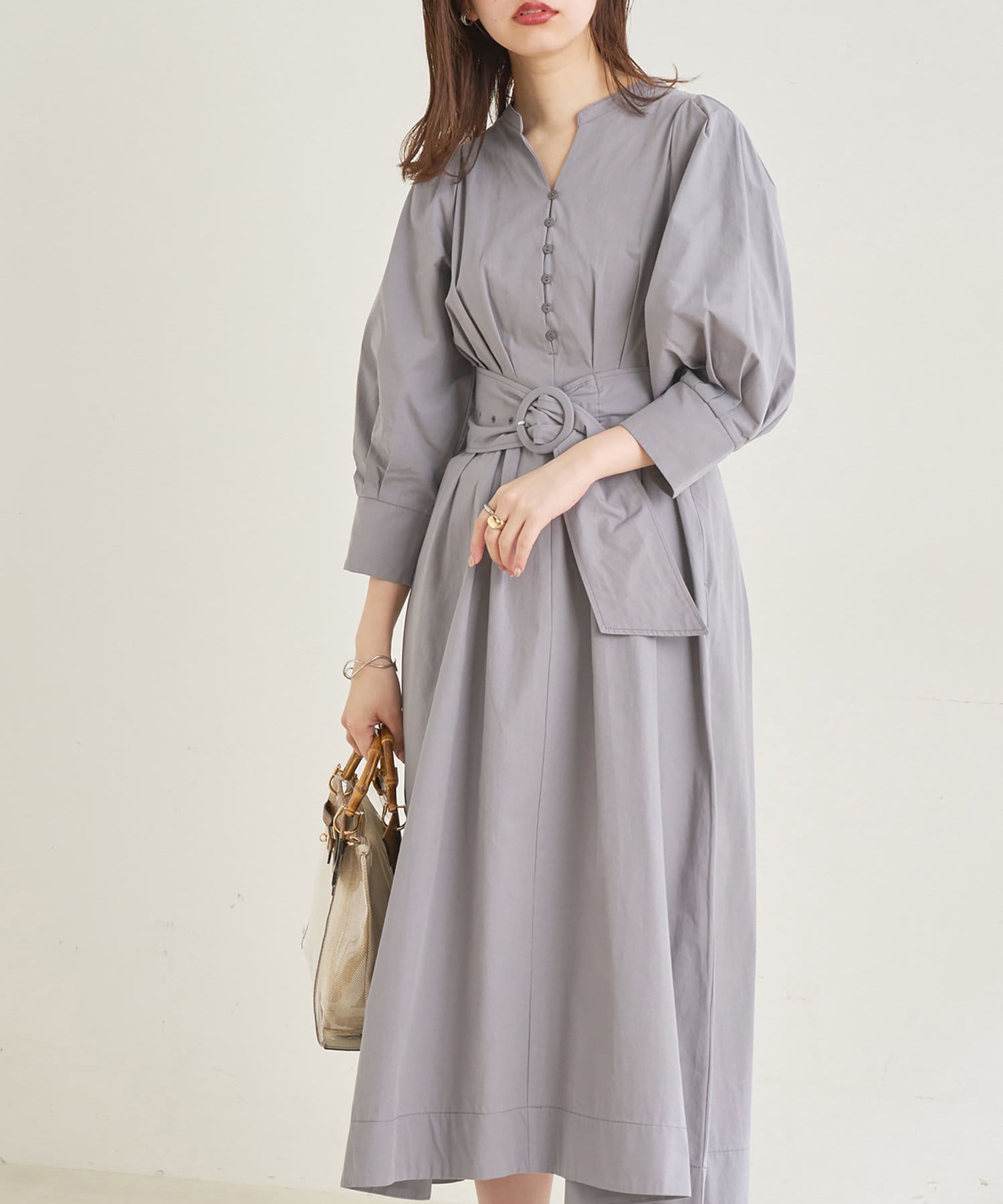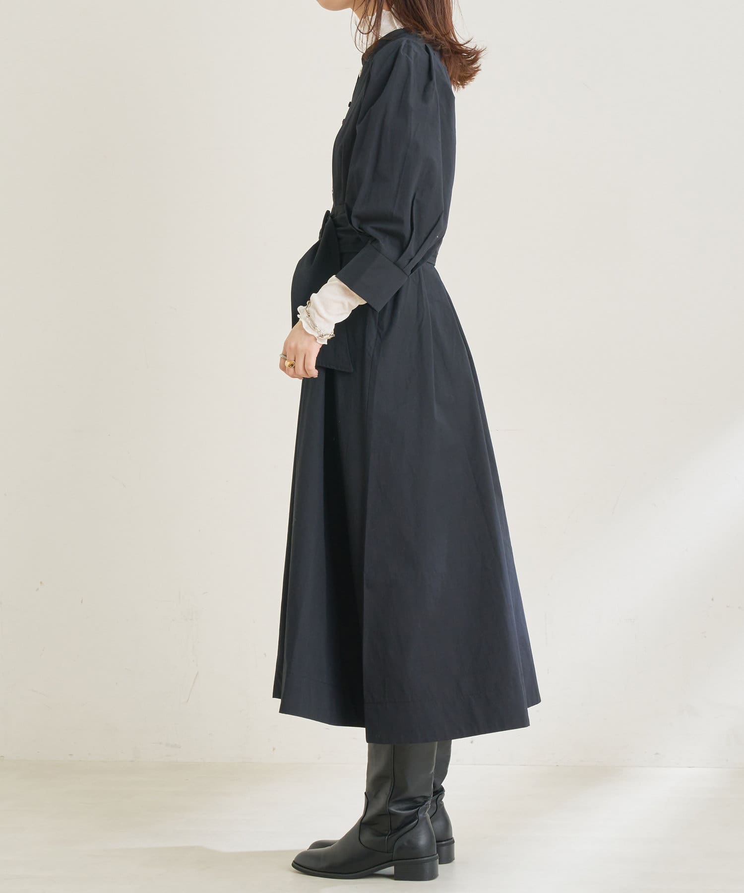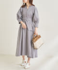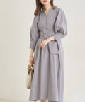 360度美しいシルエットが魅力 ウエストタックシャツワンピース