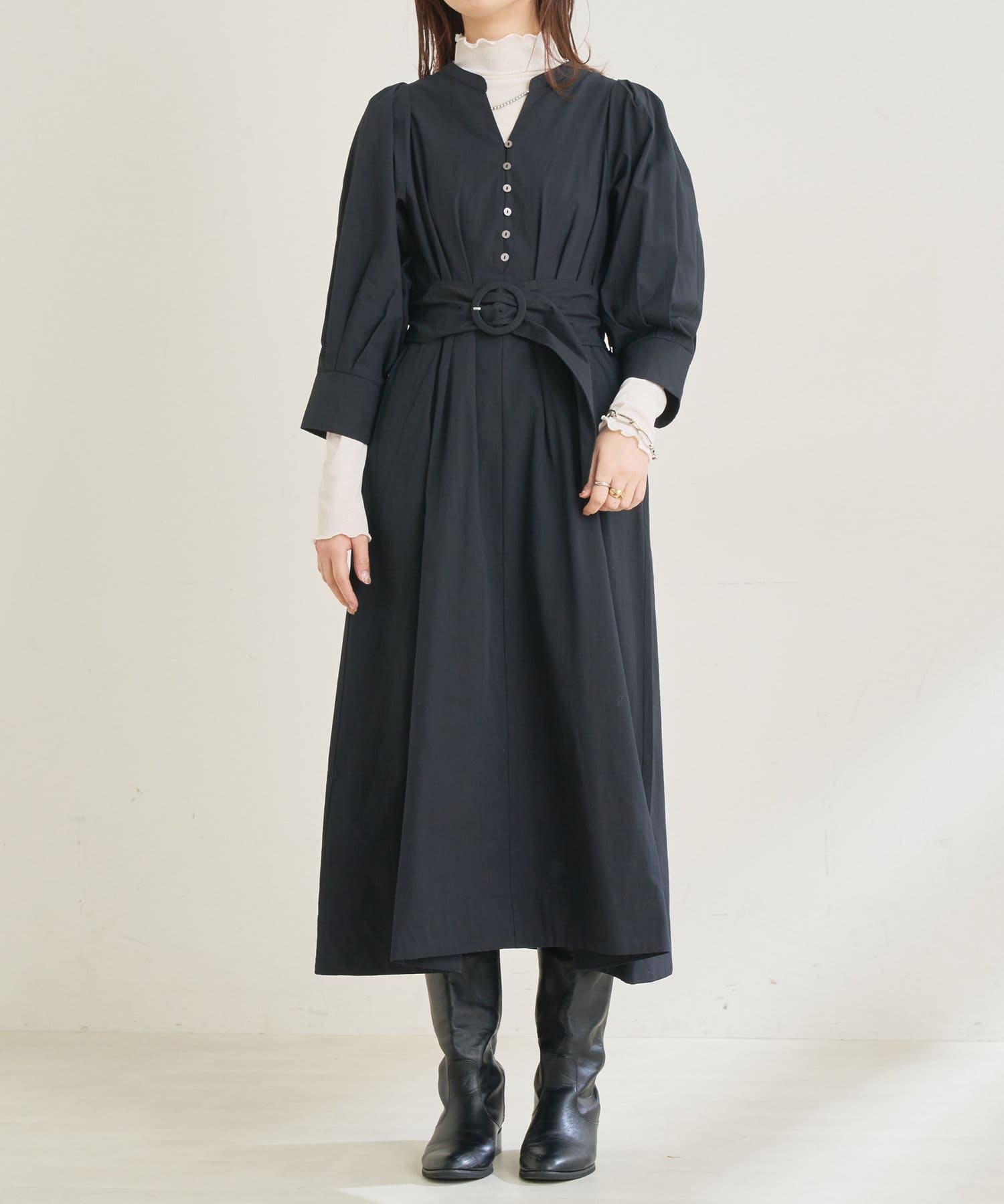 1枚でさらっとお召し頂くのはもちろん、お好みで付属のベルトでウエストマークして頂くとメリハリが生まれ、
