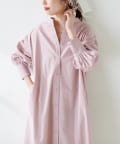 WEB限定カラー有り/細ベルト付きバンドカラーシャツワンピース