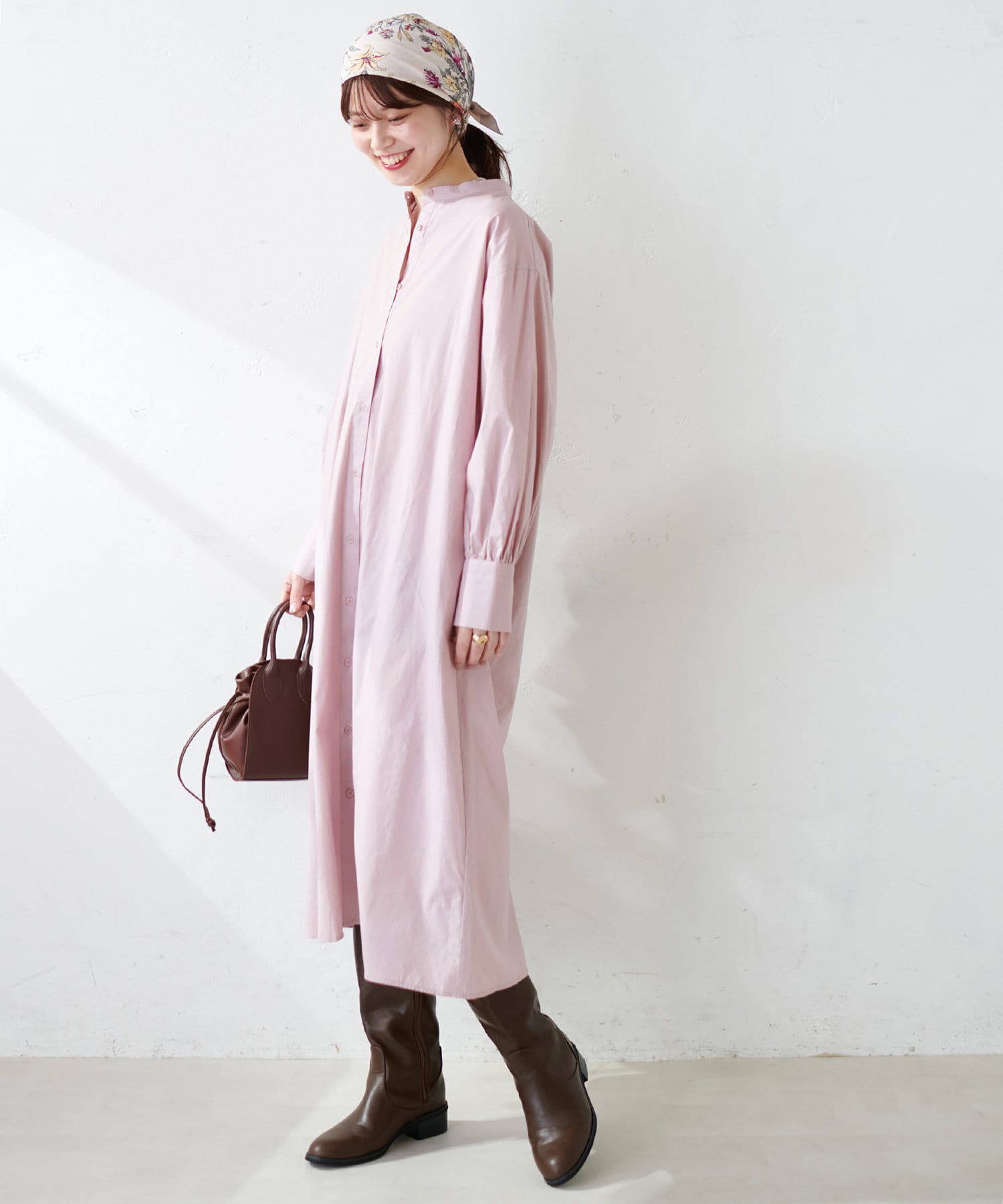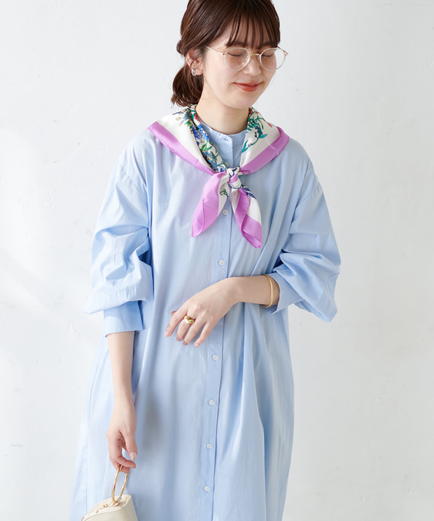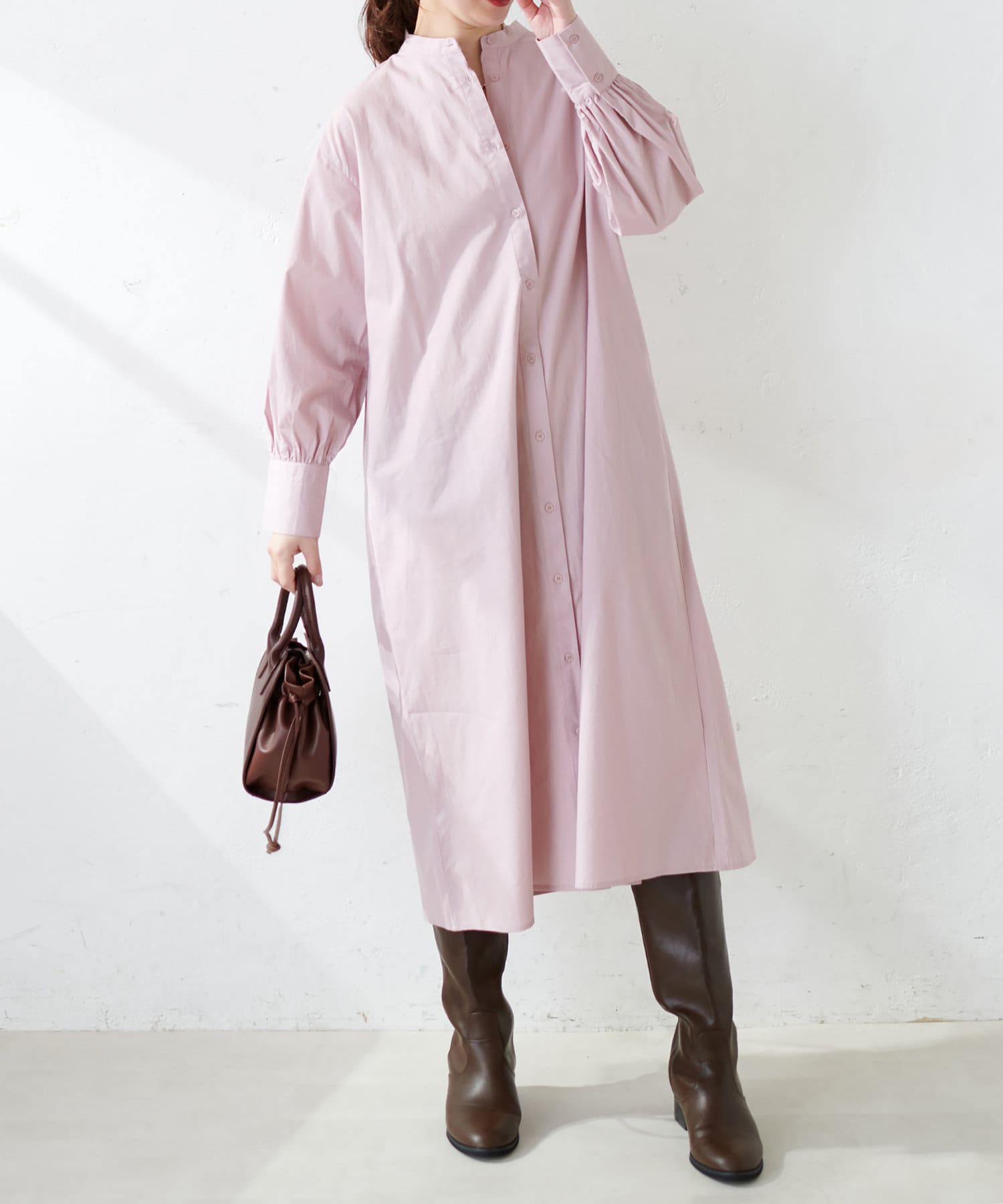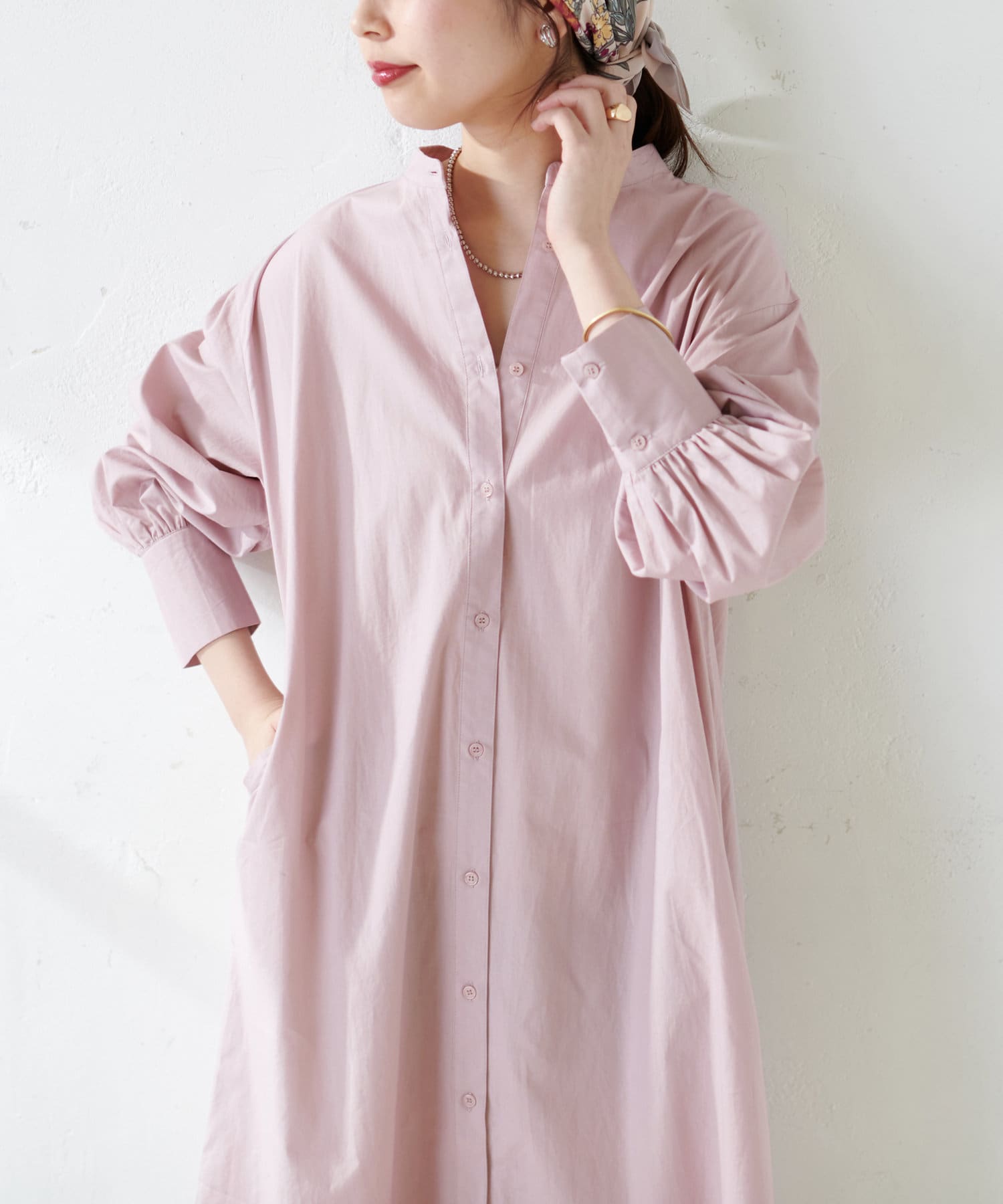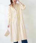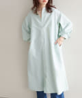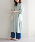 広がりすぎずストンとしたシンプルなシルエットで、ワンピースでも羽織としても重宝する定番シャツワンピース。