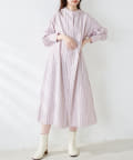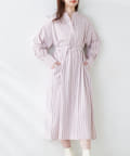 • natural couture(ナチュラルクチュール) WEB限定カラー有り/細ベルト付きバンドカラーシャツワンピース