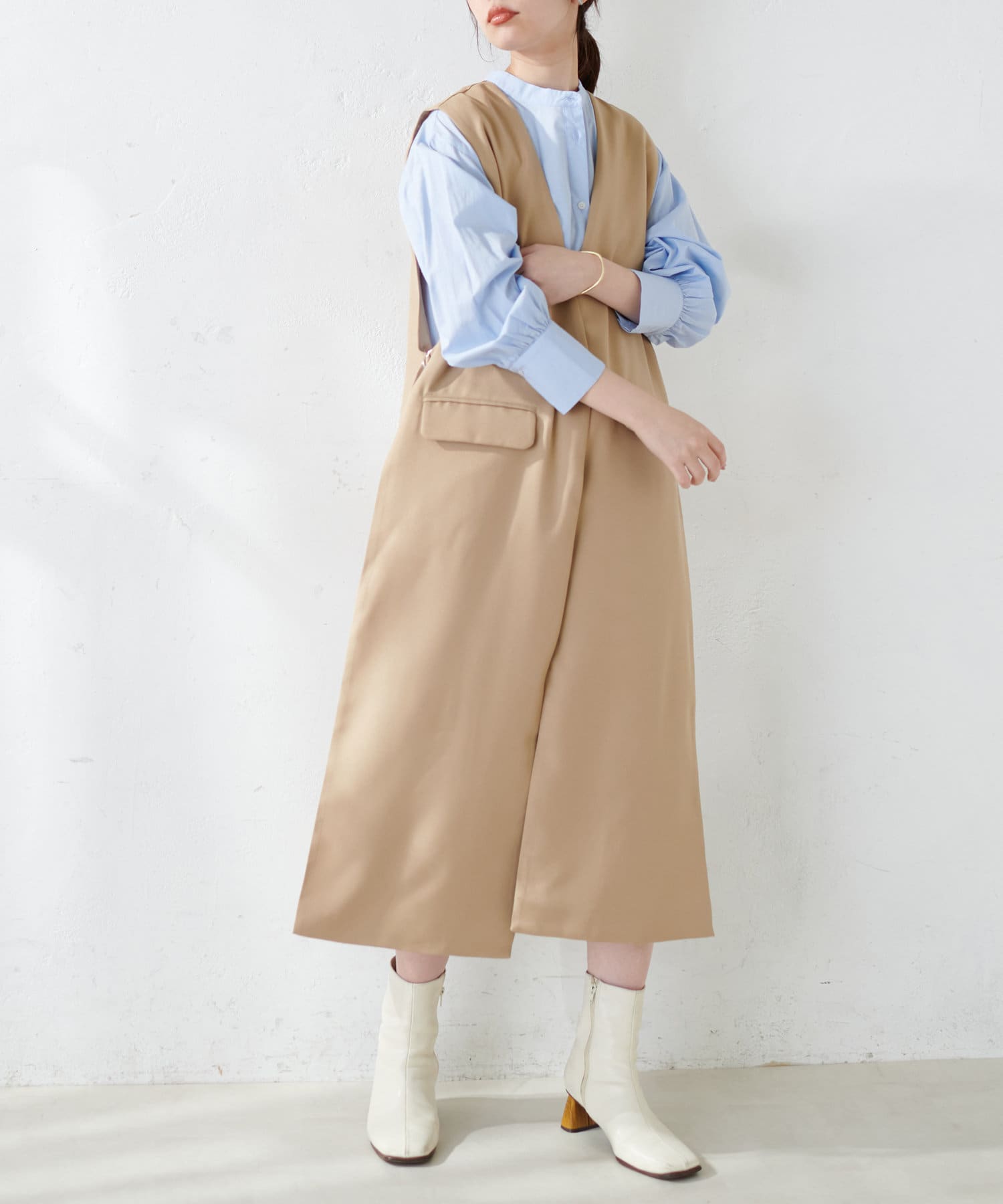 ニットプルオーバーを上から重ねたり、幾通りもの着方を楽しんで頂けます。