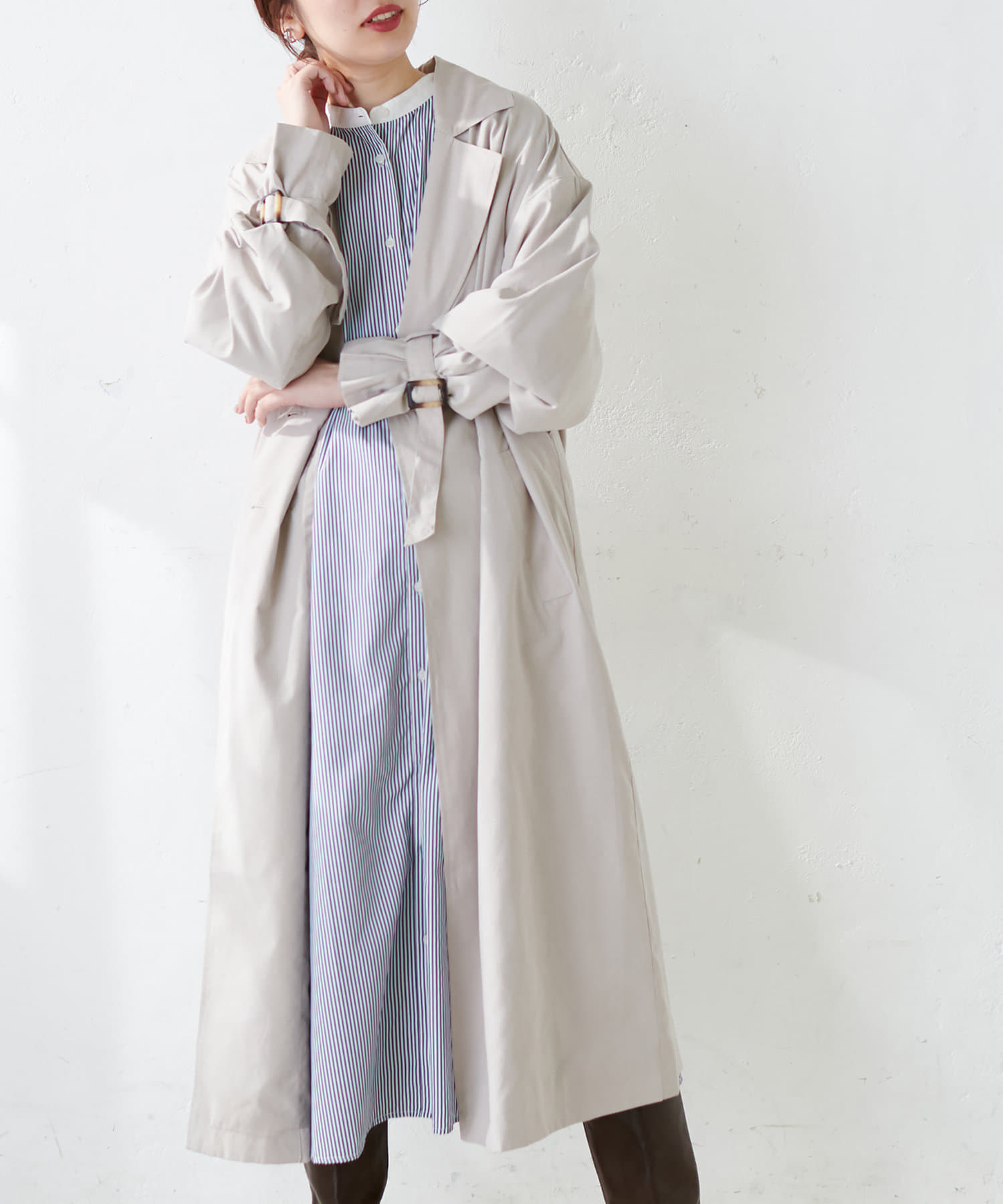 付属のベルトでウエストマークして頂くと雰囲気の違いも楽しんで頂けます。