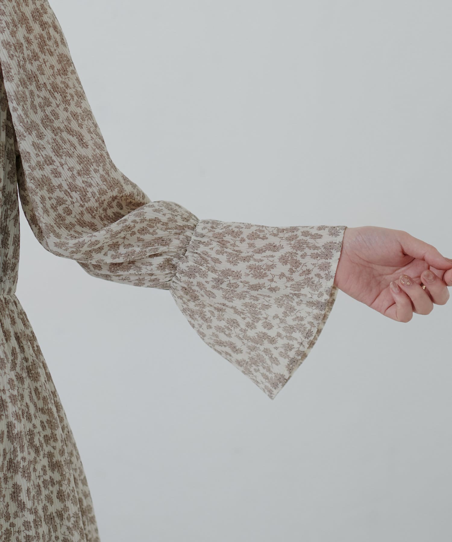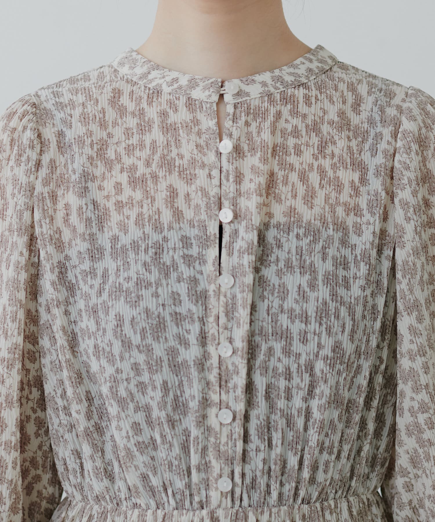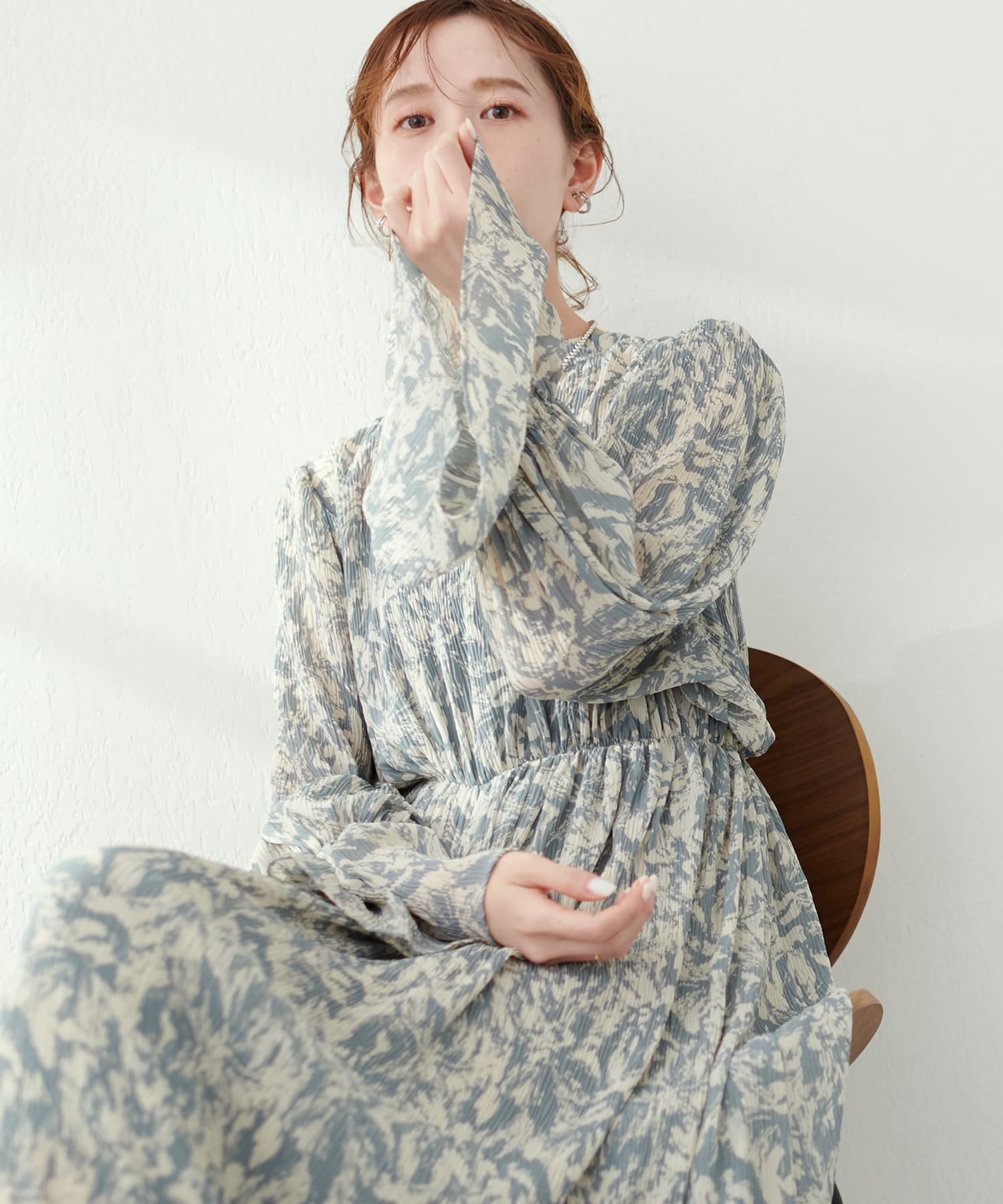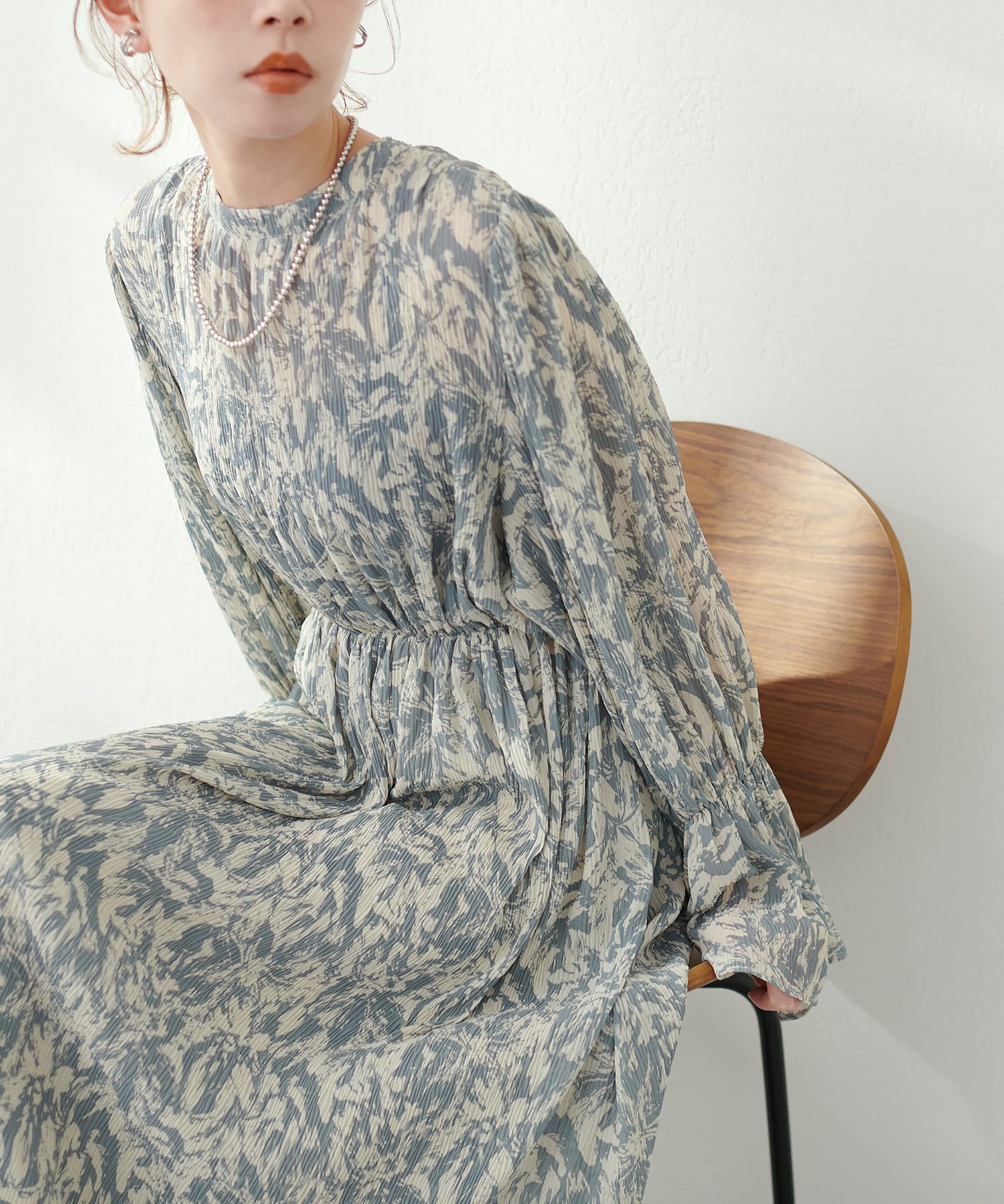 ほんのりシアー感と繊細なプリーツ使いが、動くたびに柔らかい揺れ感を生み、