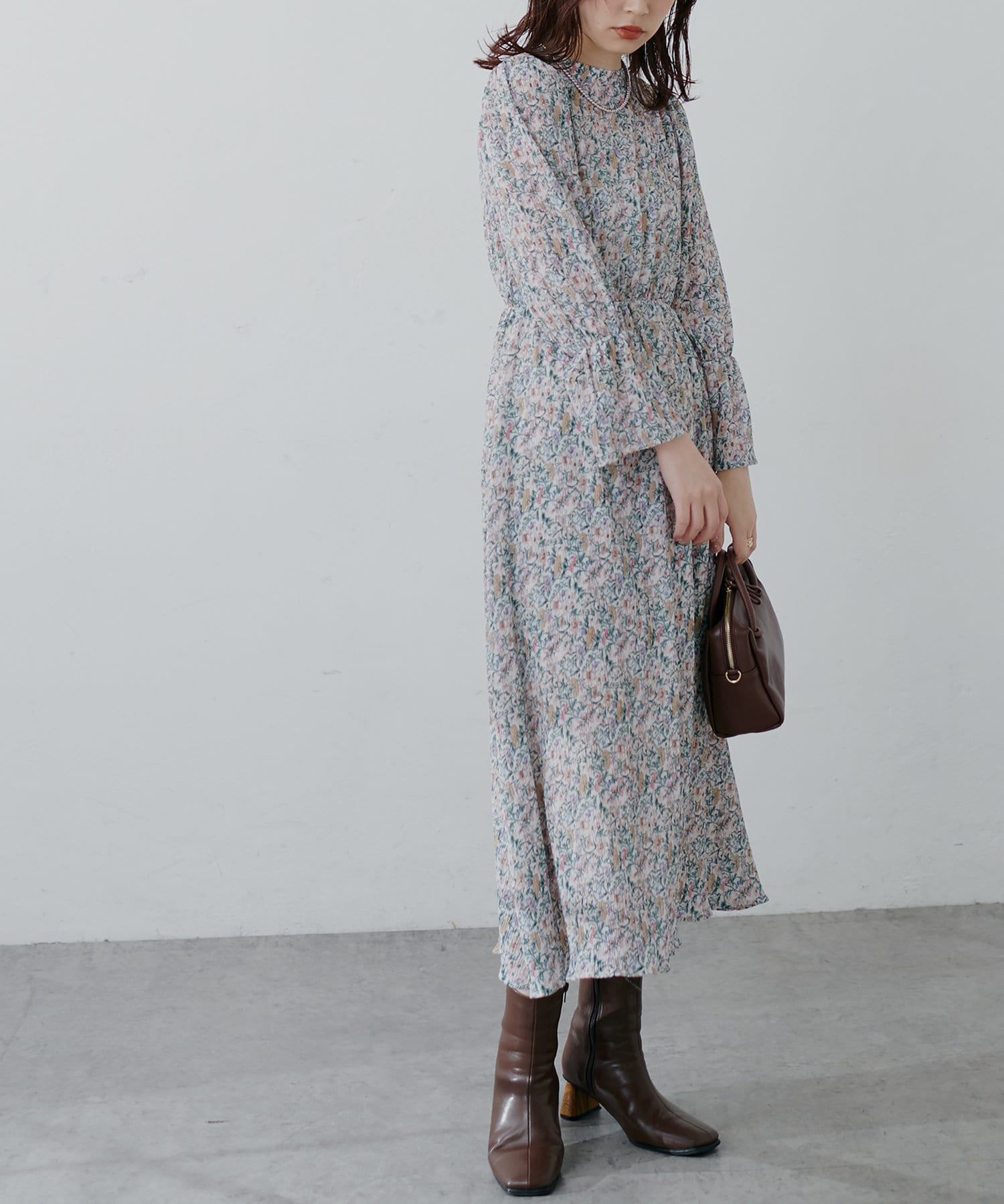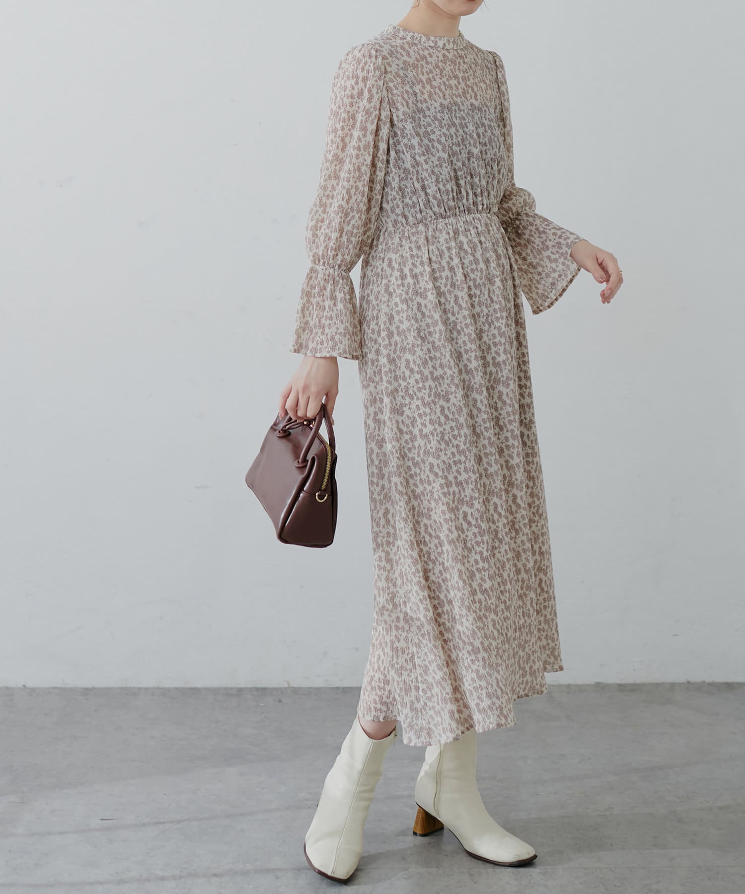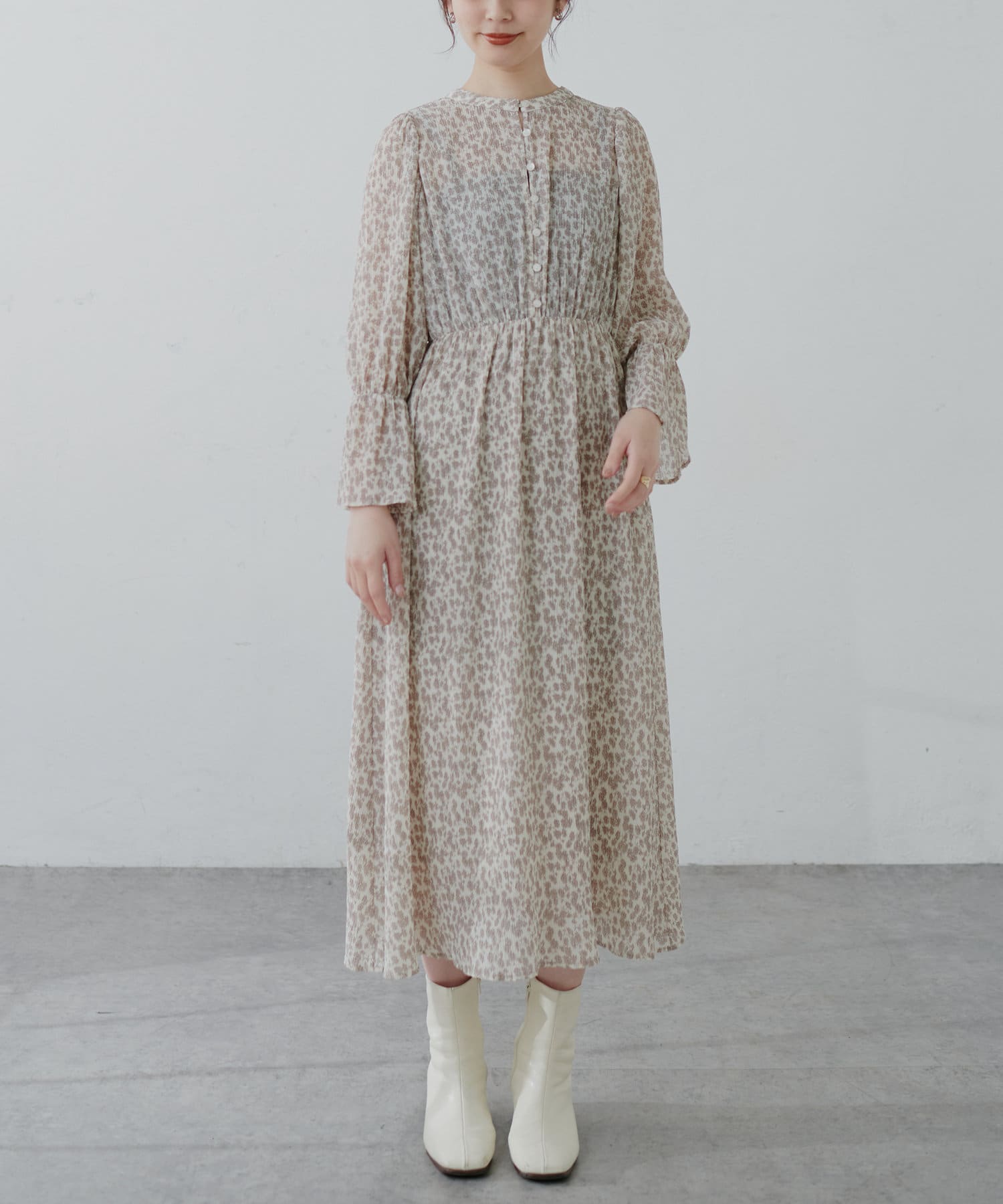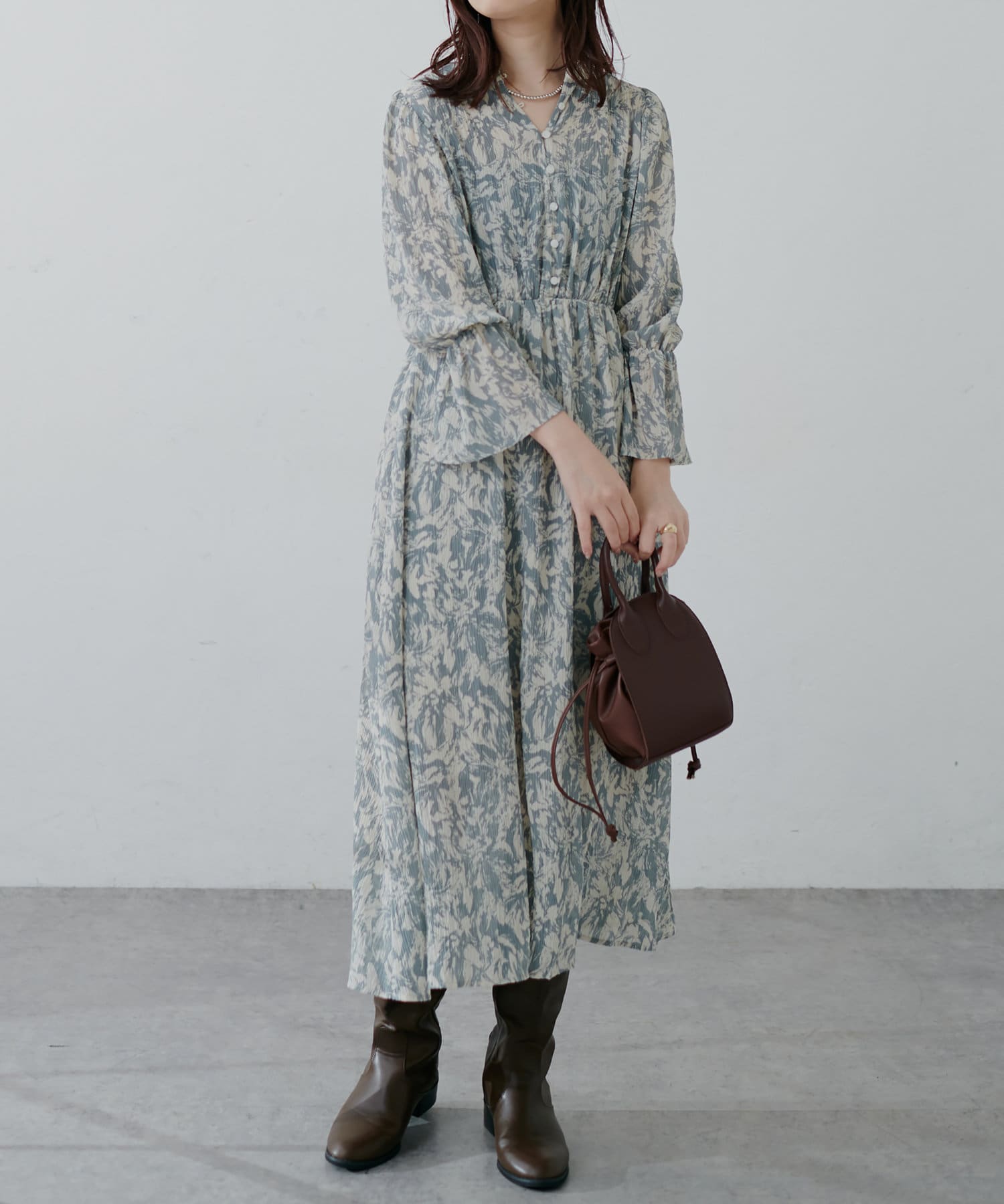 ほんのりシアー感と繊細なプリーツ使いが、動くたびに柔らかい揺れ感を生み、