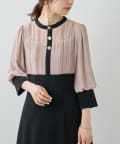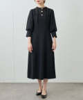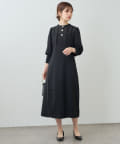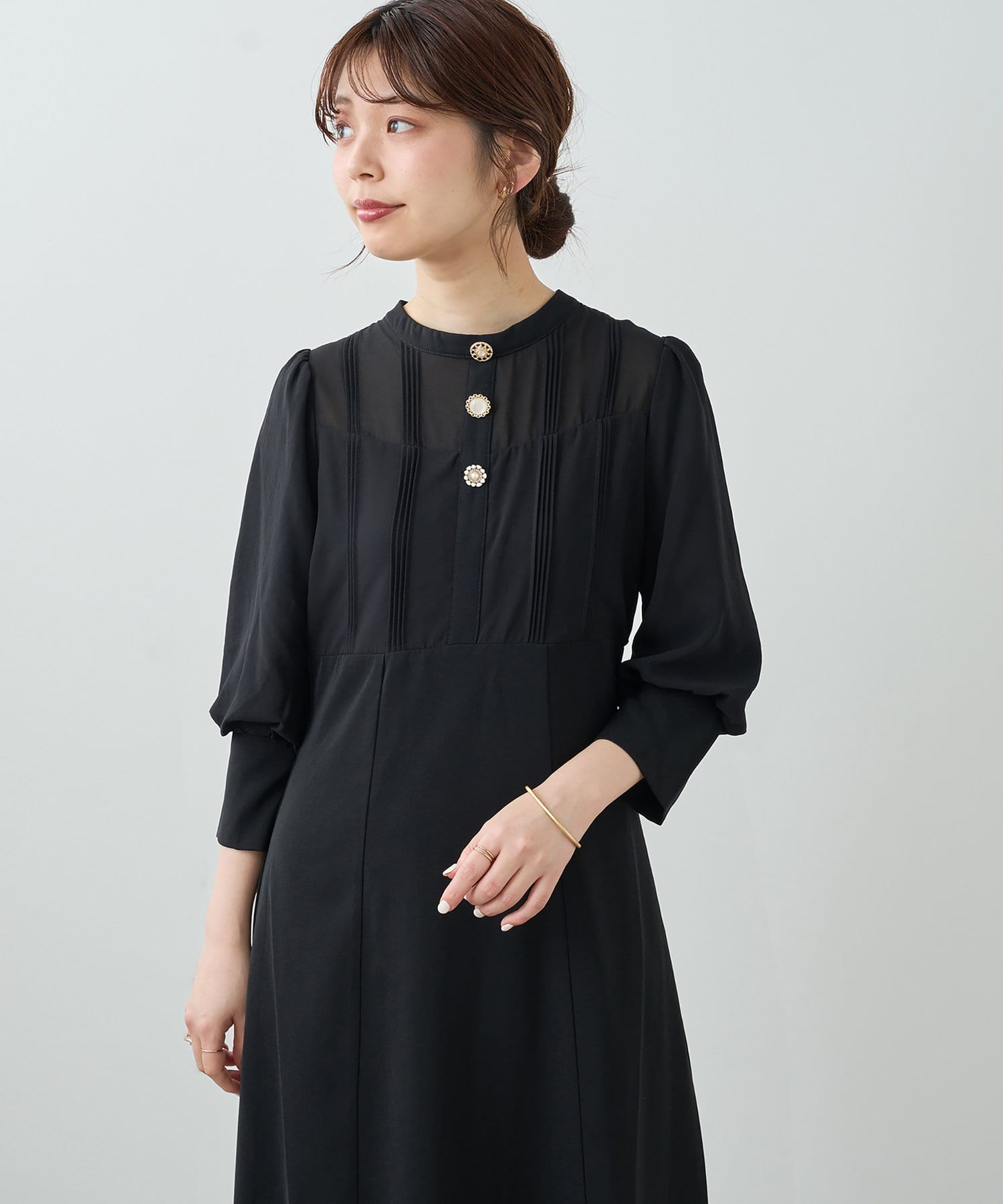 • natural couture(ナチュラルクチュール) 【WEB限定】パーティーシーンで映える ビジュー釦異素材バルーン袖ワンピース