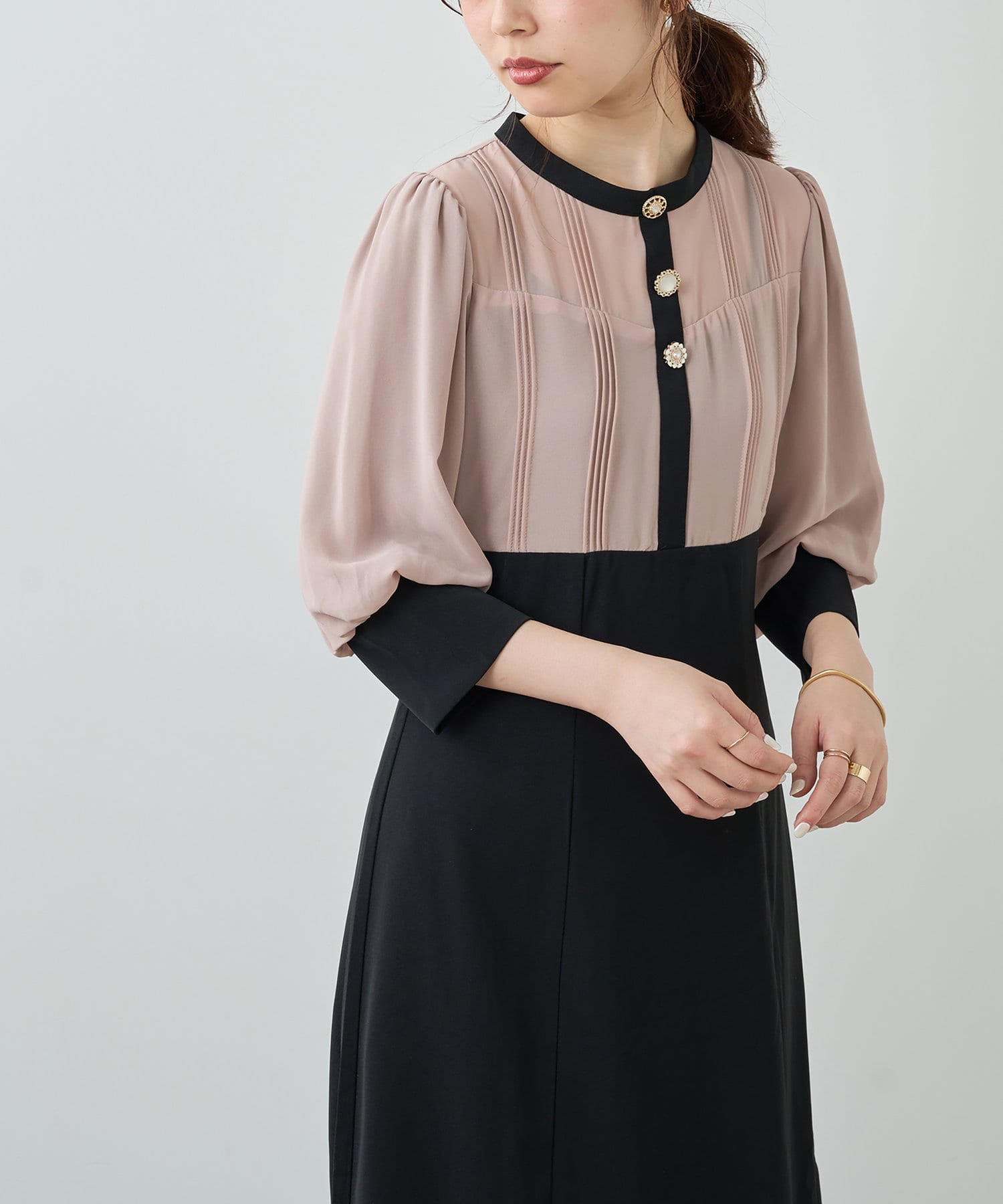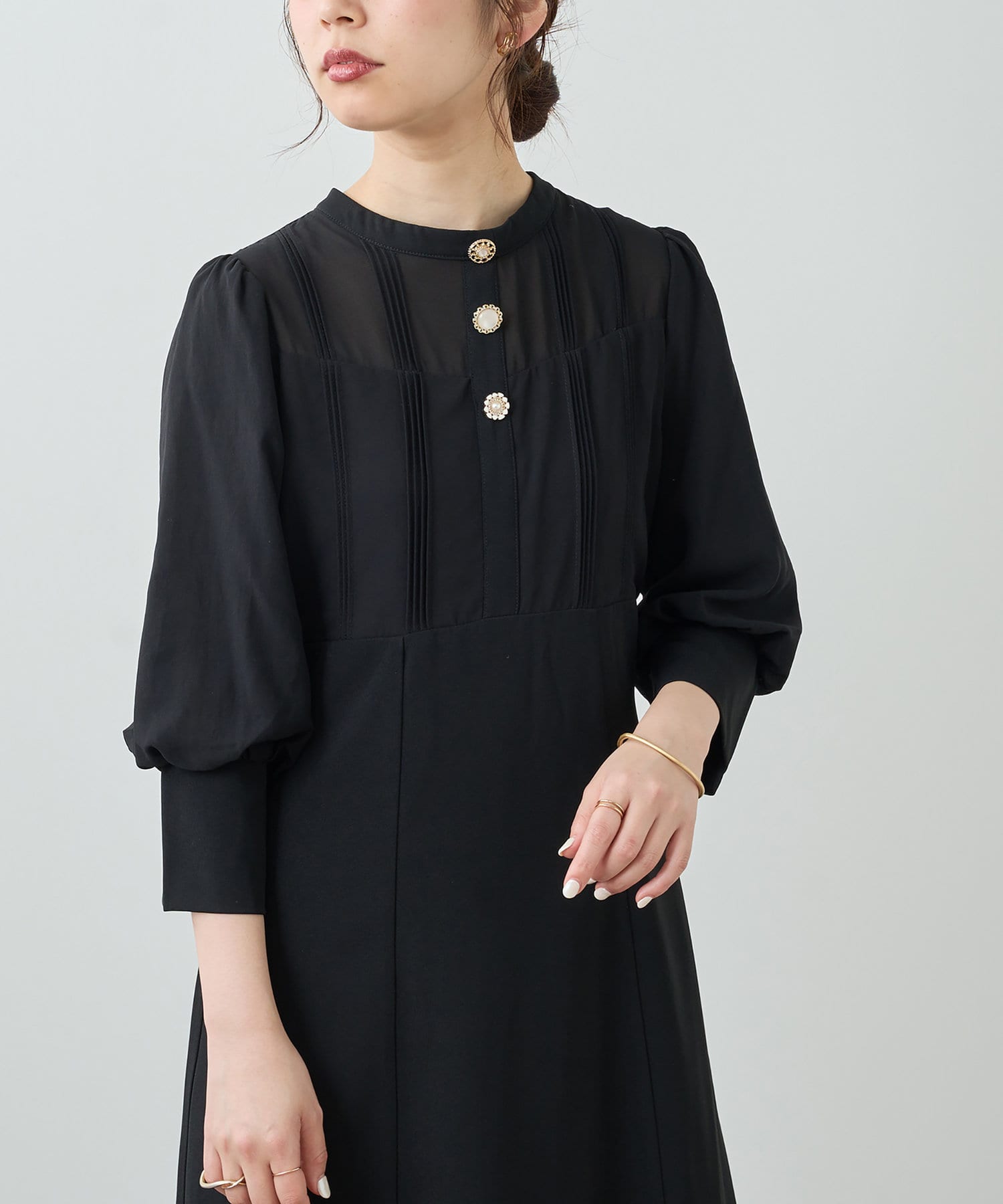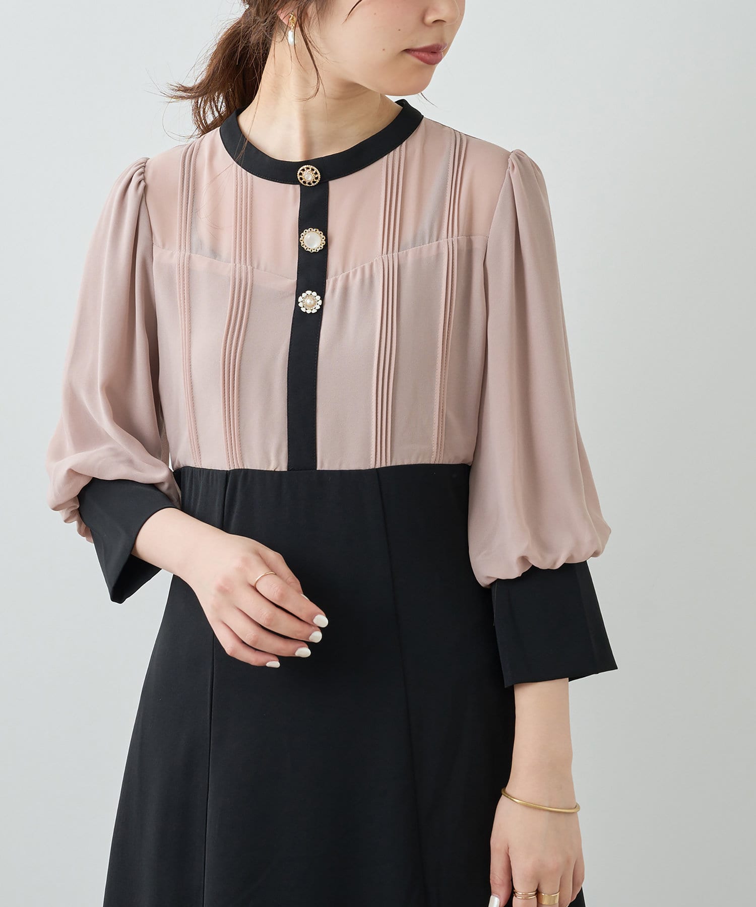 【WEB限定】パーティーシーンで映える ビジュー釦異素材バルーン袖ワンピース