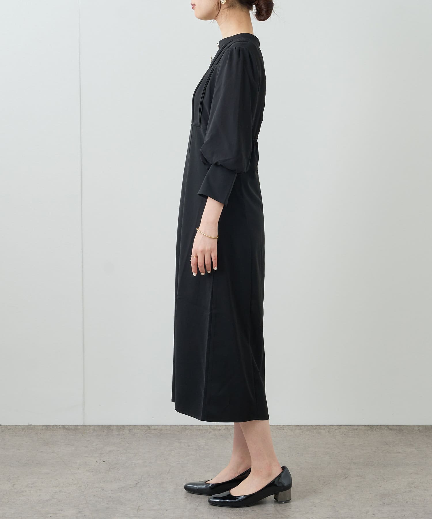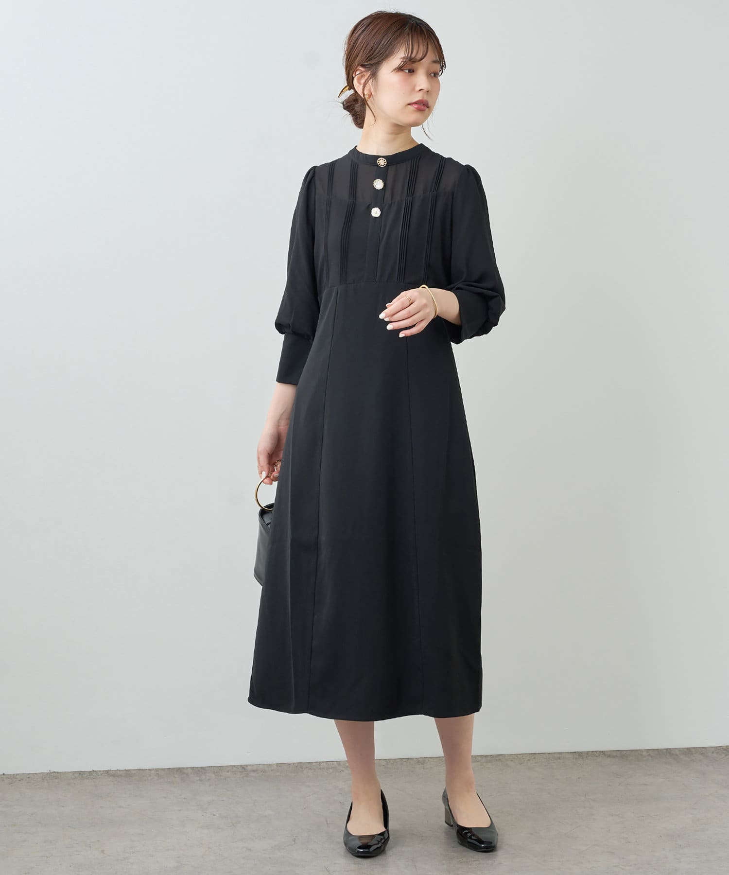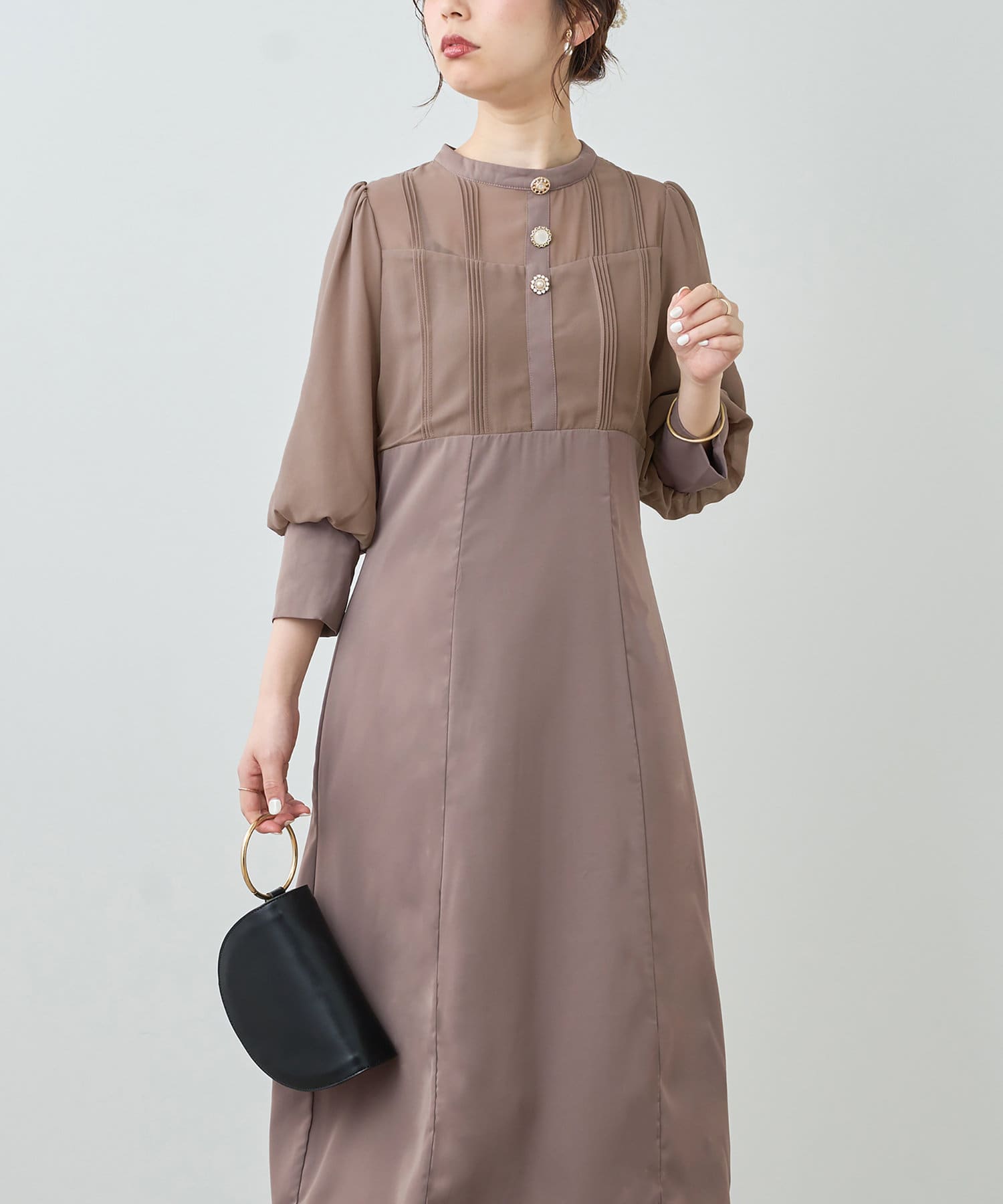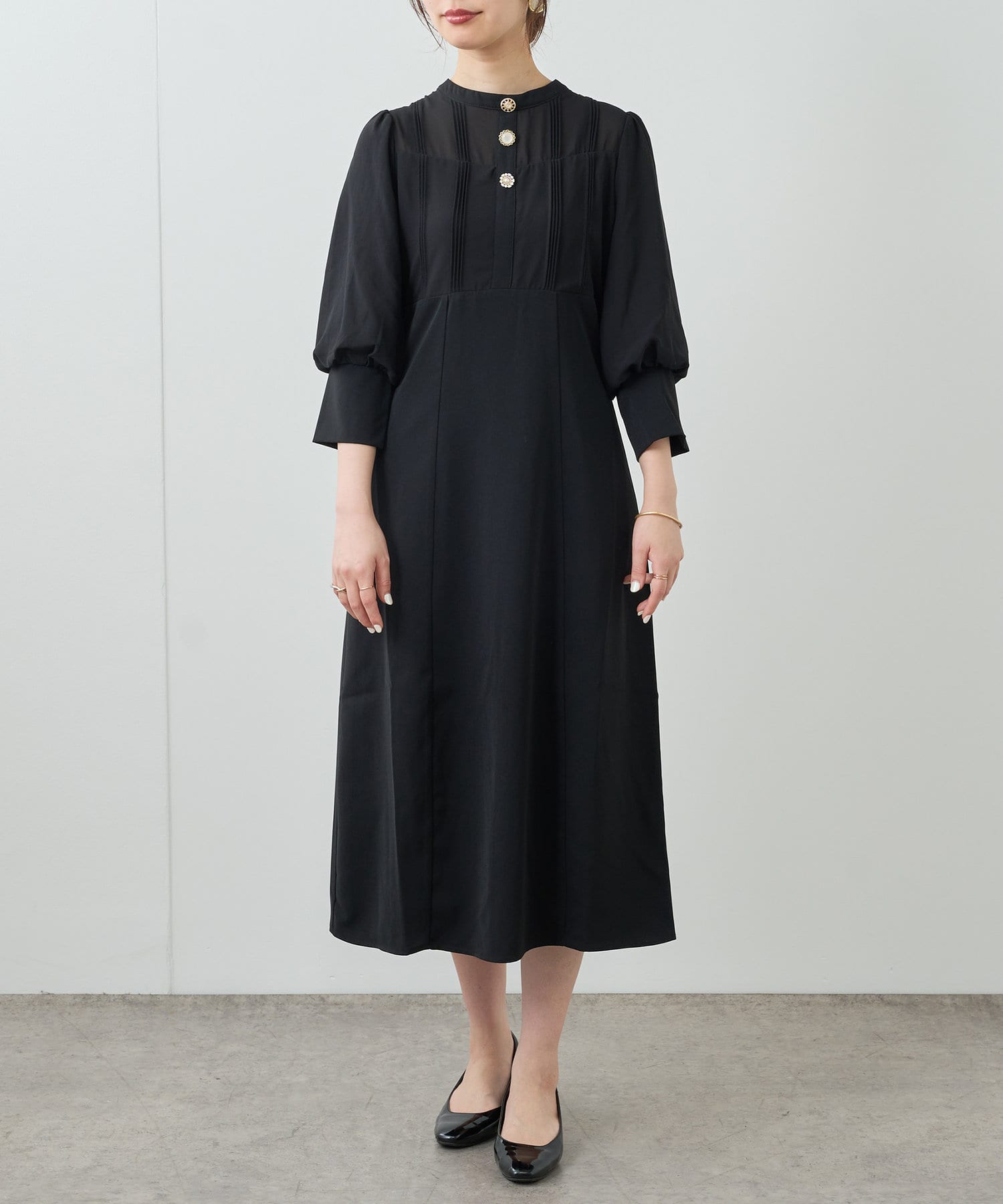 【WEB限定】パーティーシーンで映える ビジュー釦異素材バルーン袖ワンピース