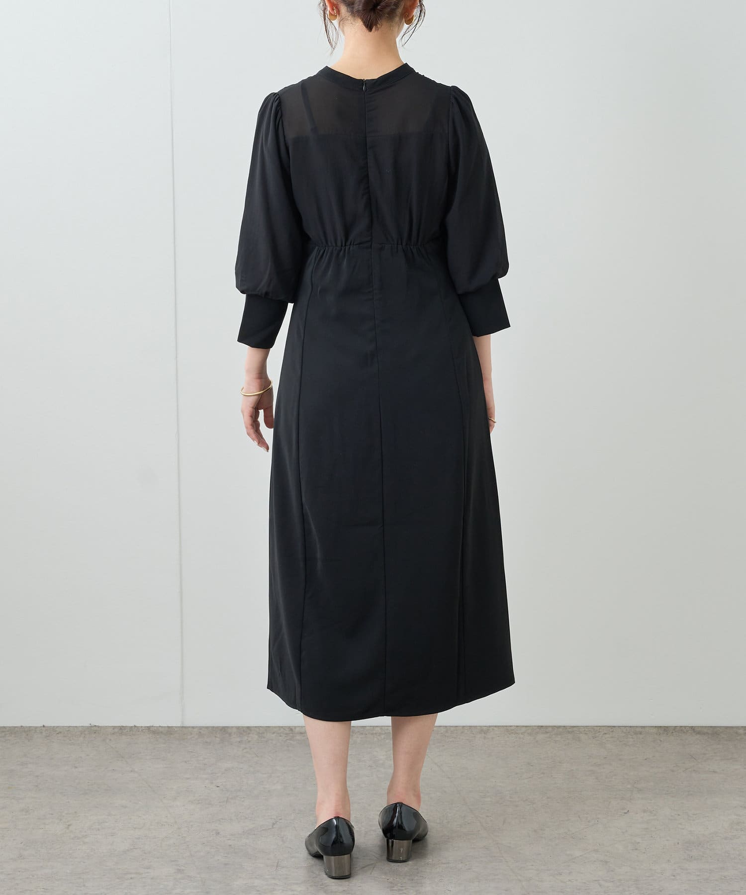 TOP > natural couture > レディース > ワンピース > ワンピース > 【WEB限定】パーティーシーンで映える ビジュー釦異素材バルーン袖ワンピース