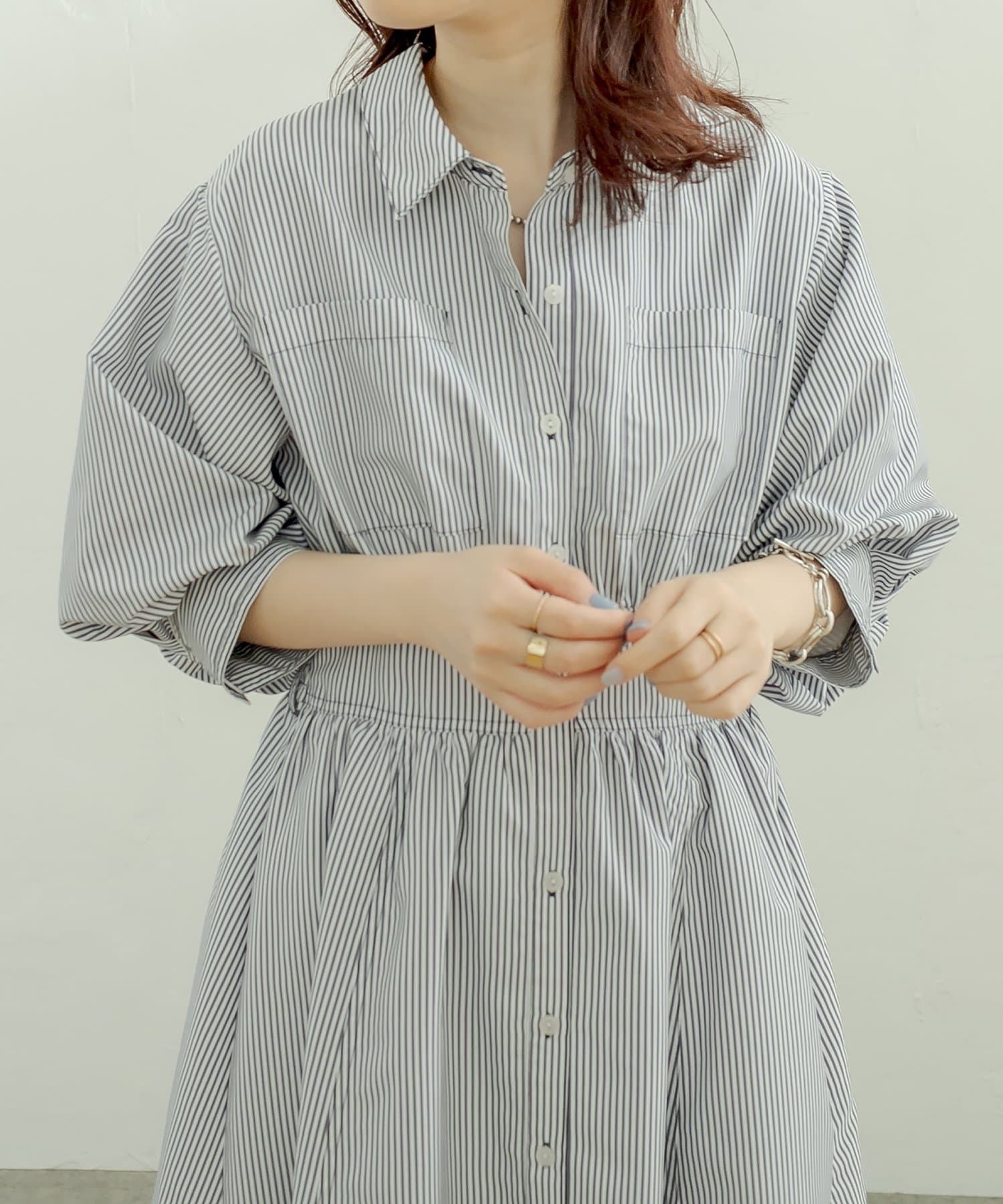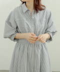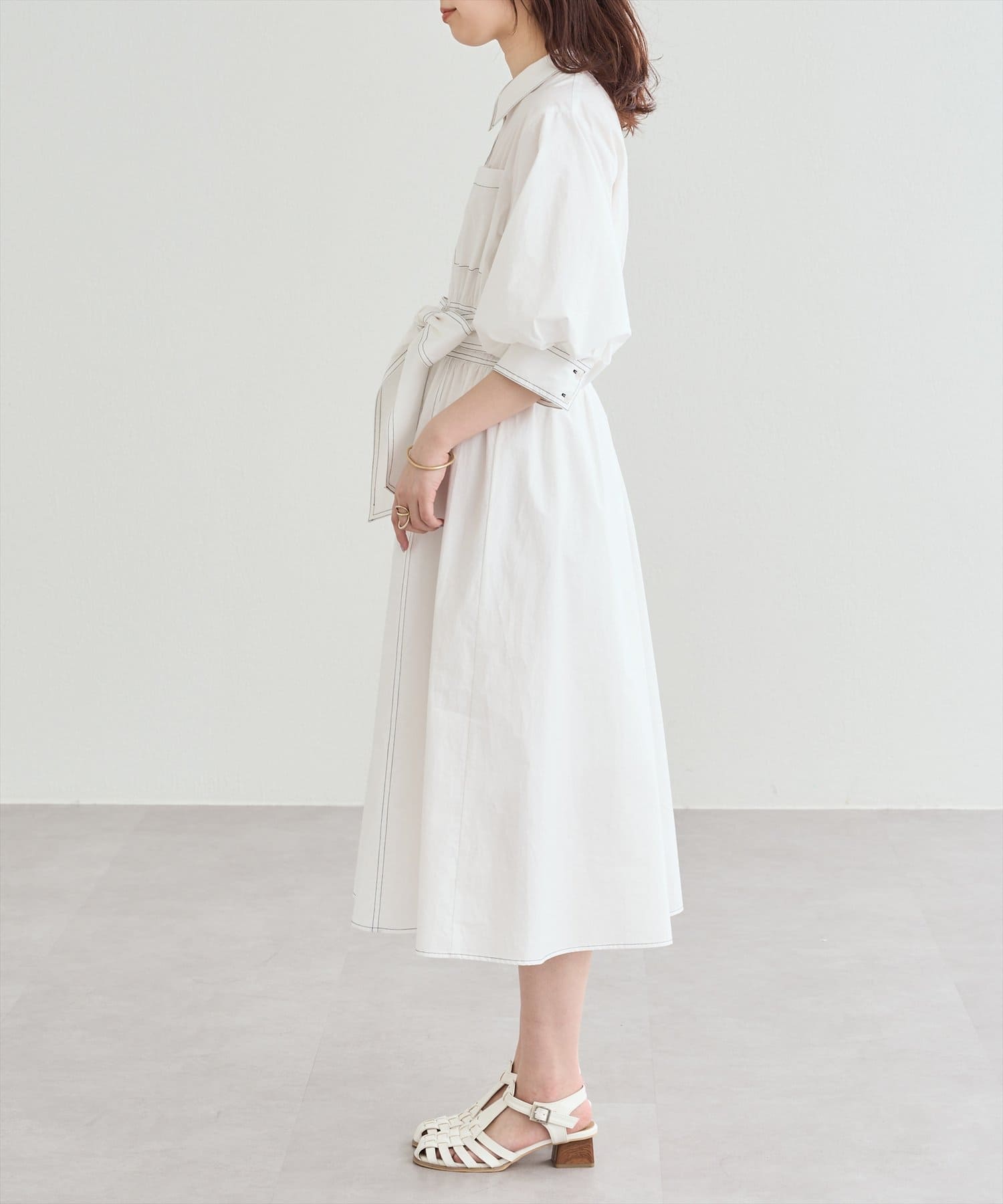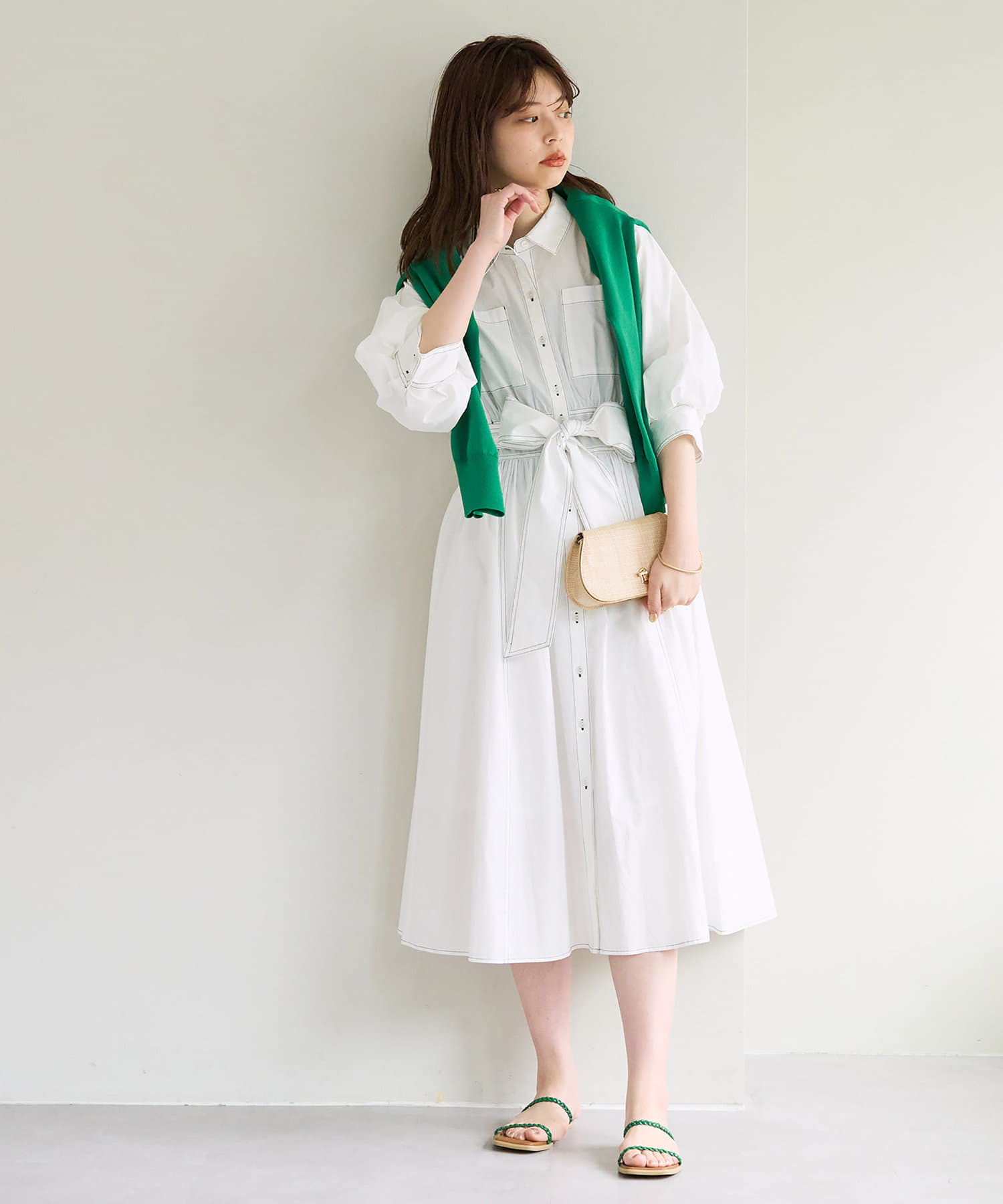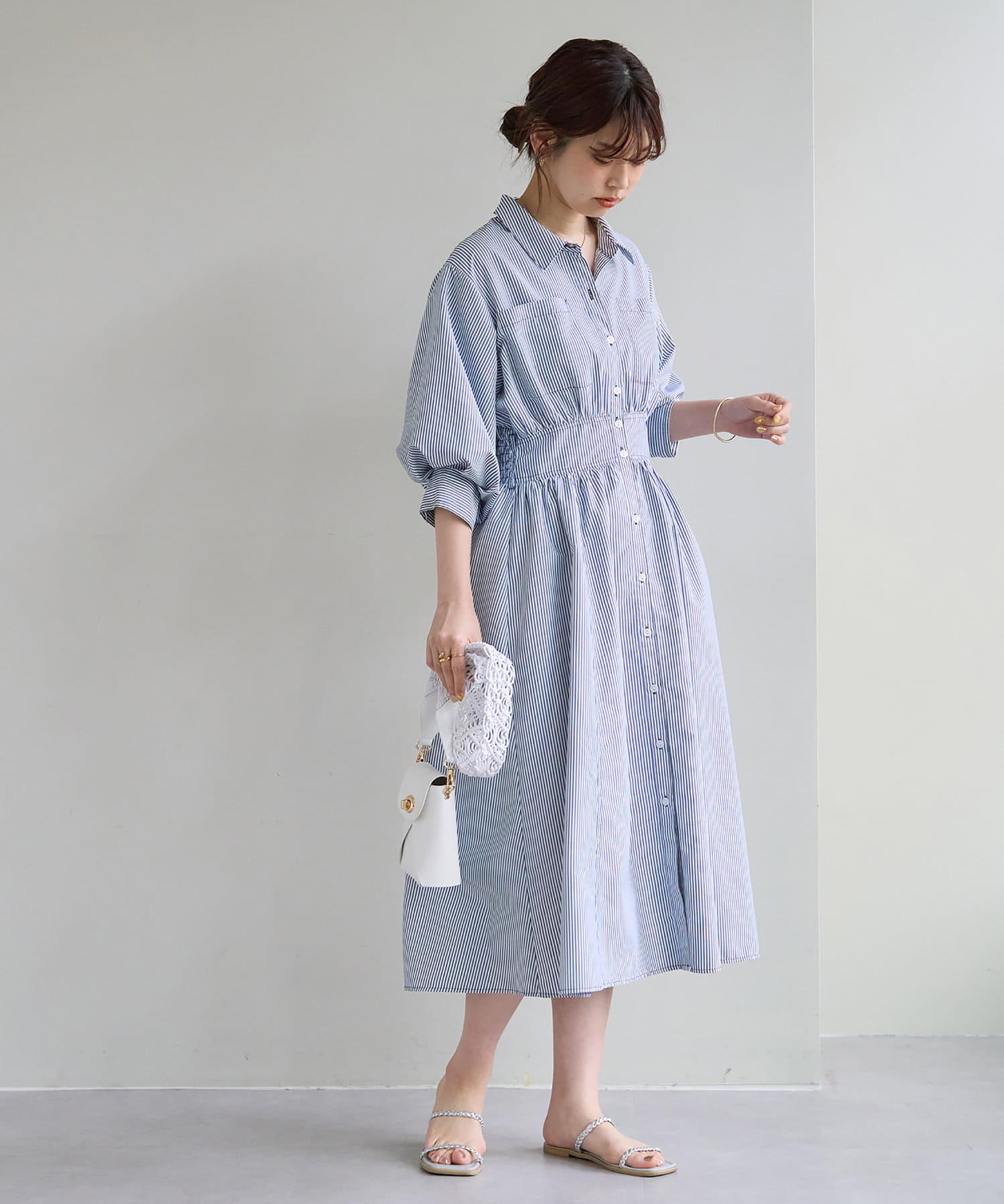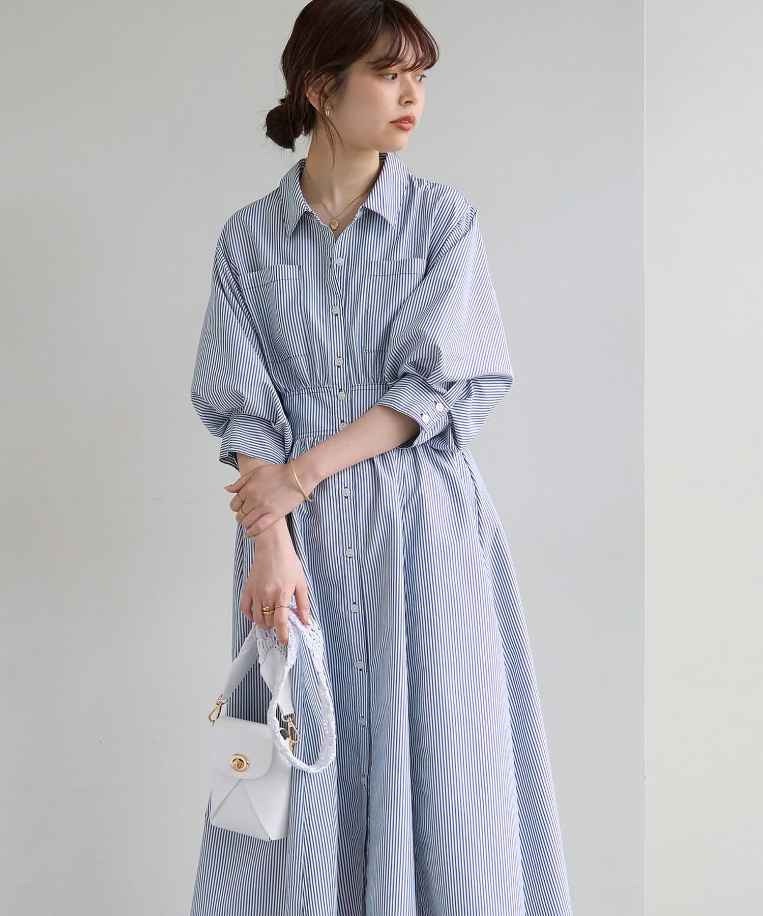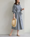 爽やかなシャツ地を使用して仕立てたワンピースです。