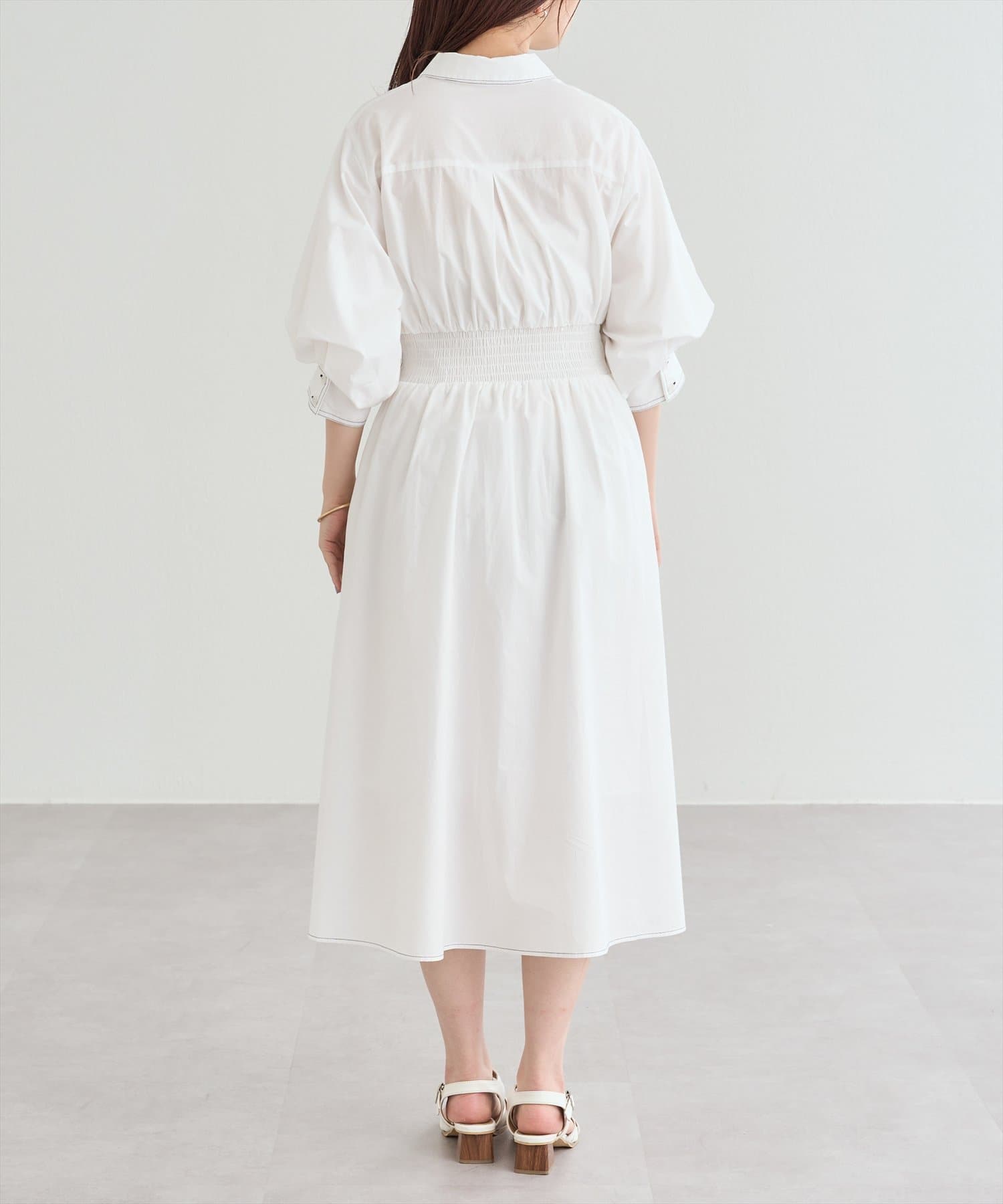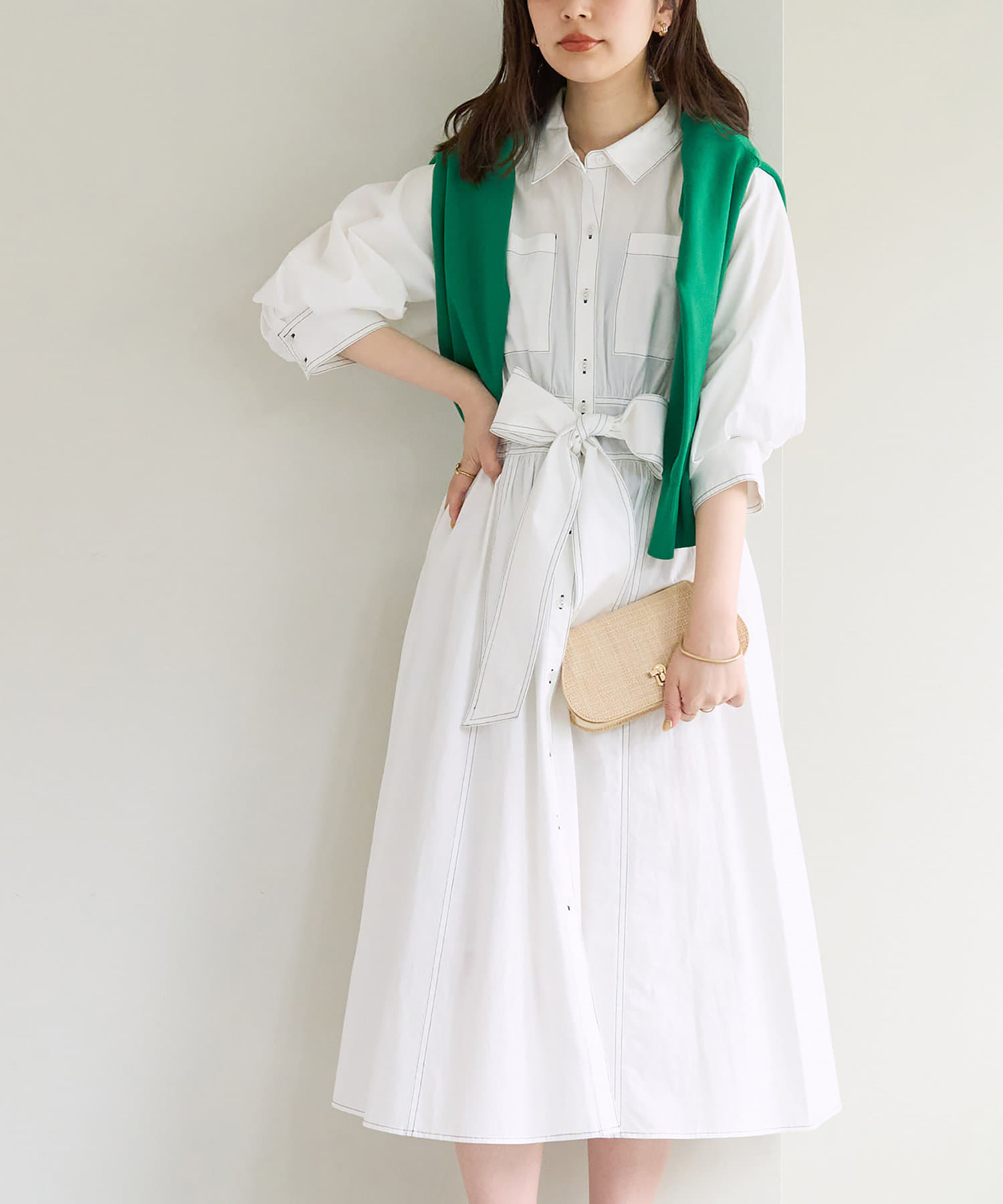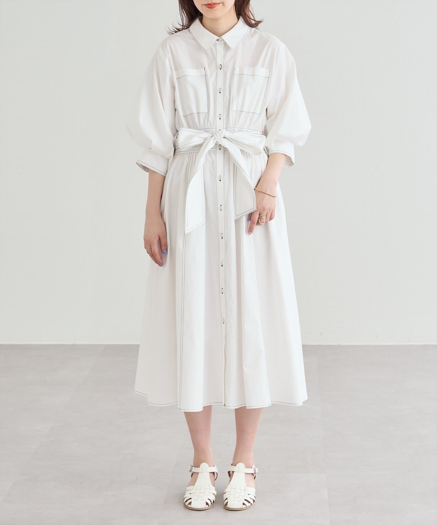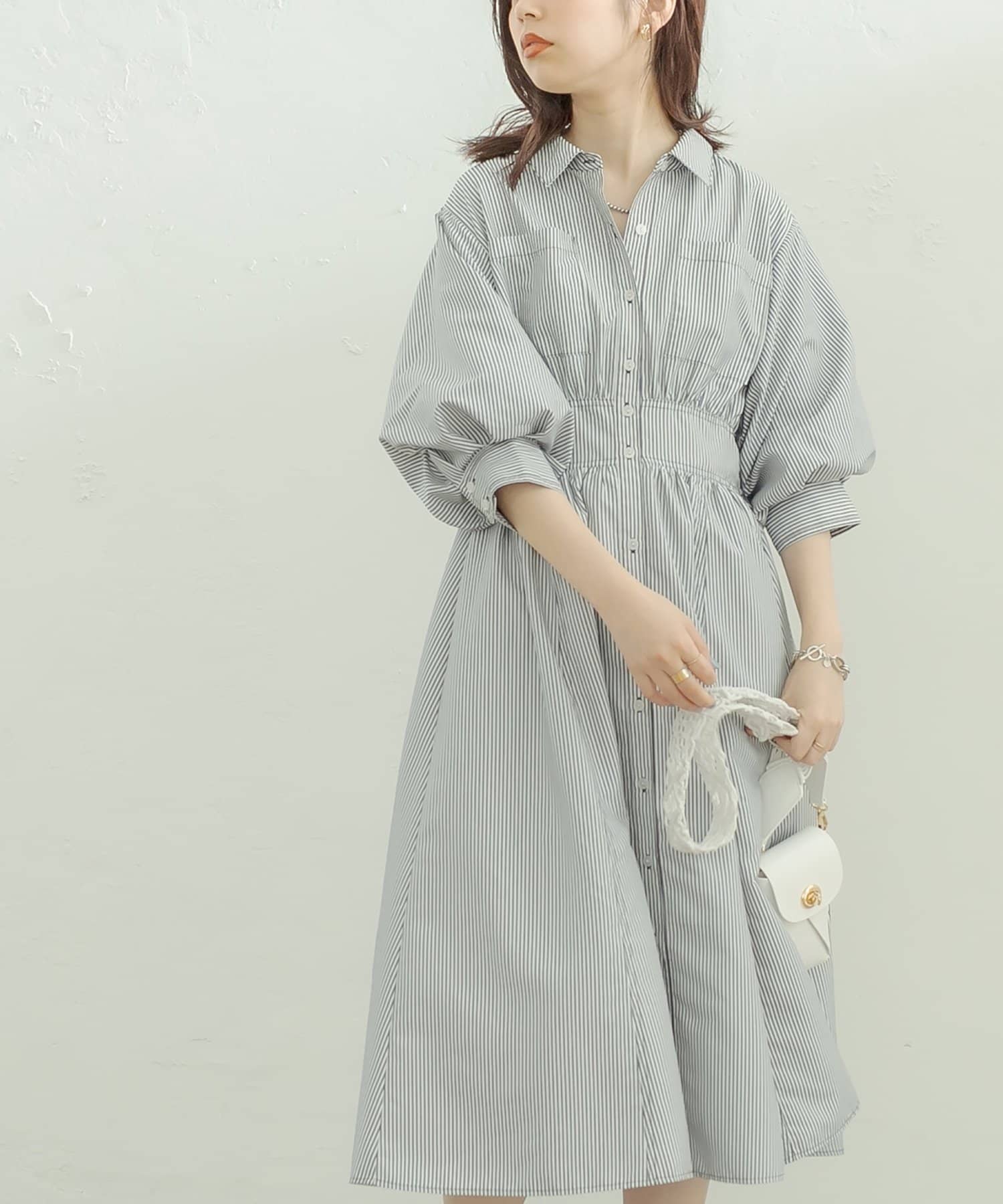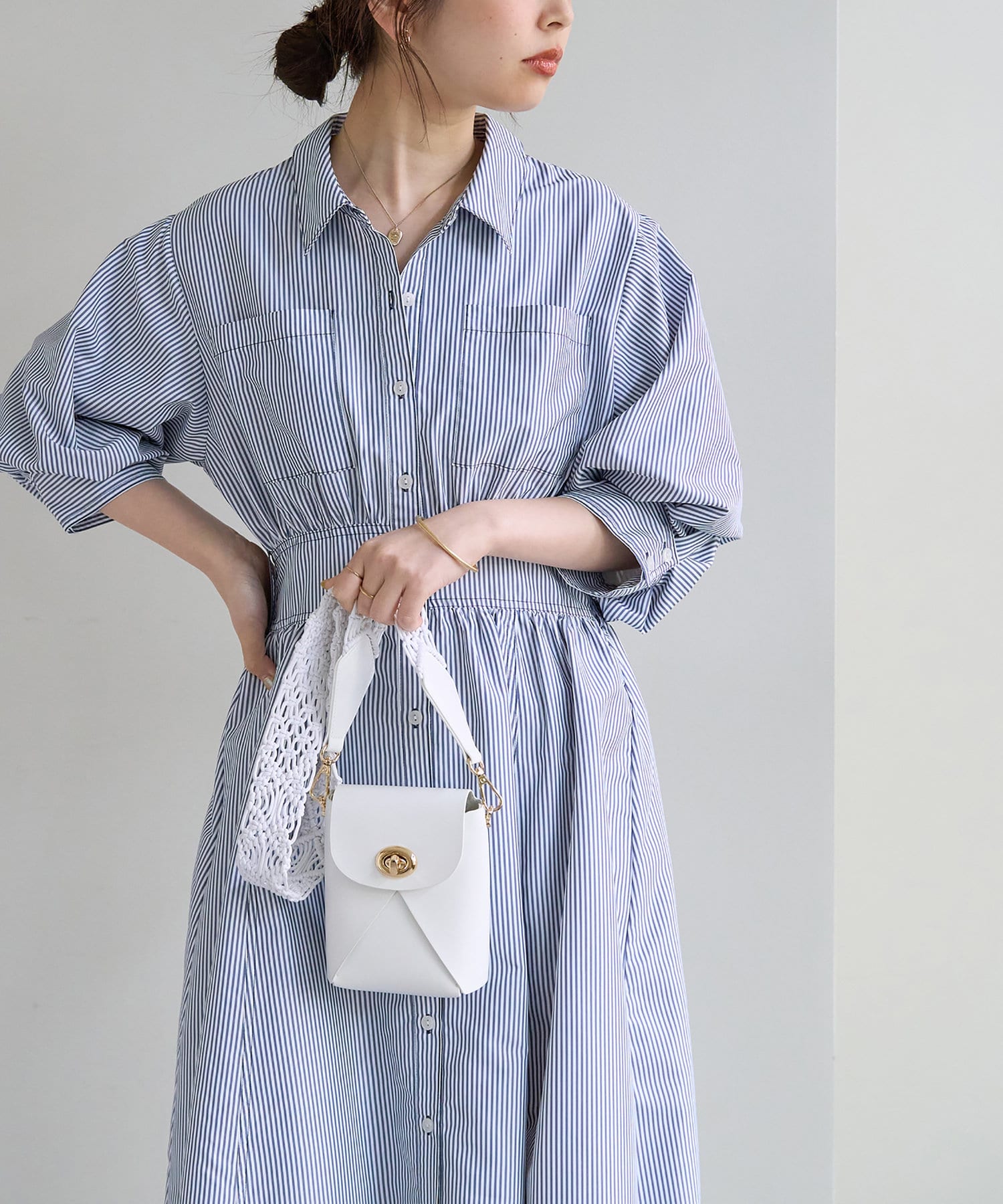 爽やかなシャツ地を使用して仕立てたワンピースです。
