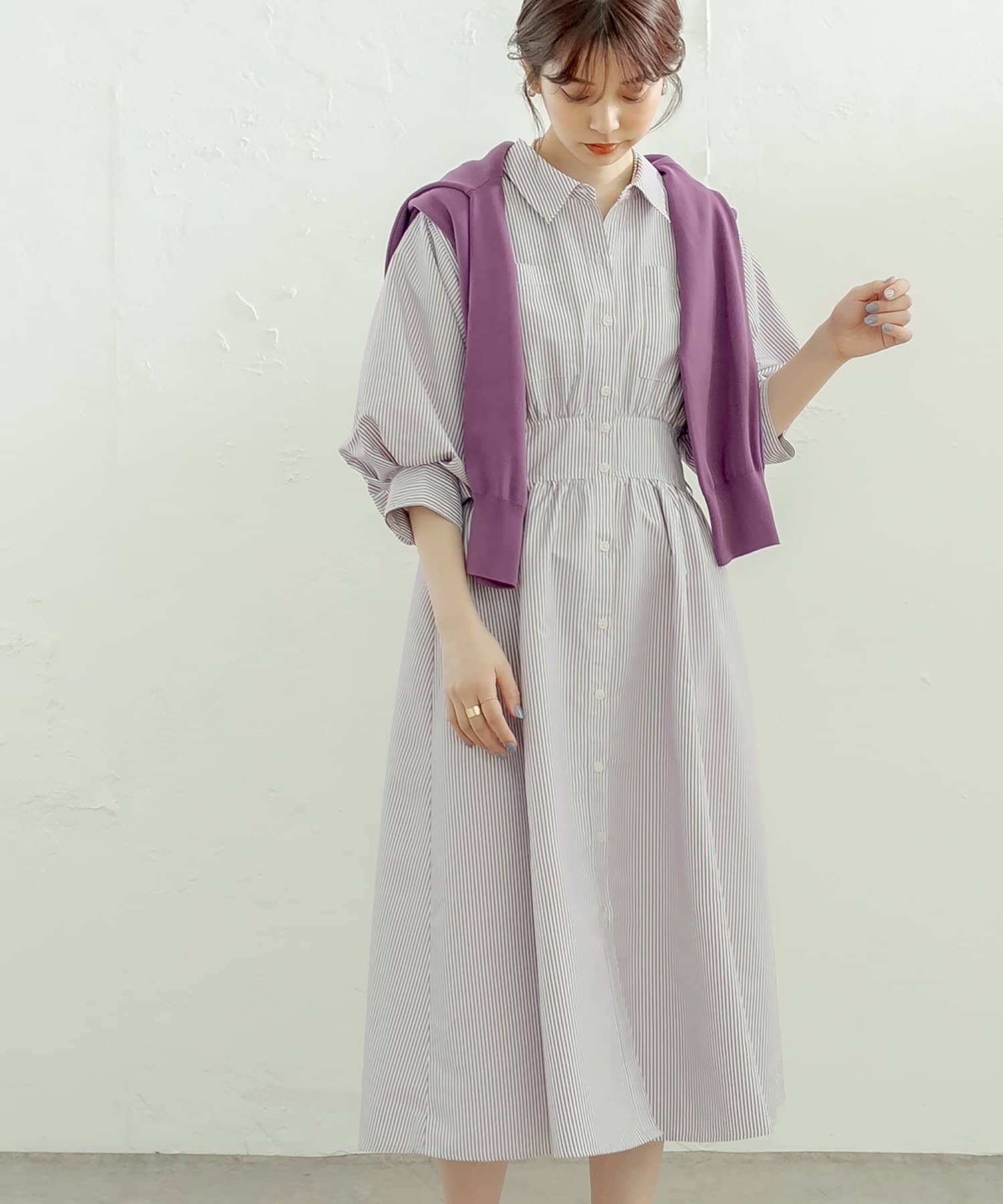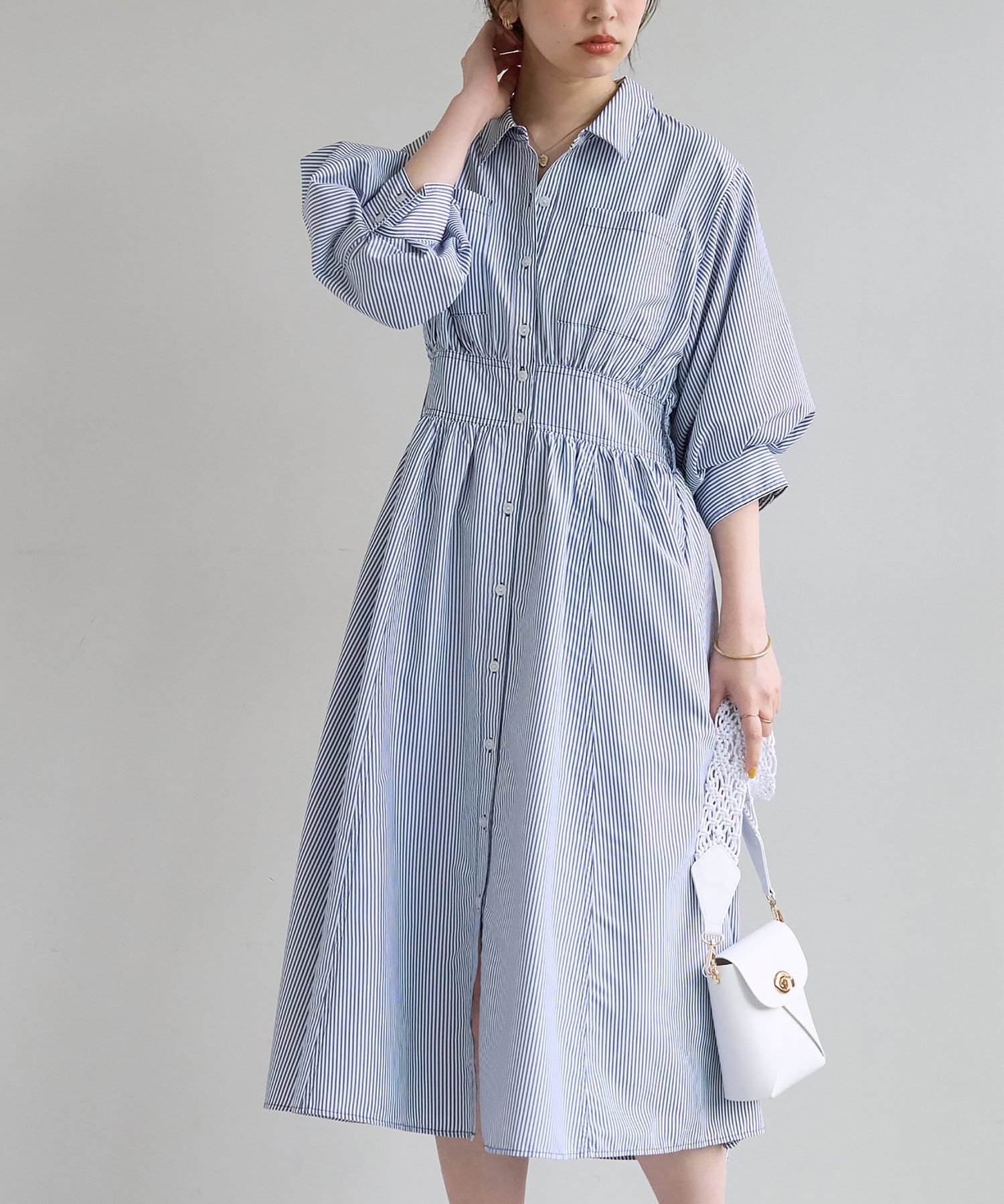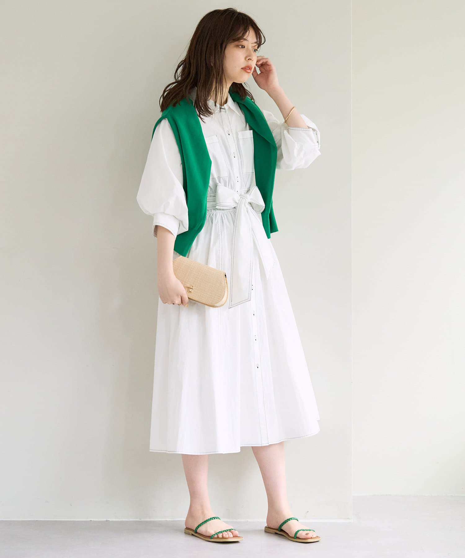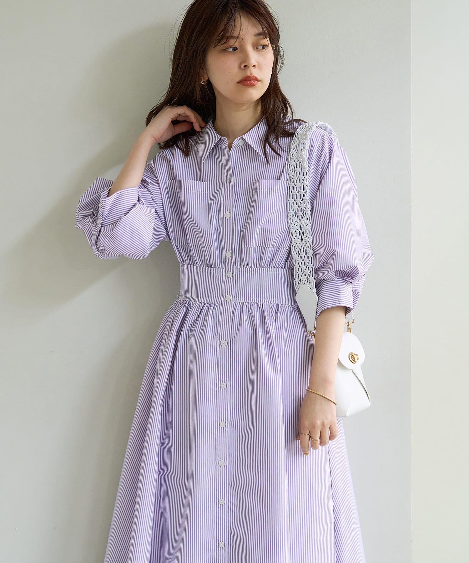 爽やかなシャツ地を使用して仕立てたワンピースです。