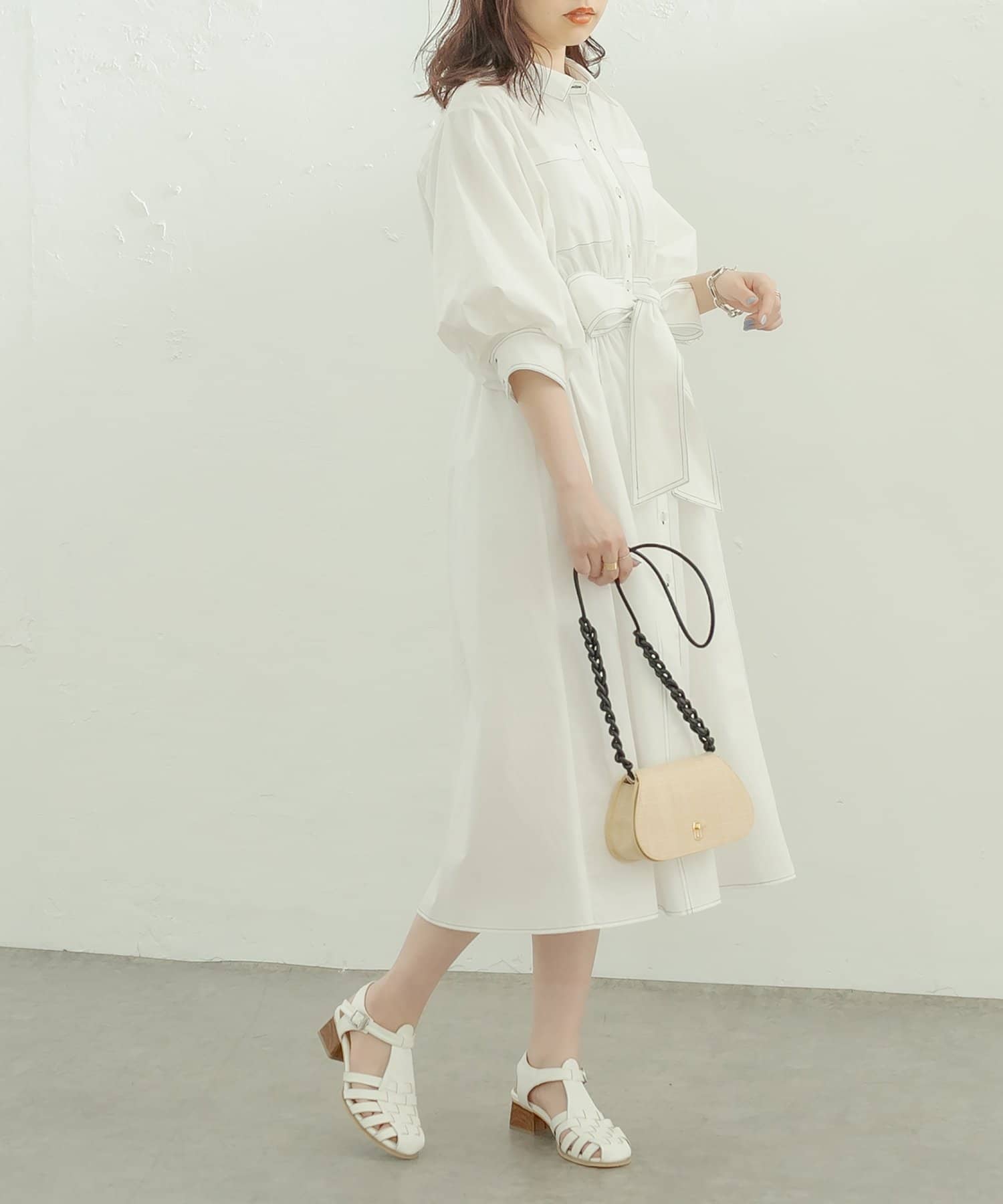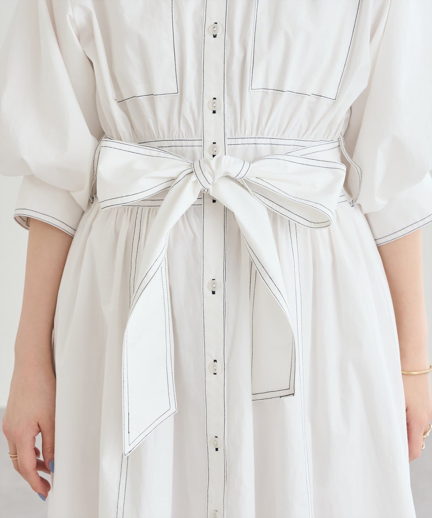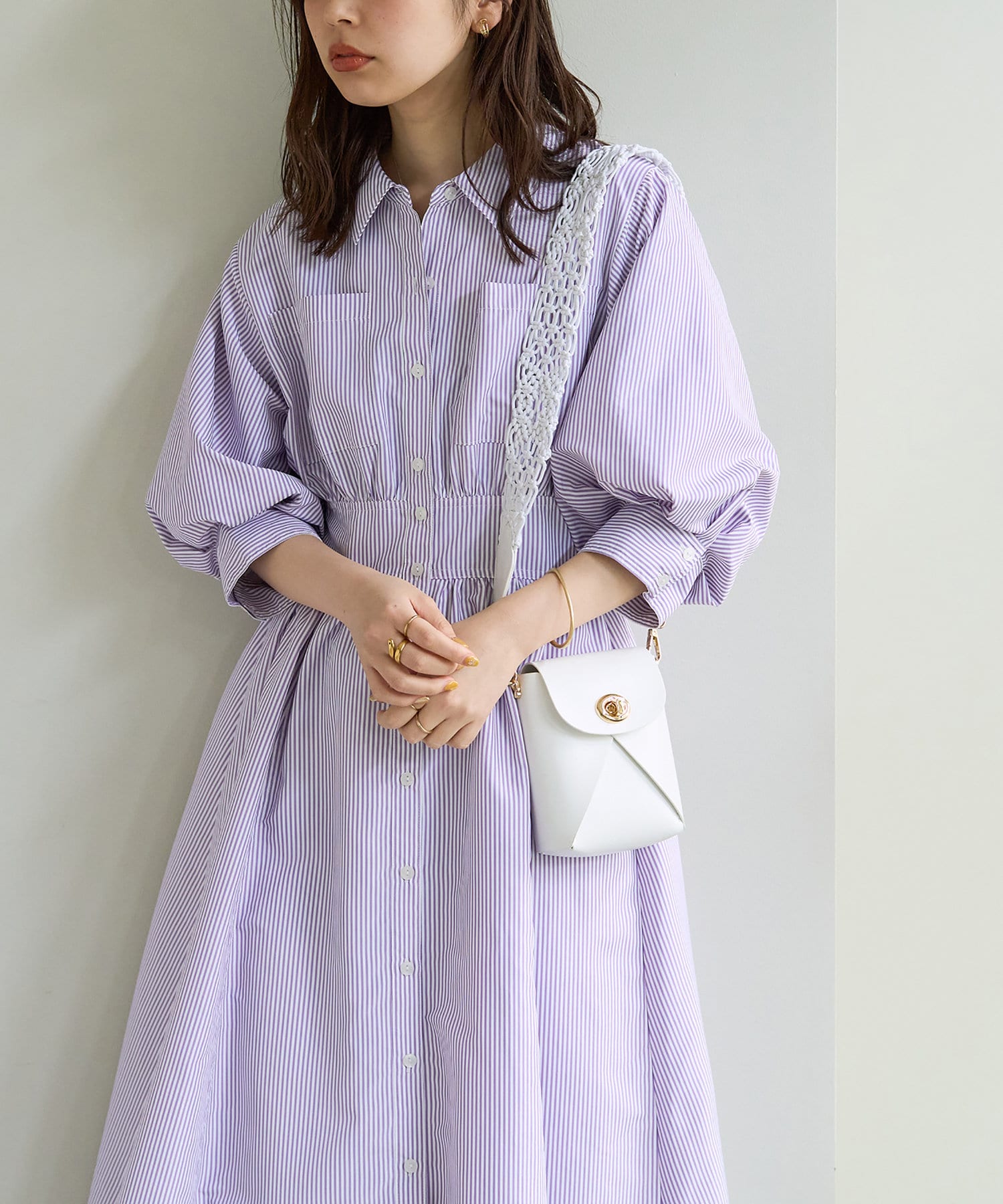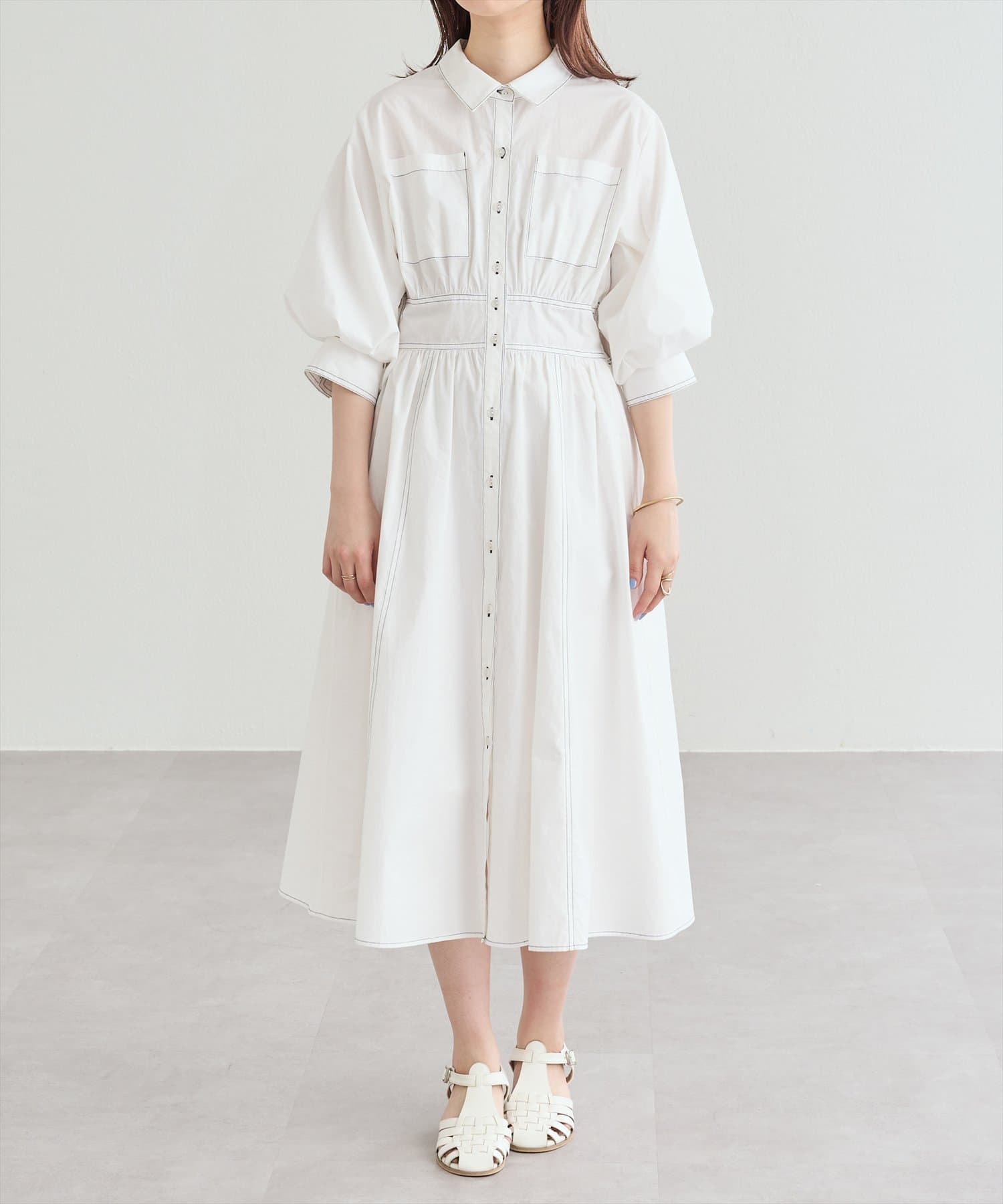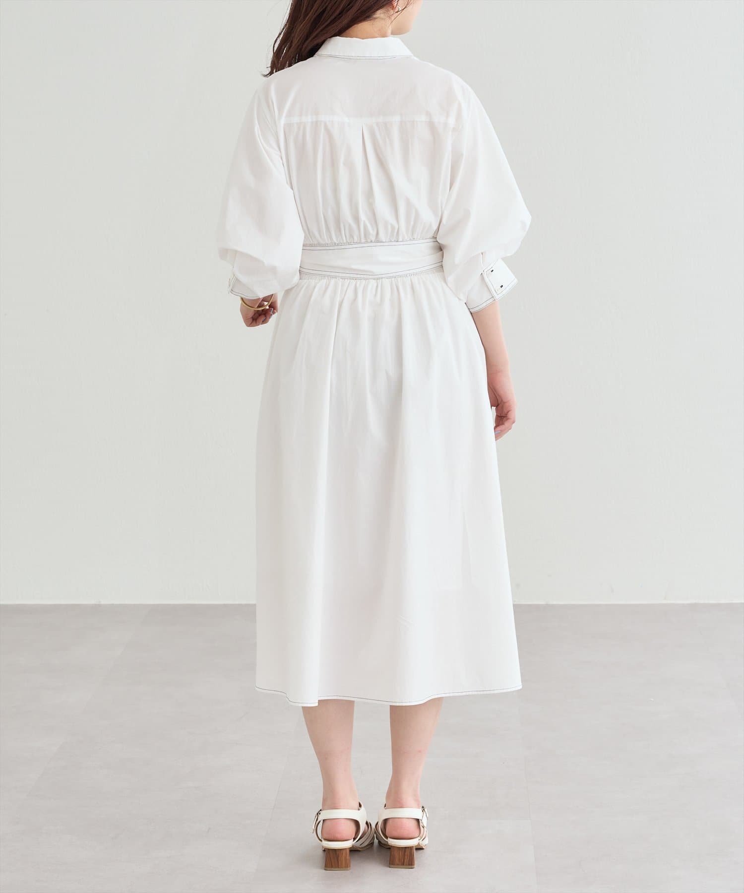 爽やかなシャツ地を使用して仕立てたワンピースです。