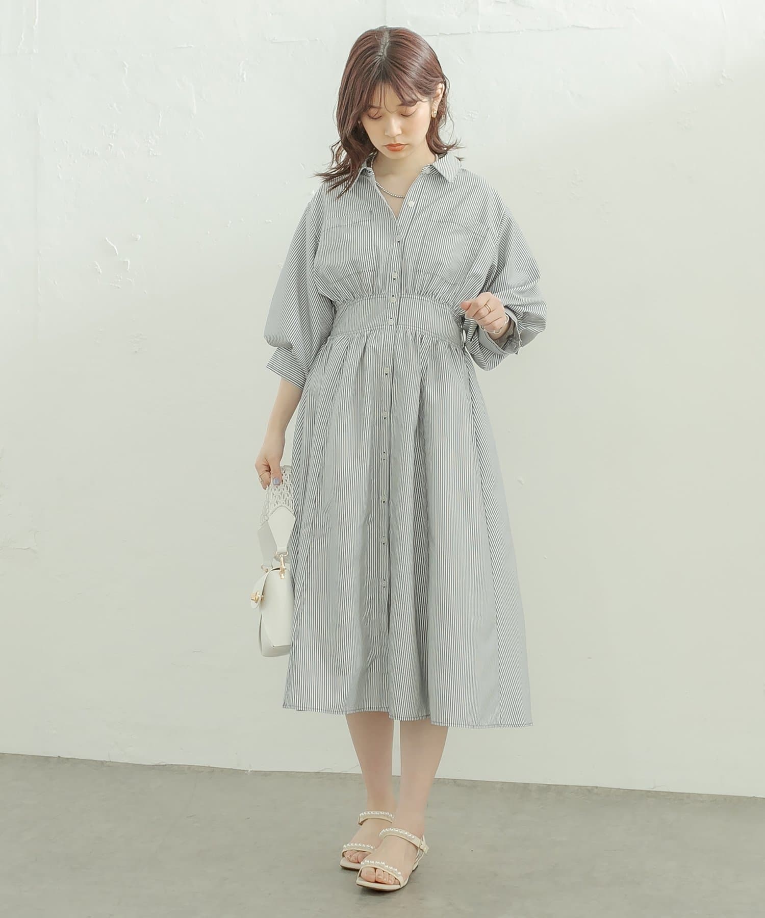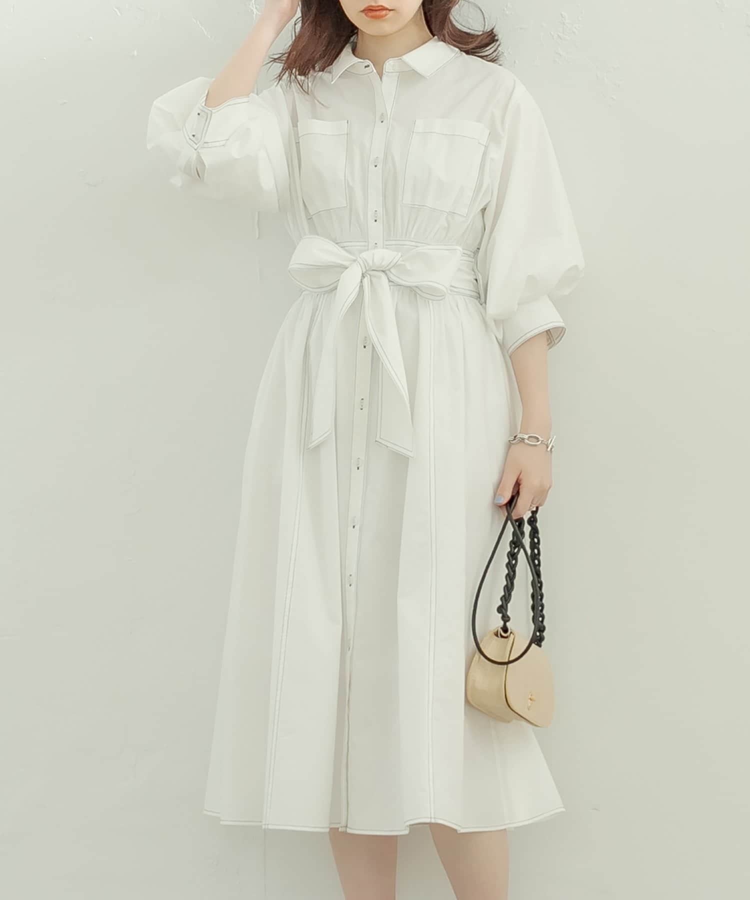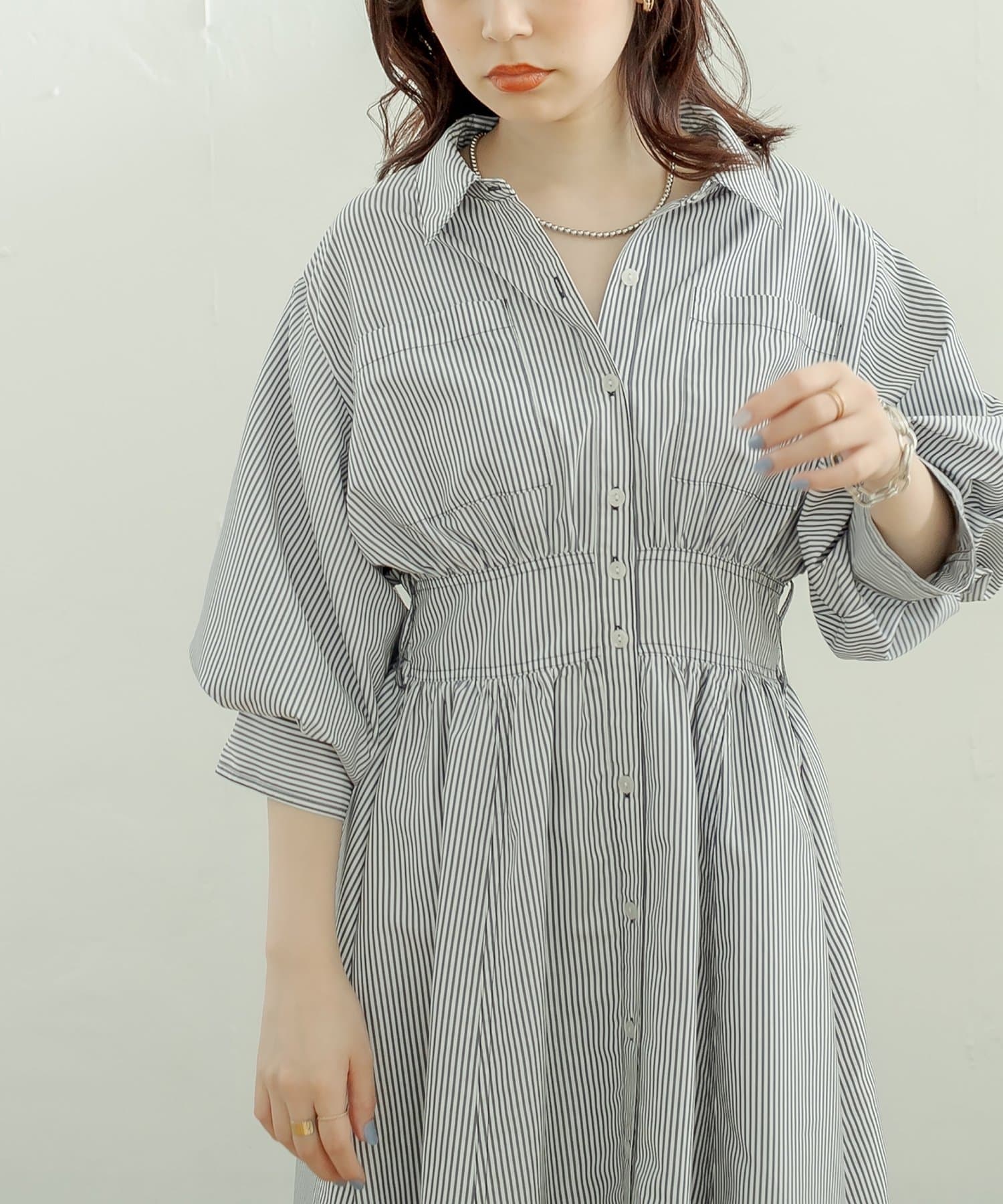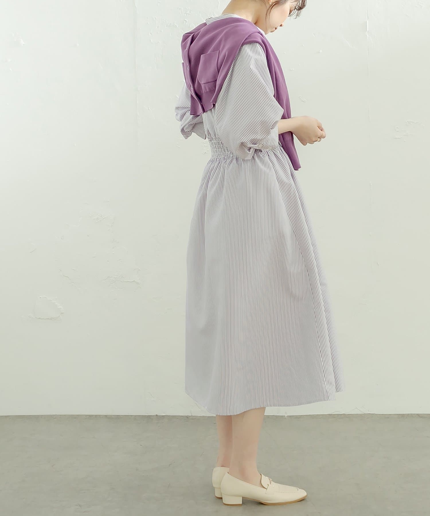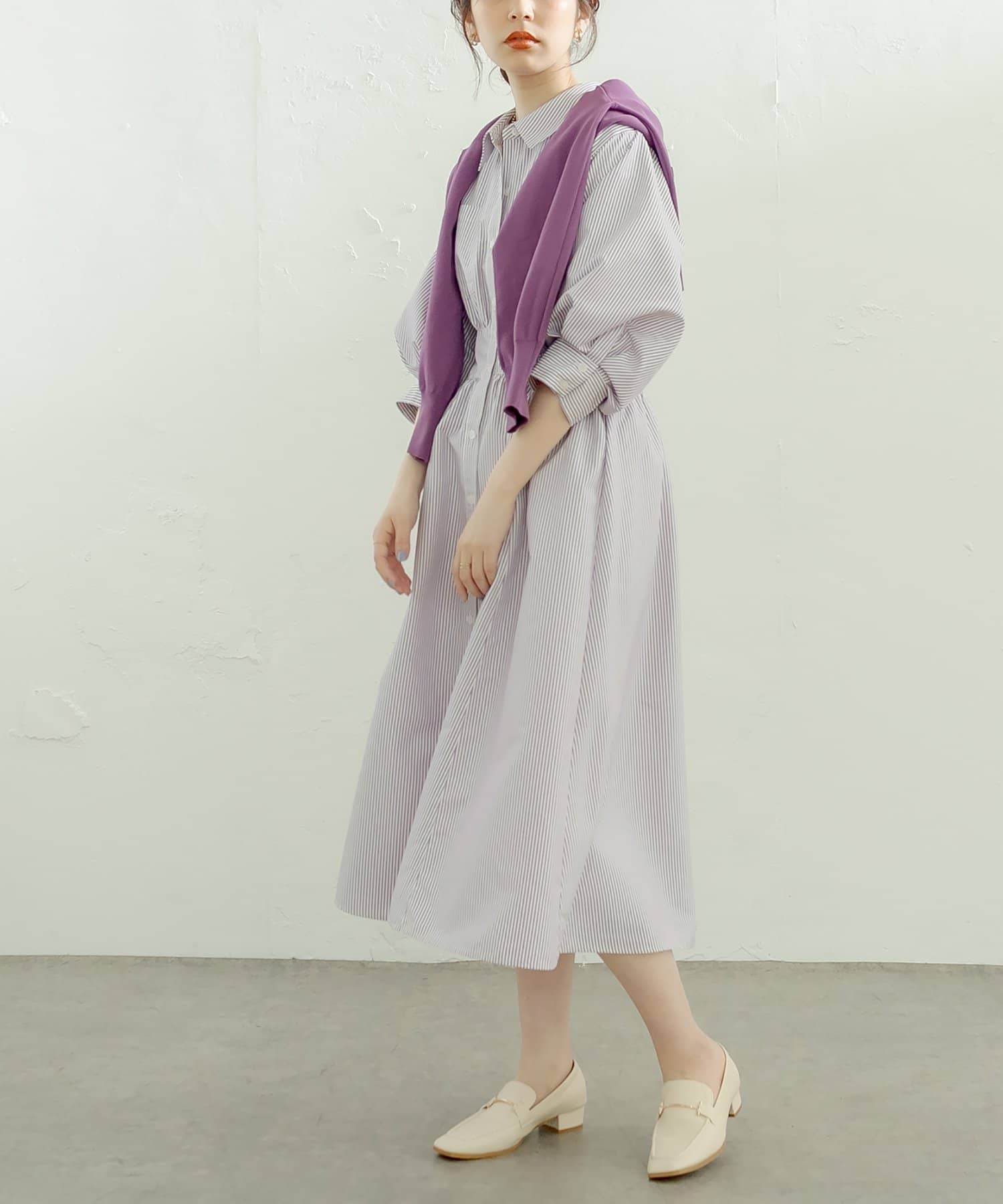 爽やかなシャツ地を使用して仕立てたワンピースです。