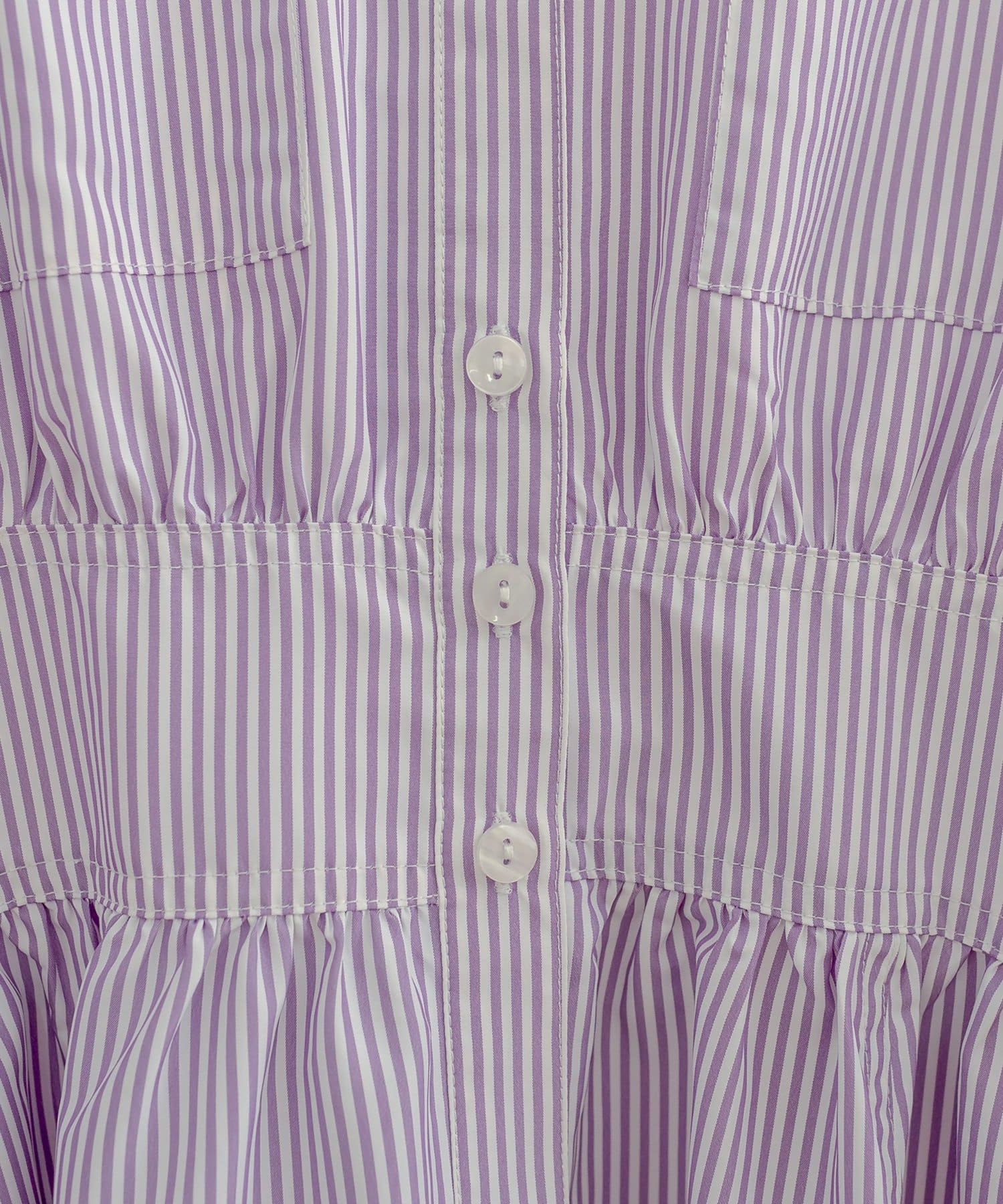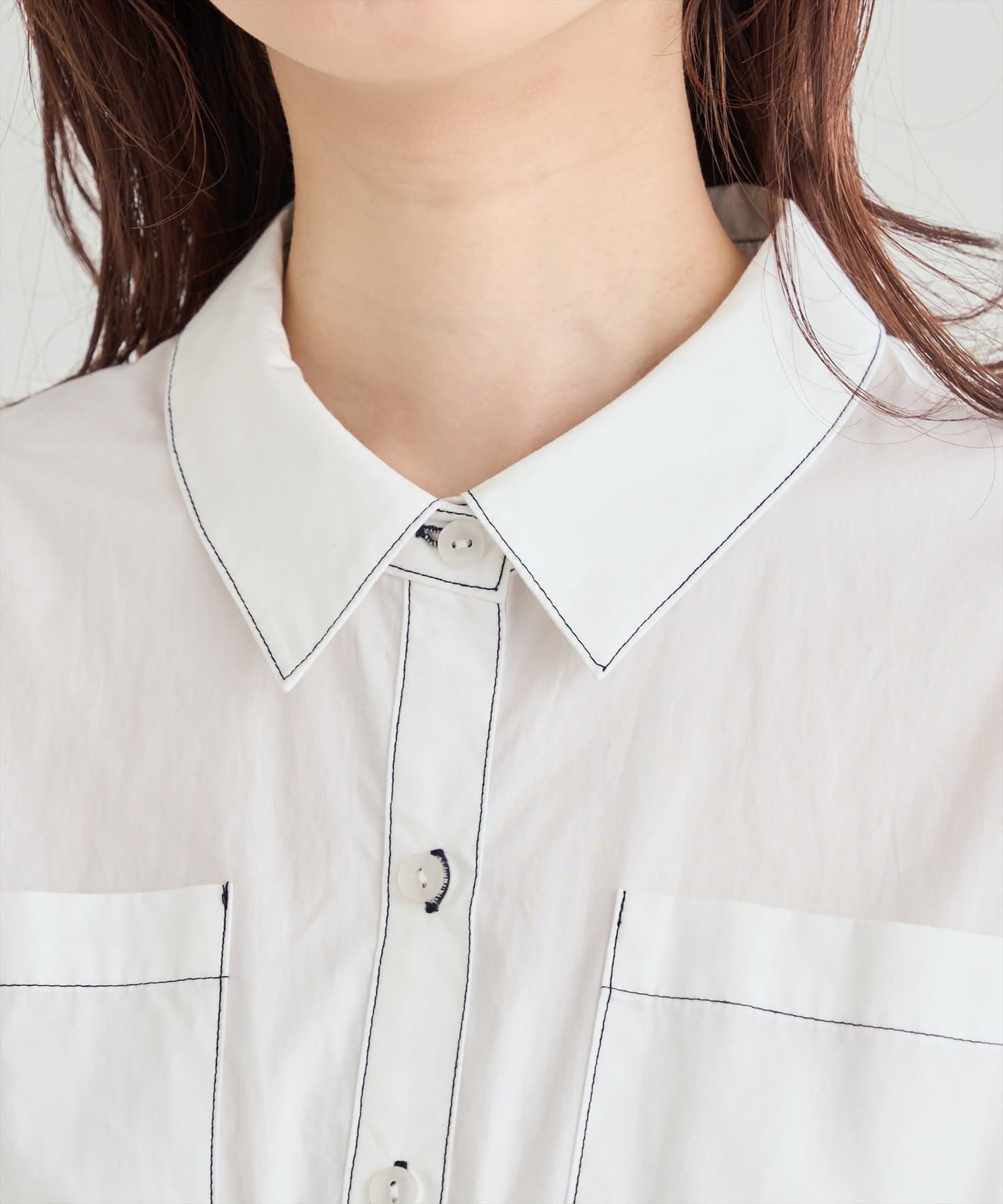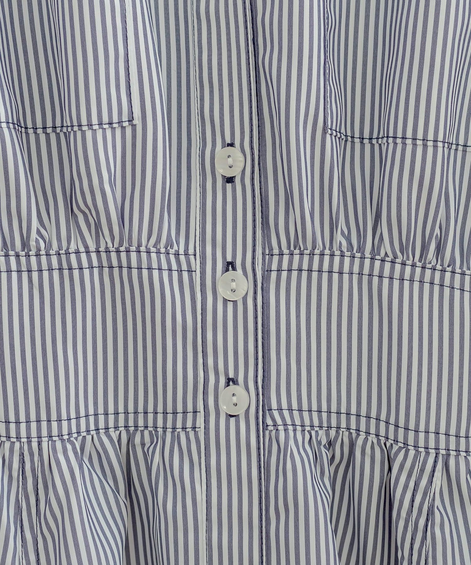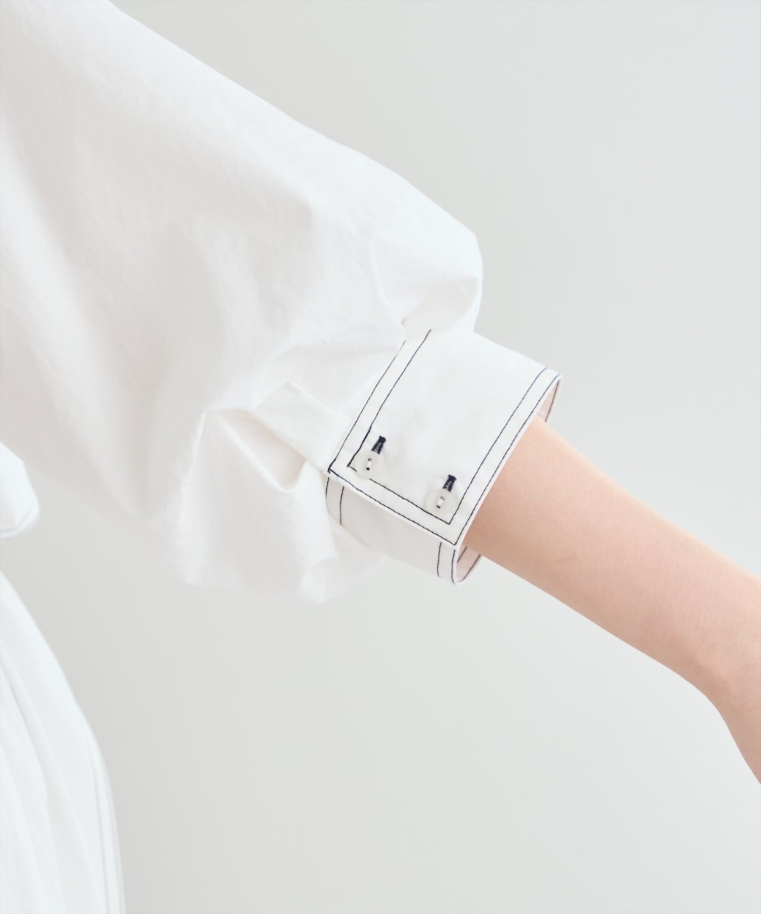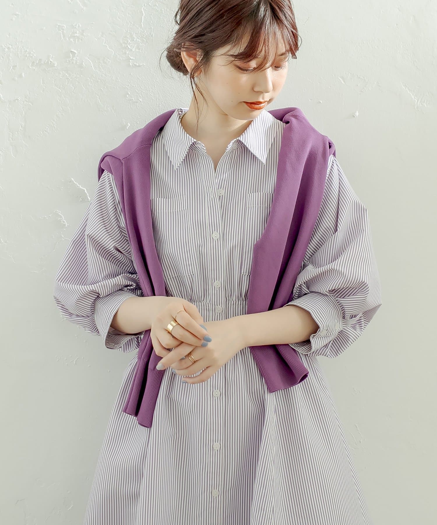 爽やかなシャツ地を使用して仕立てたワンピースです。