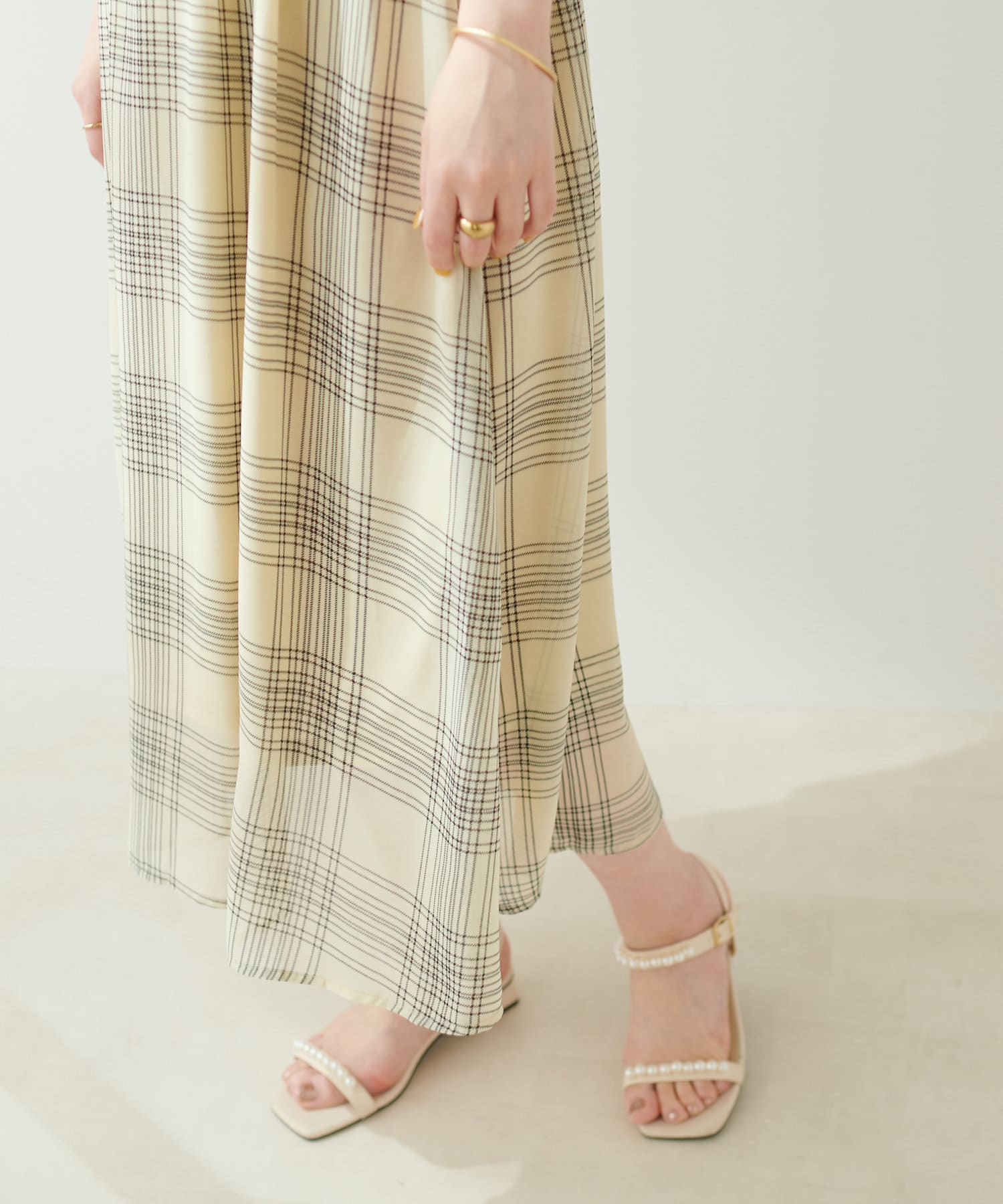 足元はサンダルやミュール、フラットシューズなどを合わせると、上品な大人レディスタイルに仕上がります。