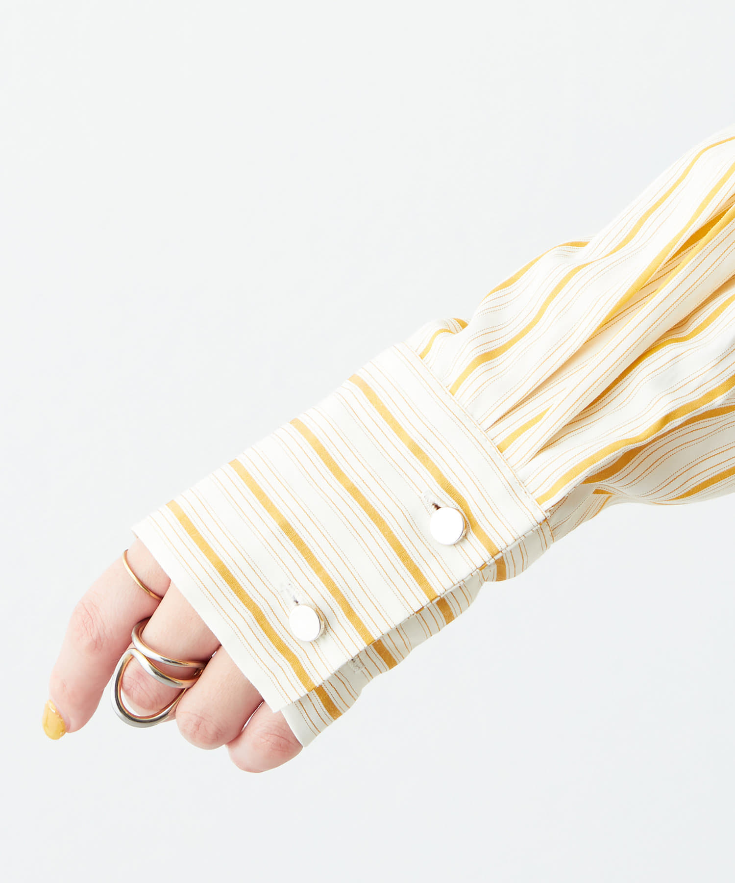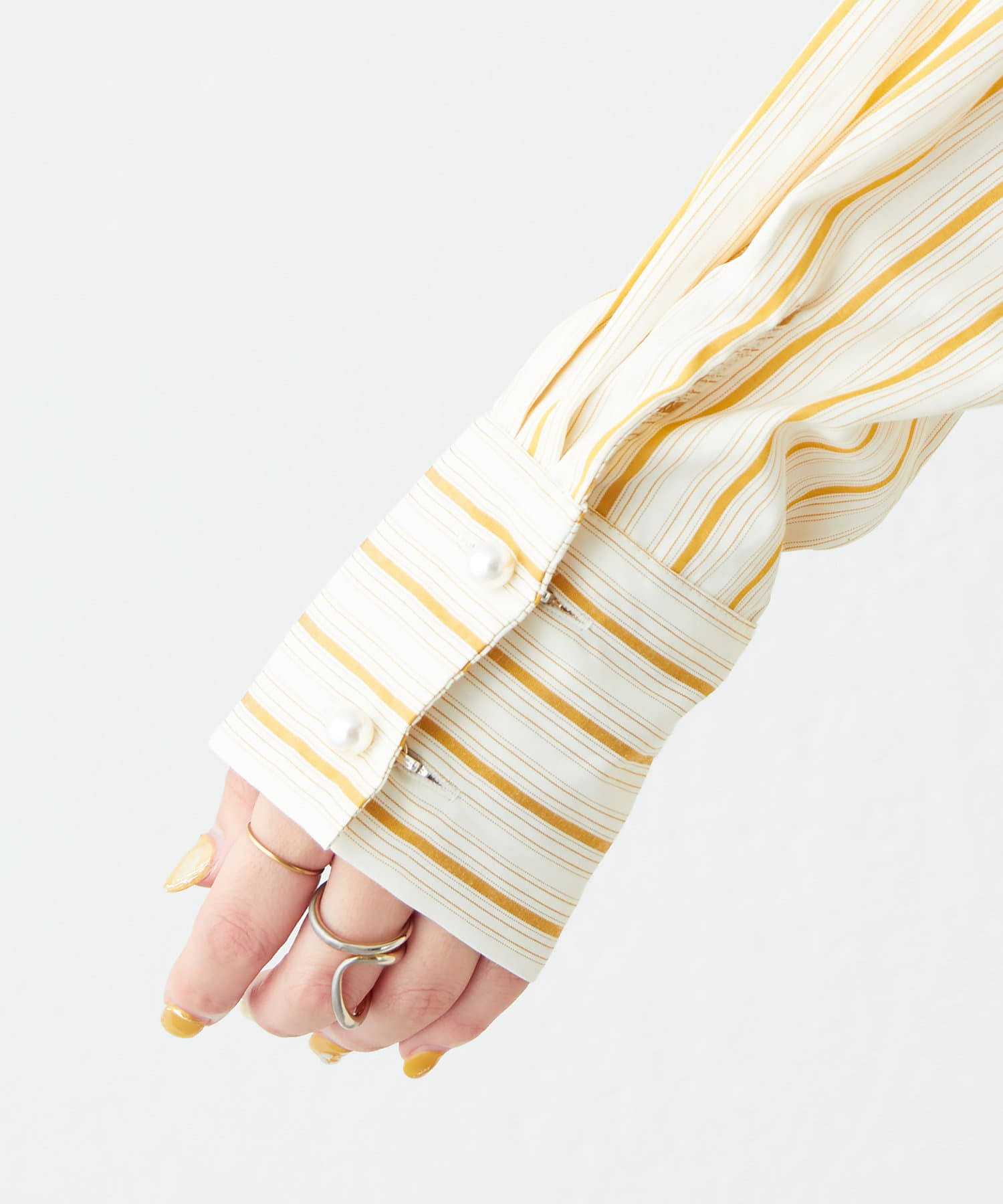 袖のカフス部分のボタンはパール釦と金ボタンの2WAYスタイルになっており、お好きなデザインで楽しめます。