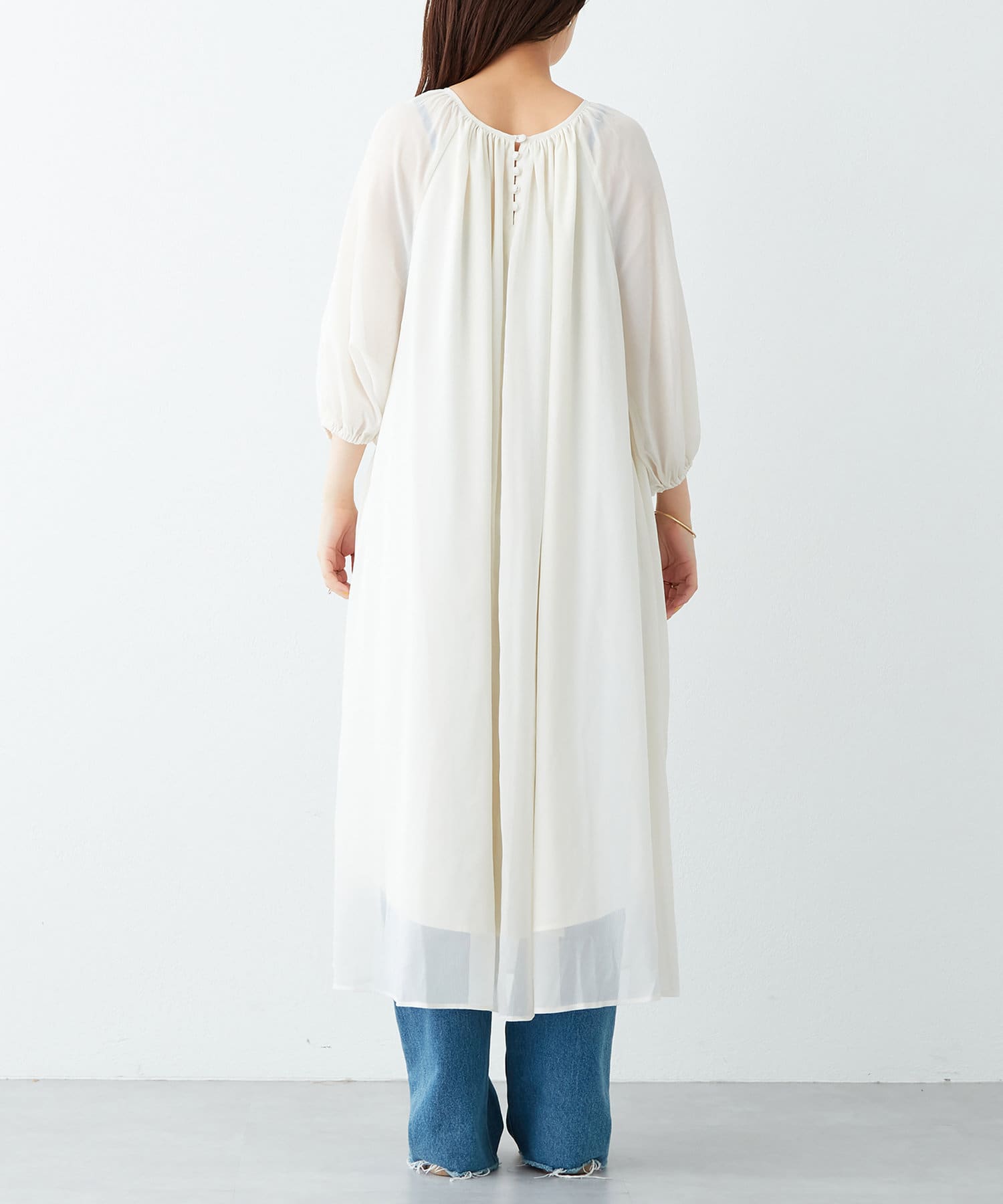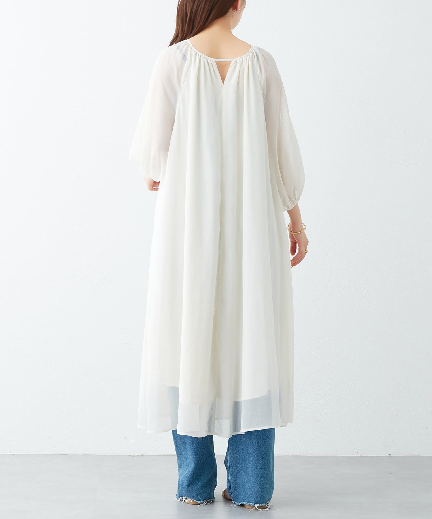 ゆとりの身頃や袖のディテールが、気になる身体のラインを拾わず、ストレスフリーでお召し頂けます。