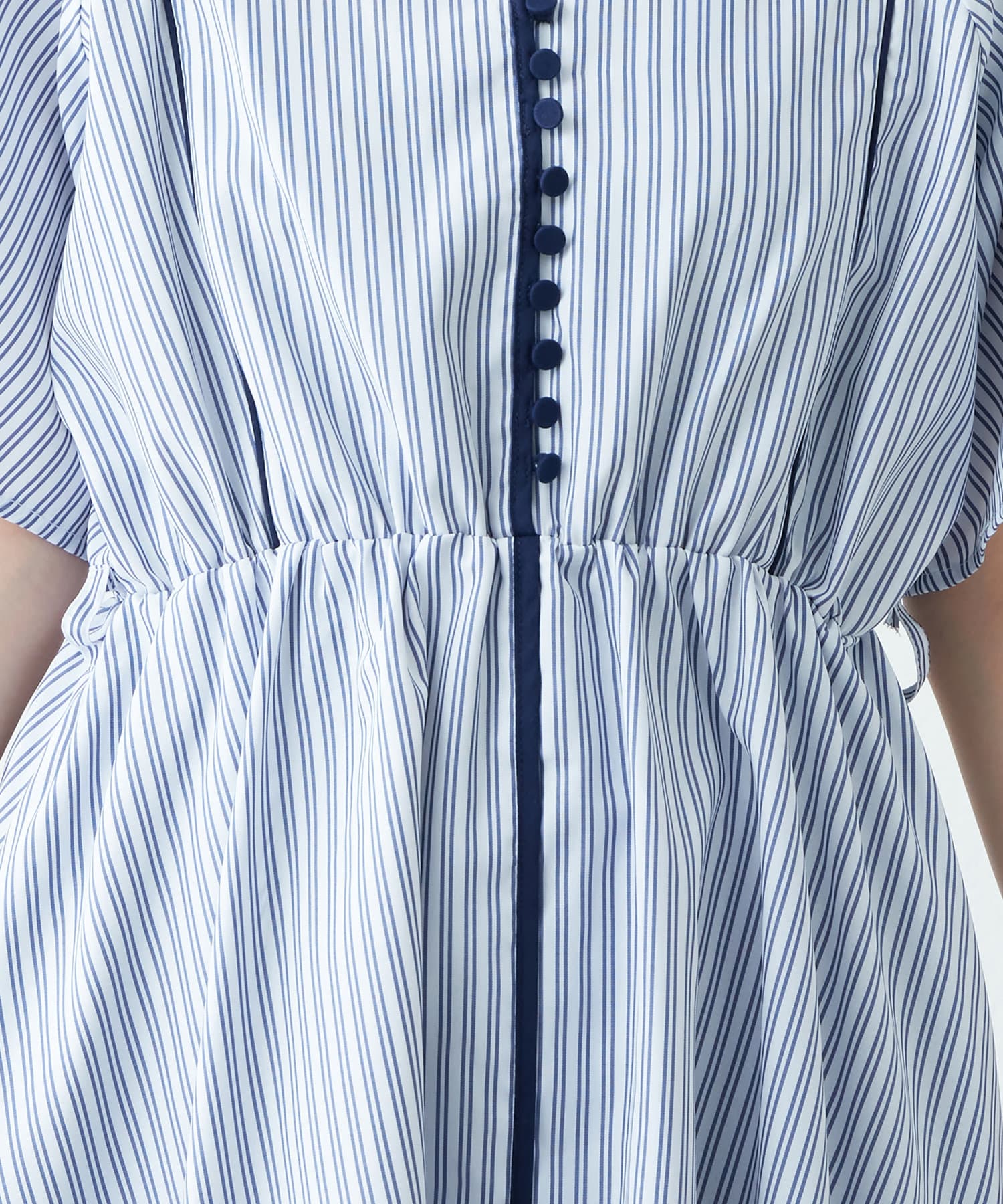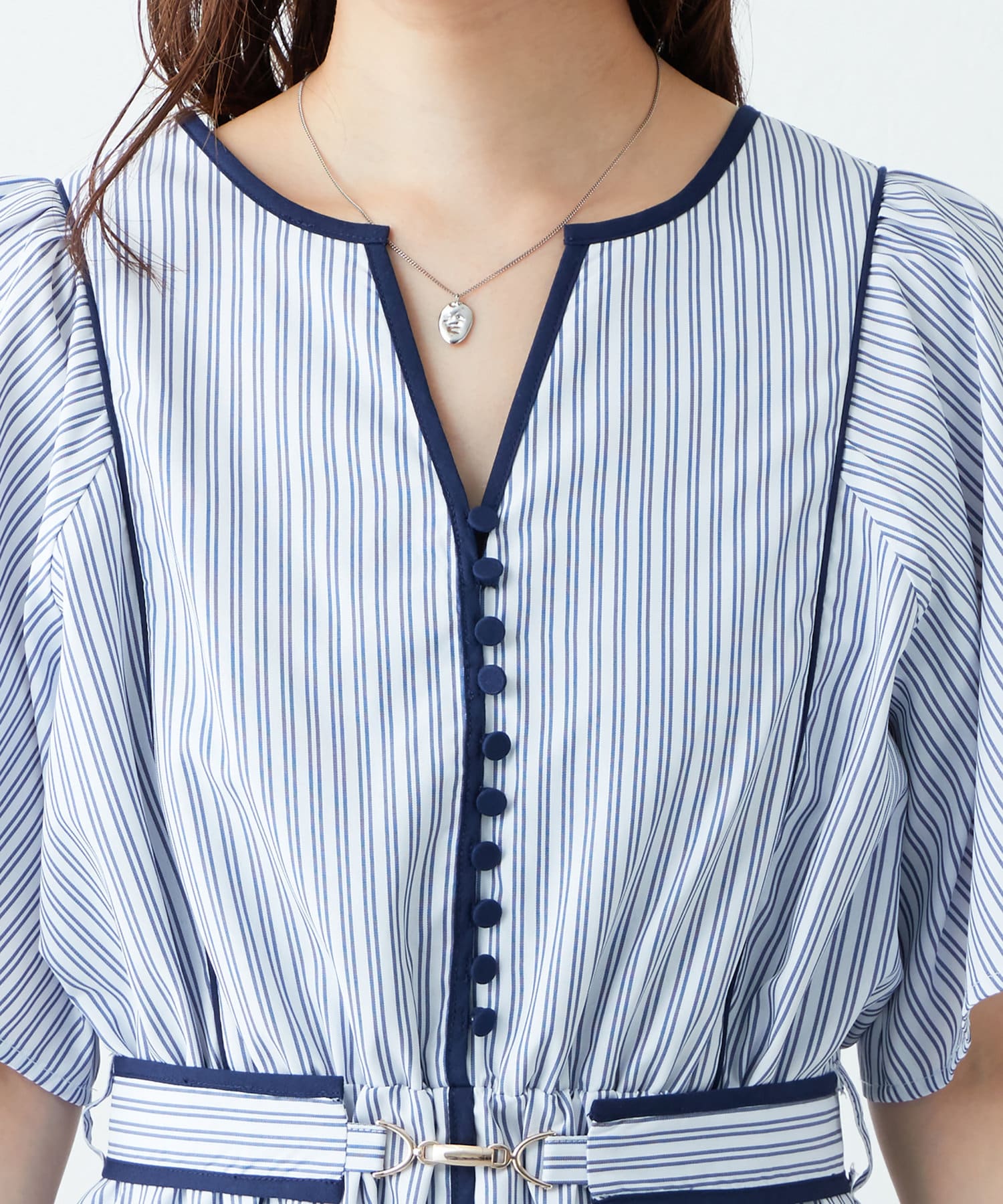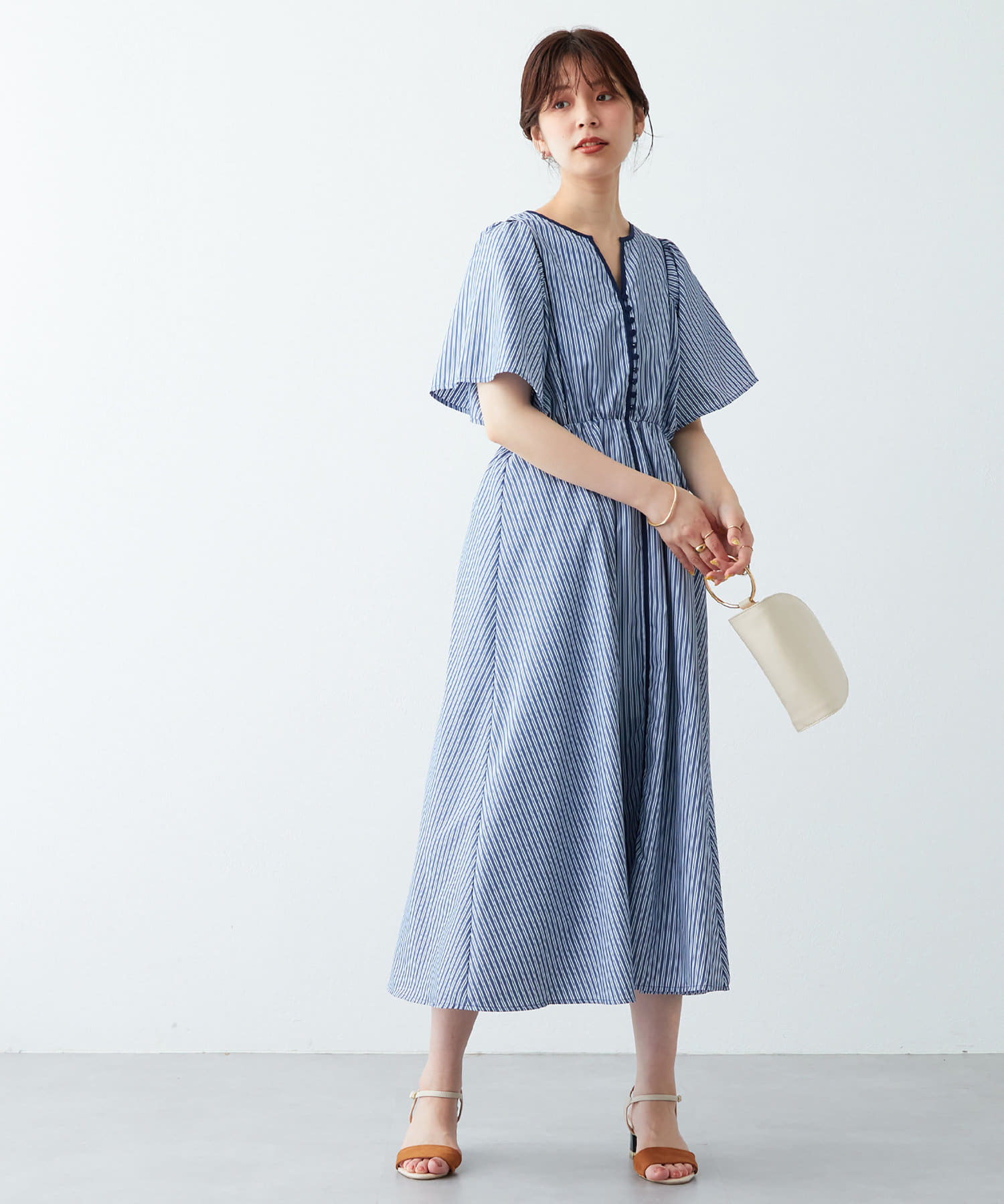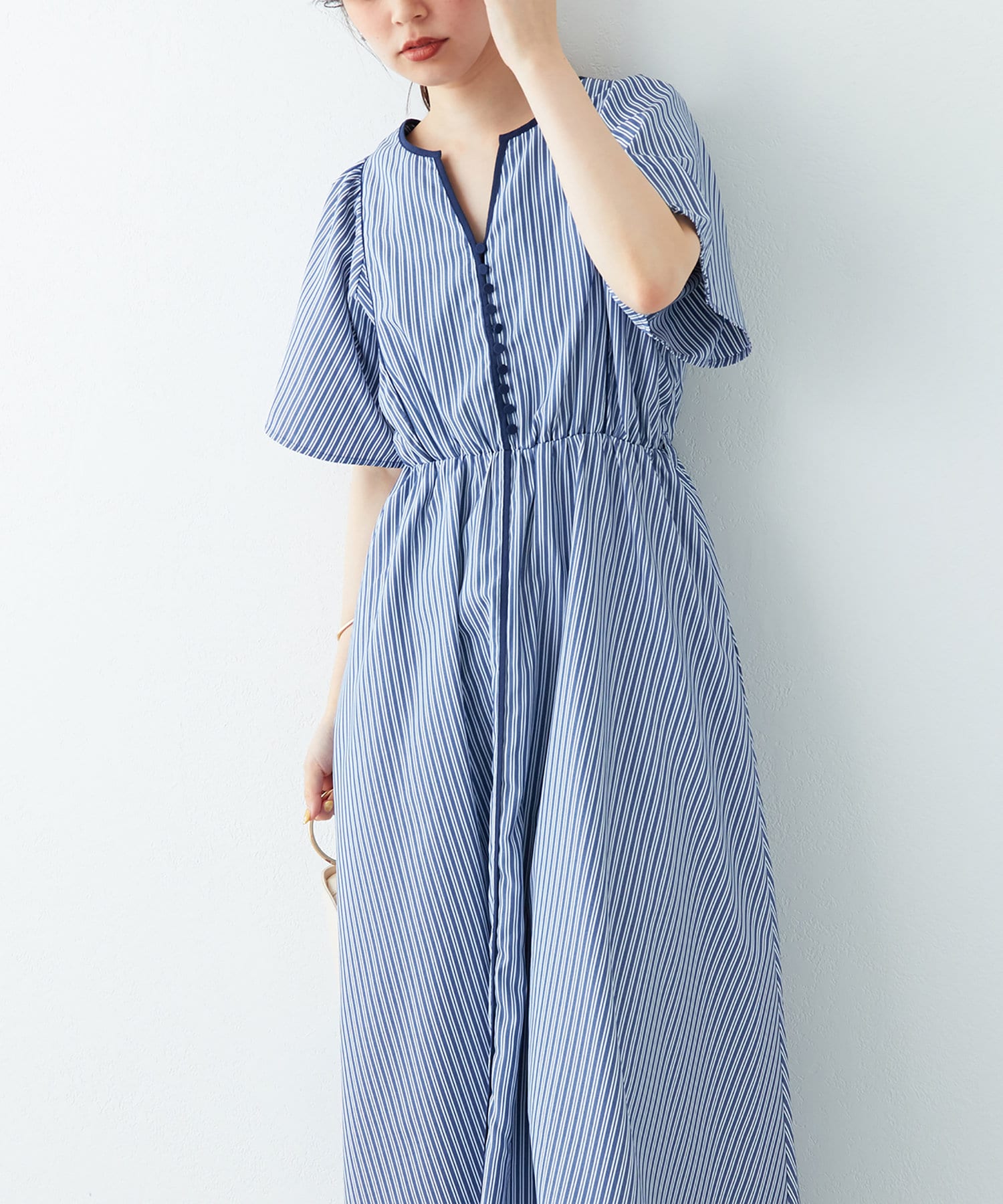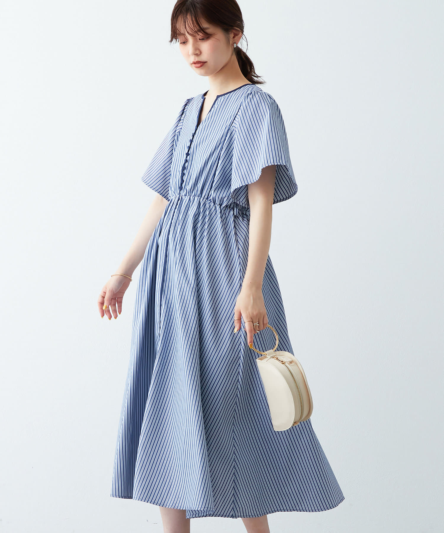 美しいラインが魅力 フレアスリーブパイピングワンピース