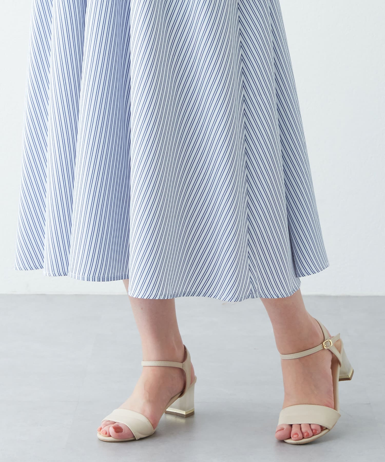 足元はストラップサンダルやミュールを合わせて上品にまとめても◎