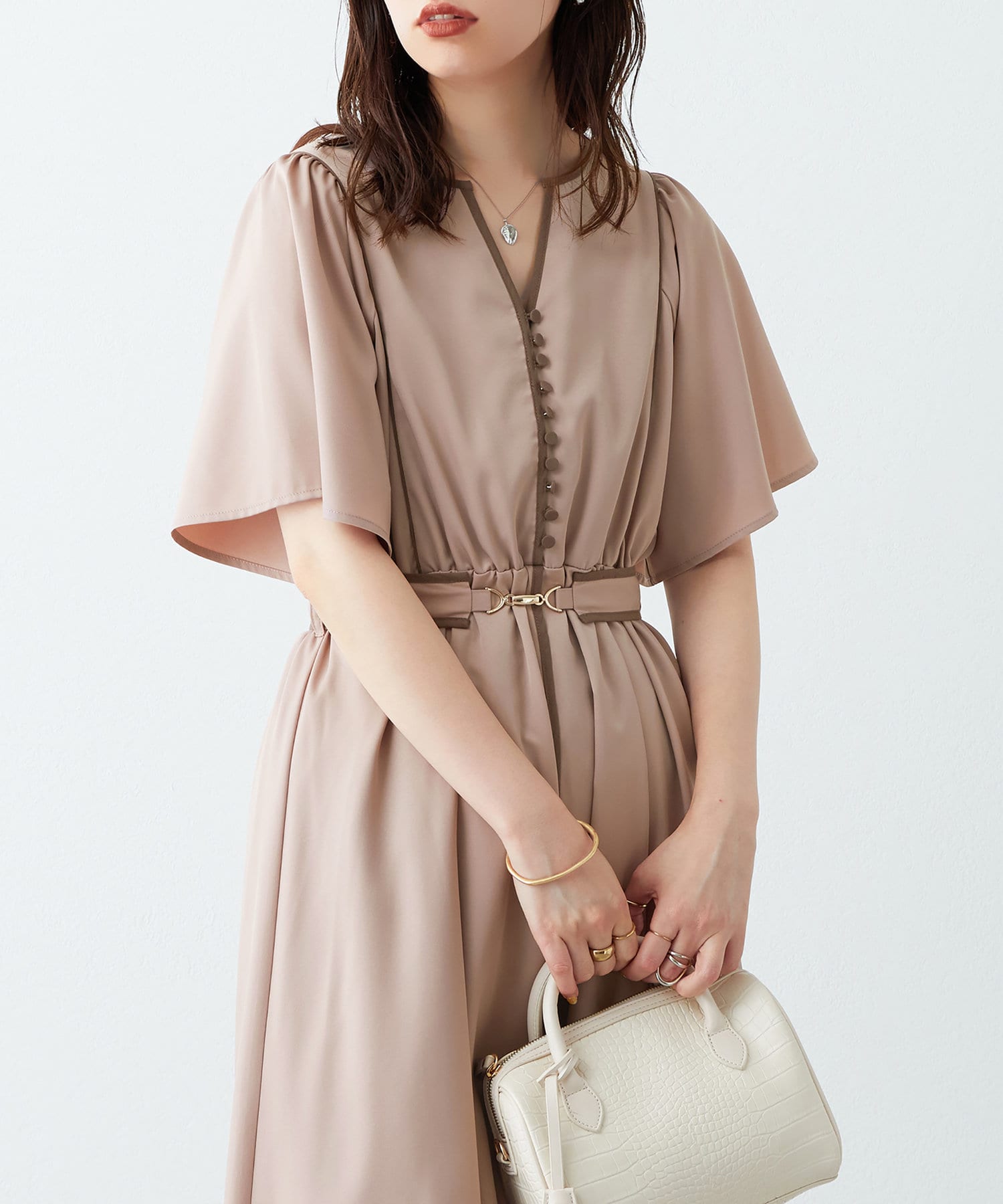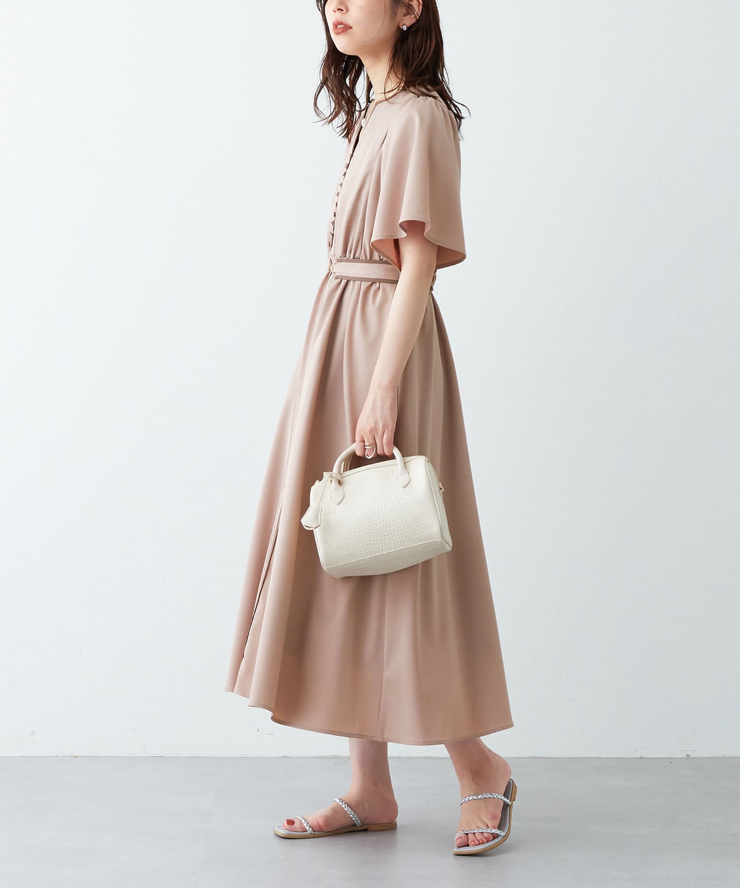 動く度に上品な揺れ感を生む、デザイナーこだわりの1着。