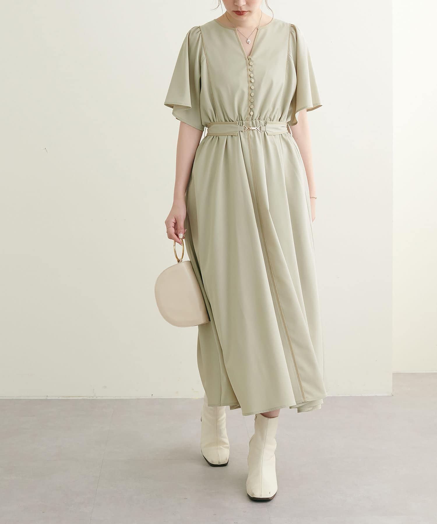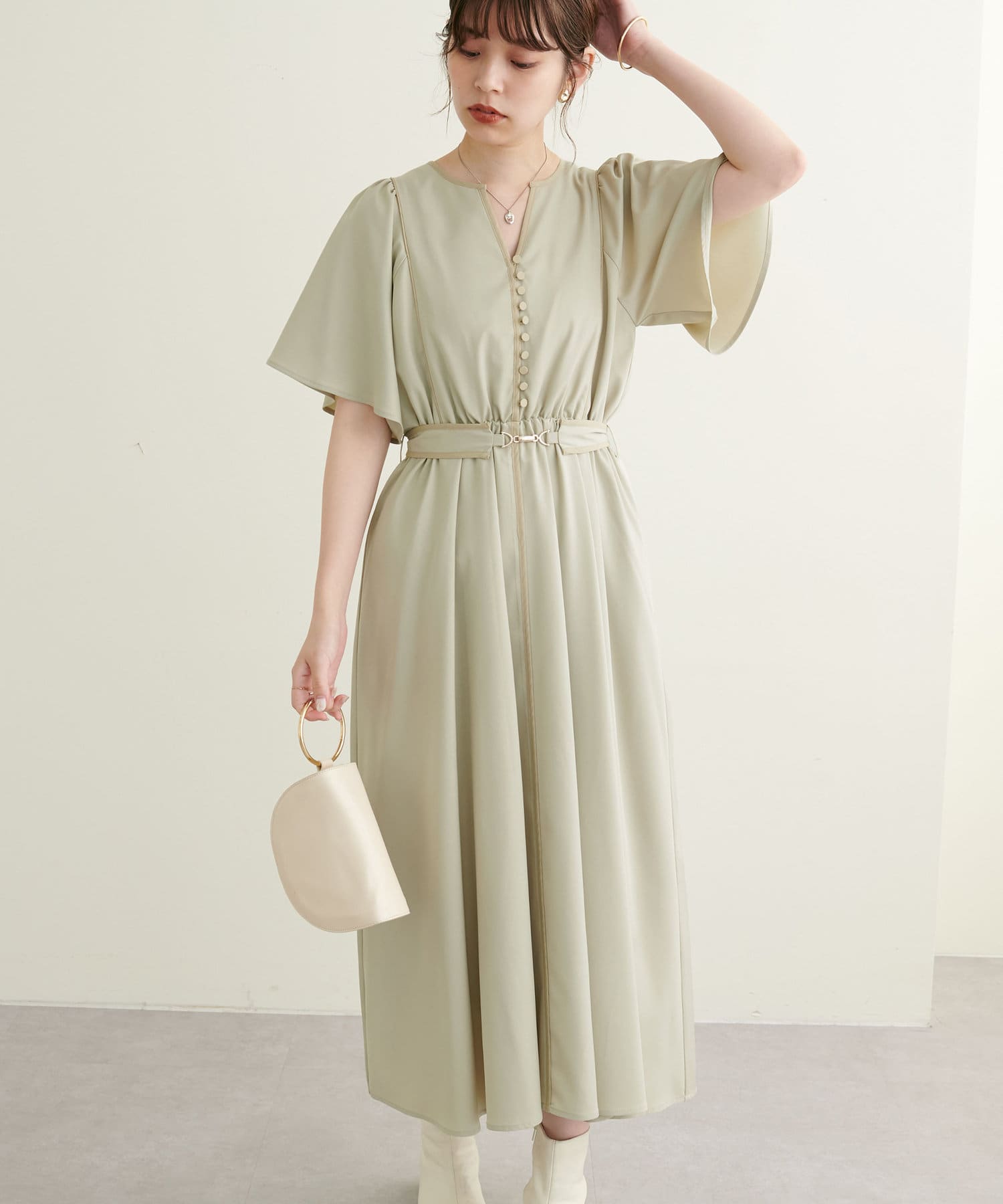 お好みで付属のベルトでウエストマークすると、ポイント見えとメリハリが生まれ、