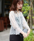ほんのりシアー感のある生地とレース地を採用し、細部のディテールに女性らしさを加えたブラウスと、