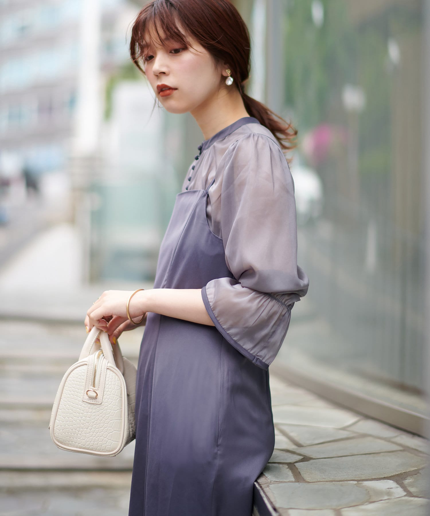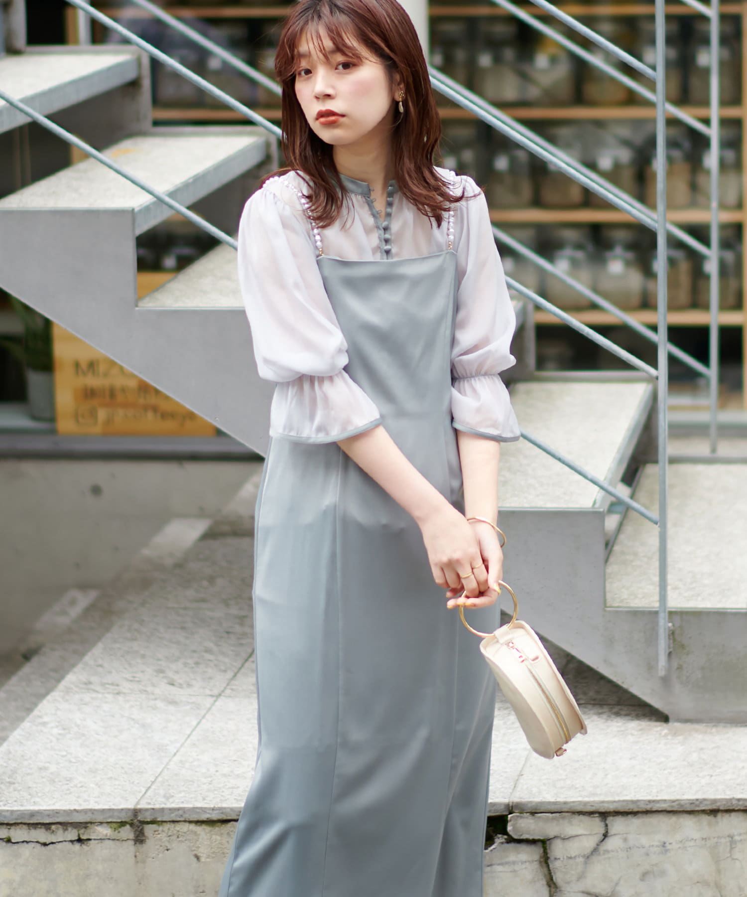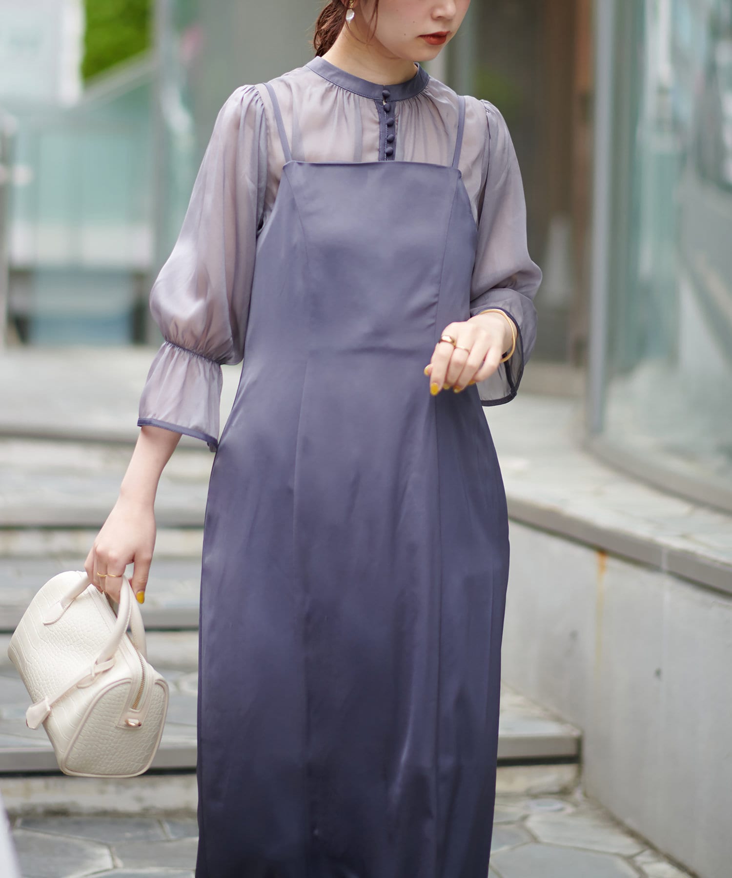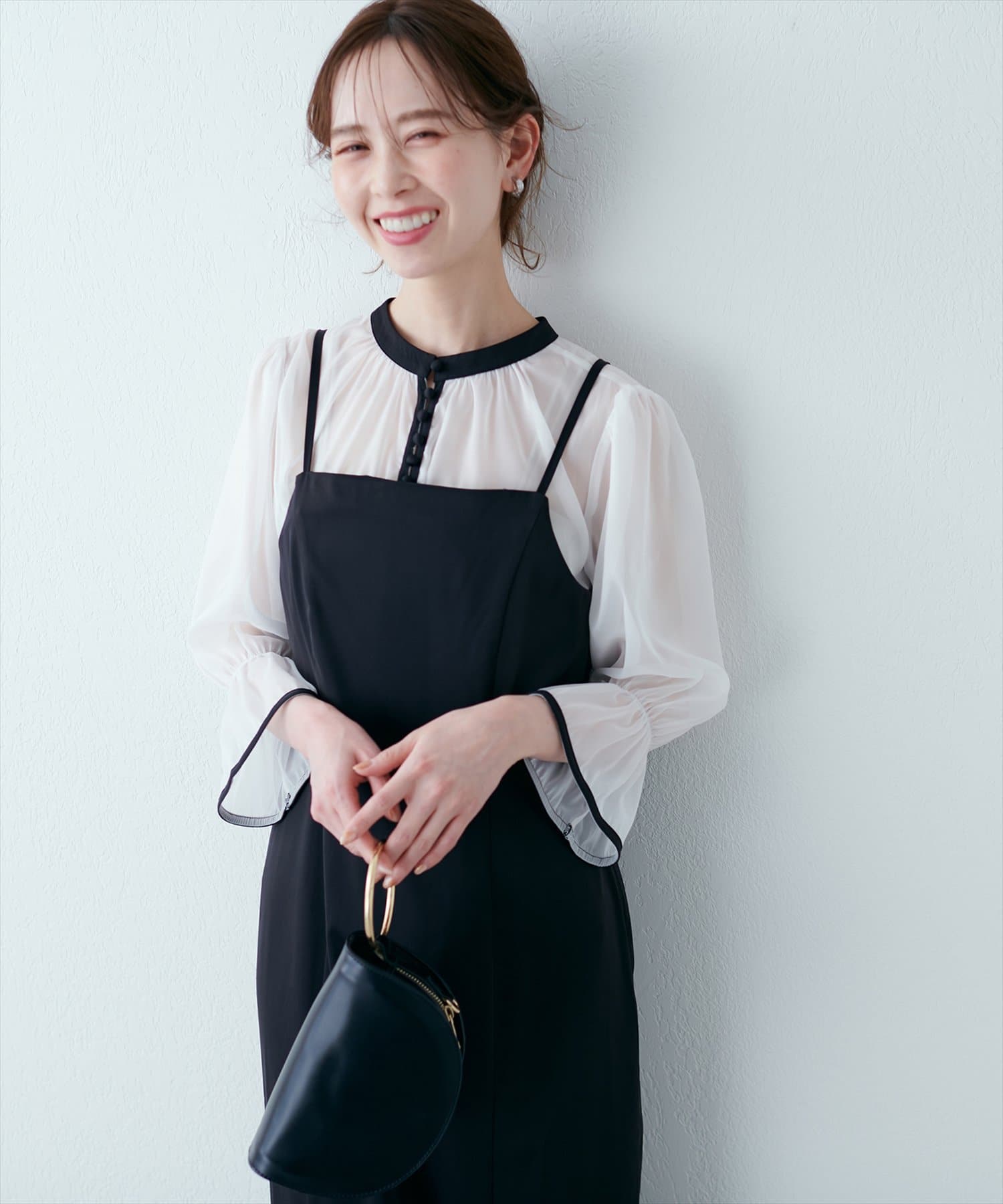 ブラウスをワンピースの上からお召し頂くのはもちろん、インナーにすると雰囲気が一気に変わります。