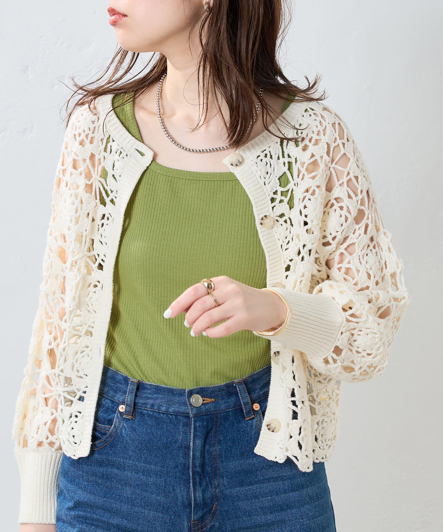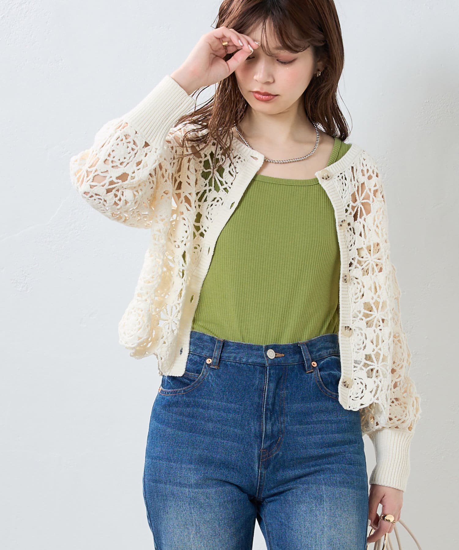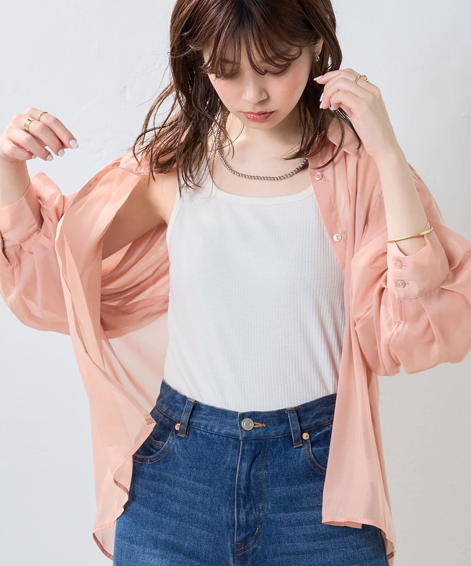 シアーブラウス、スキッパーシャツ、カーディガンのインナーに